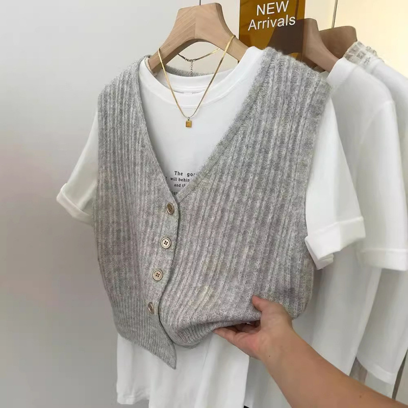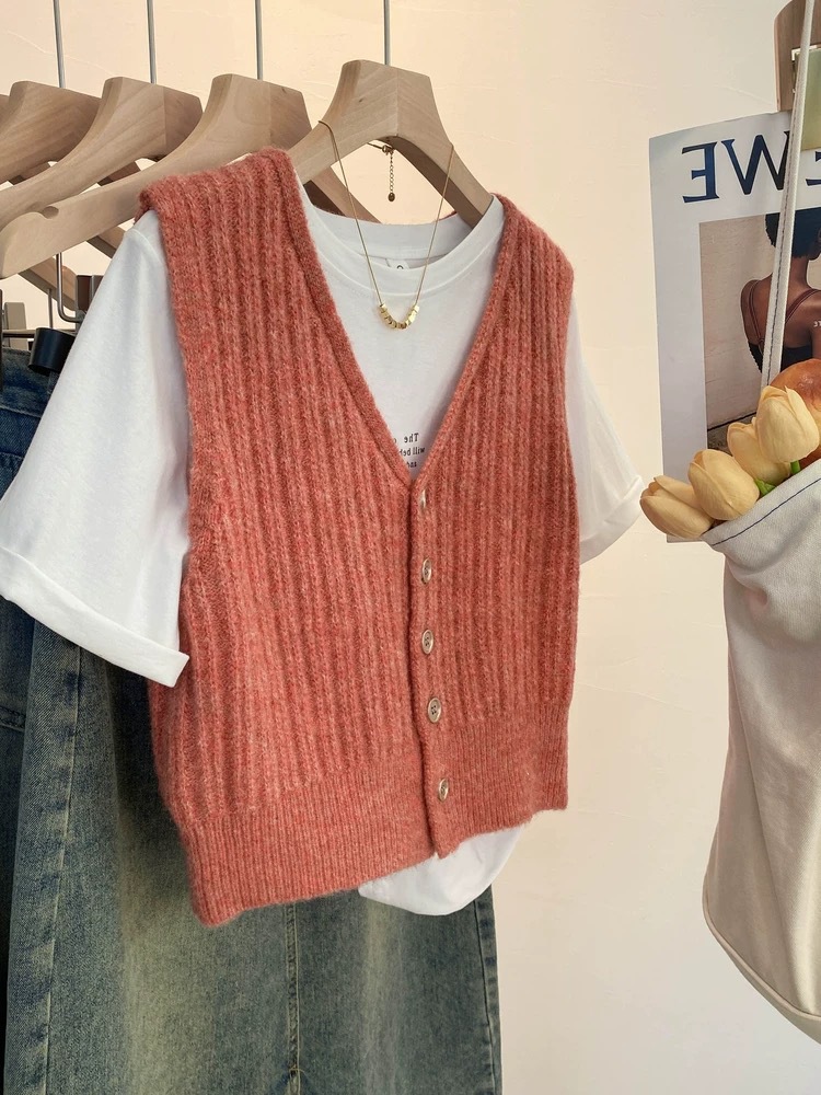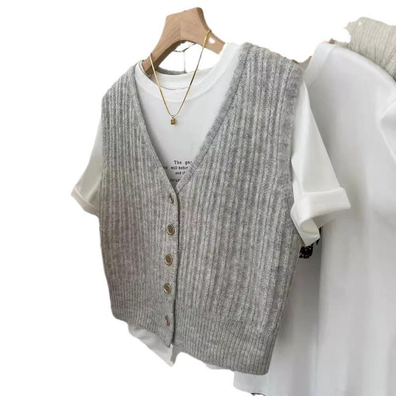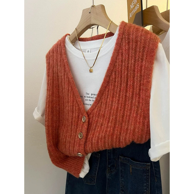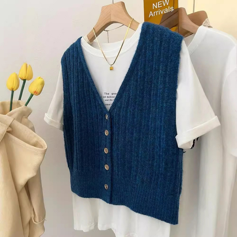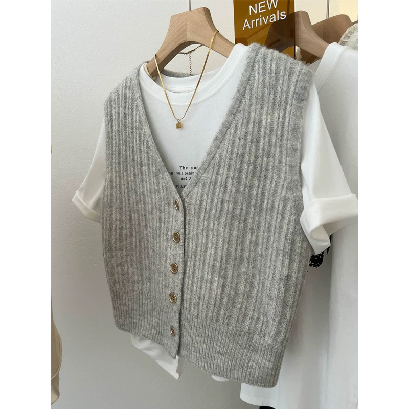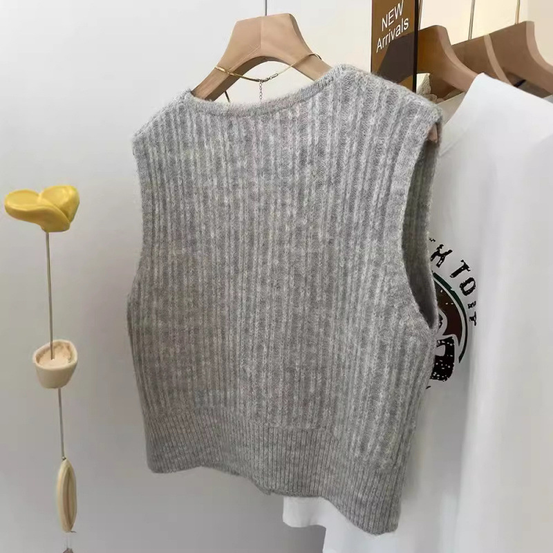 Осенний и зимний новый французский ретро с V-образным вырезом трикотажный жилет кардиган без рукавов мягкий клейкий свитер жилет куртка для лошадей