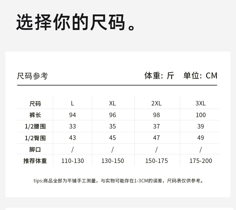 L (рекомендуется 55-65kg); XL (рекомендуется 65-75kg); 2XL (рекомендуется 75-87.5kg); 3XL (рекомендуется 87.5-100kg)