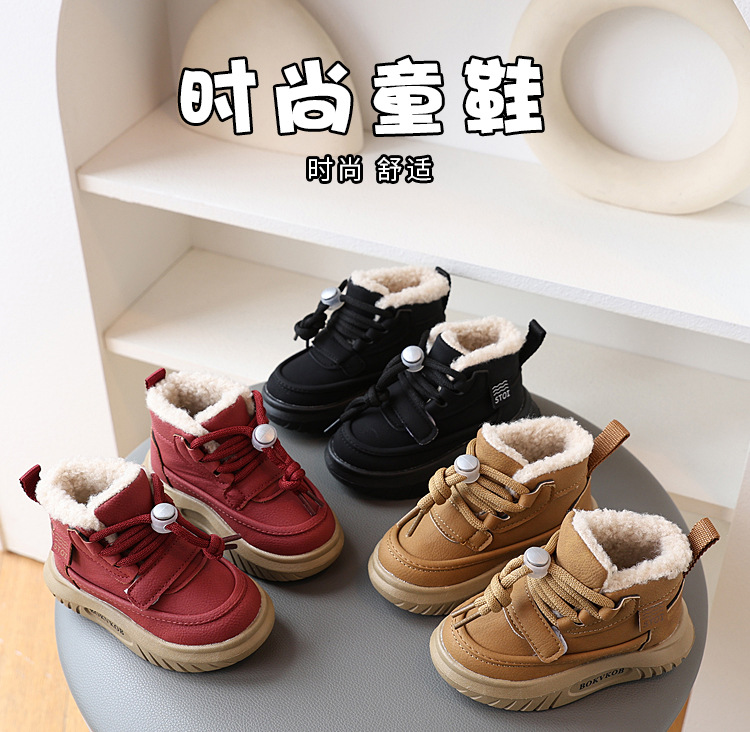 Снежные сапоги для мальчиков 2024 зимние новые детские большие хлопчатобумажные туфли бархатные утолщенные детские туфли для девочек корейские мальчики