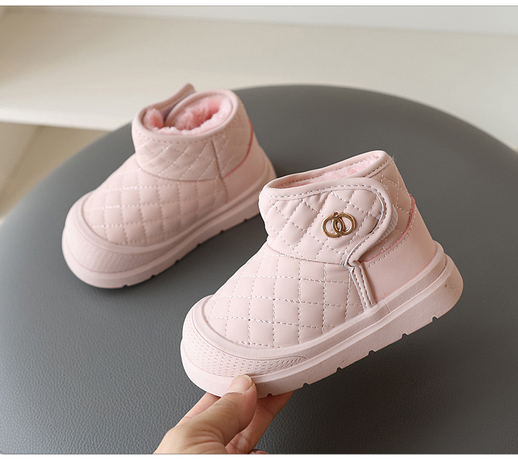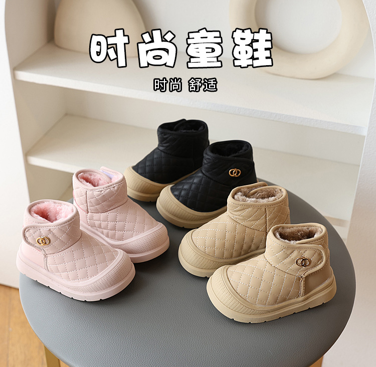 Детские снежные сапоги осенние и зимние хлопковые сапоги нескользящие водонепроницаемые сапоги плюс бархатные ватные наклейки для мужских и женских детских кожаных сапог