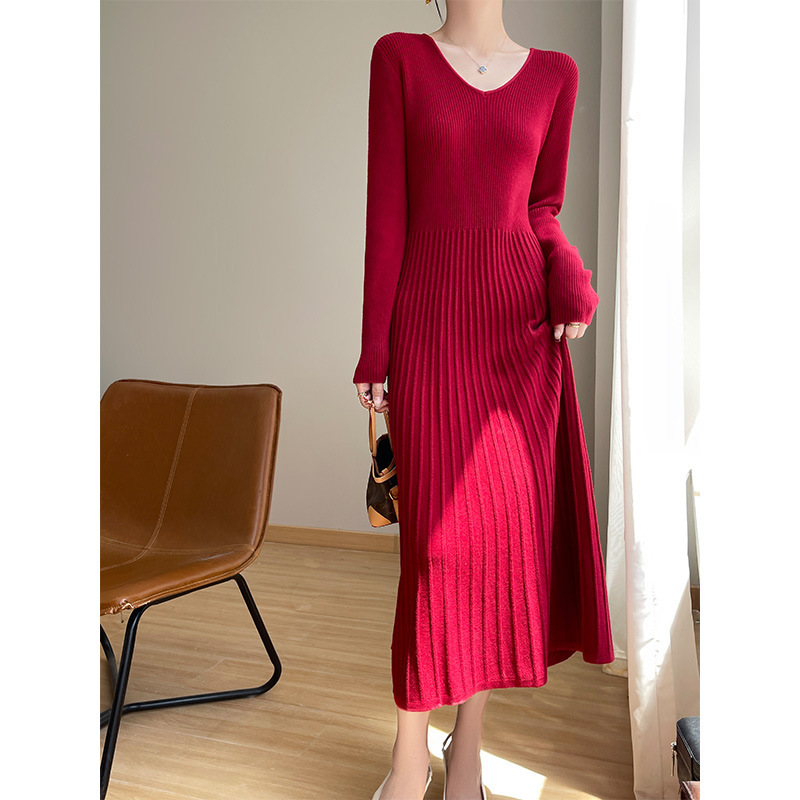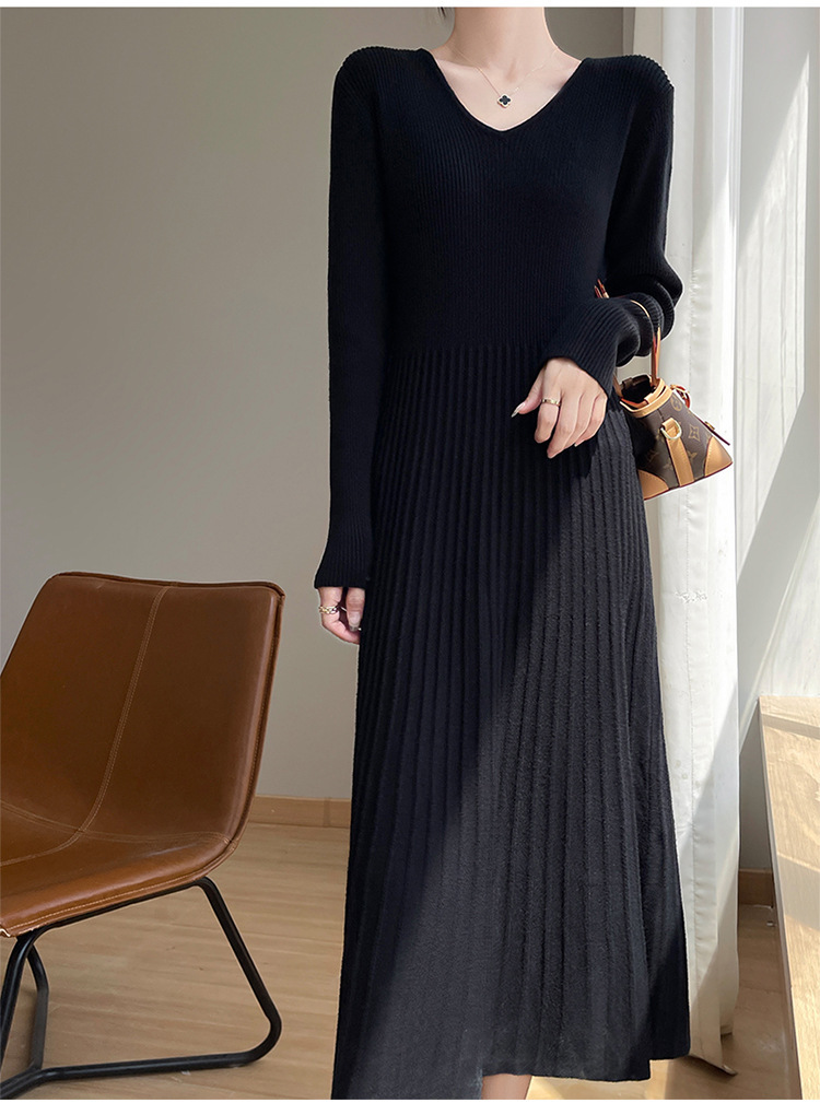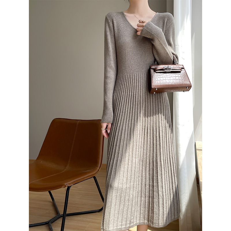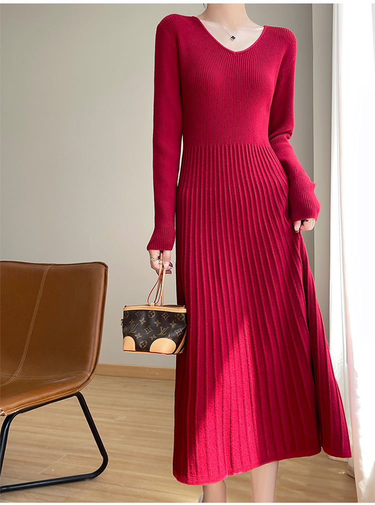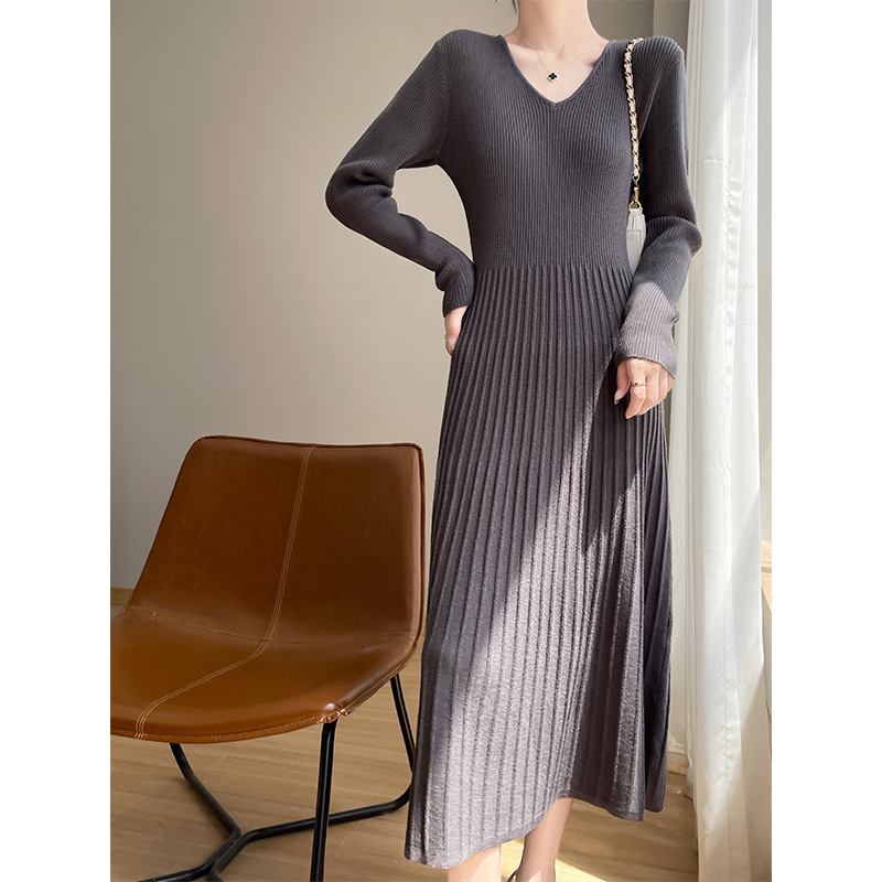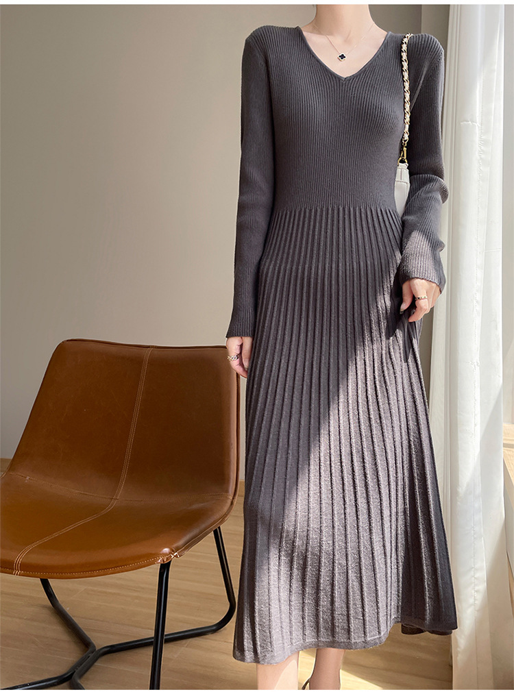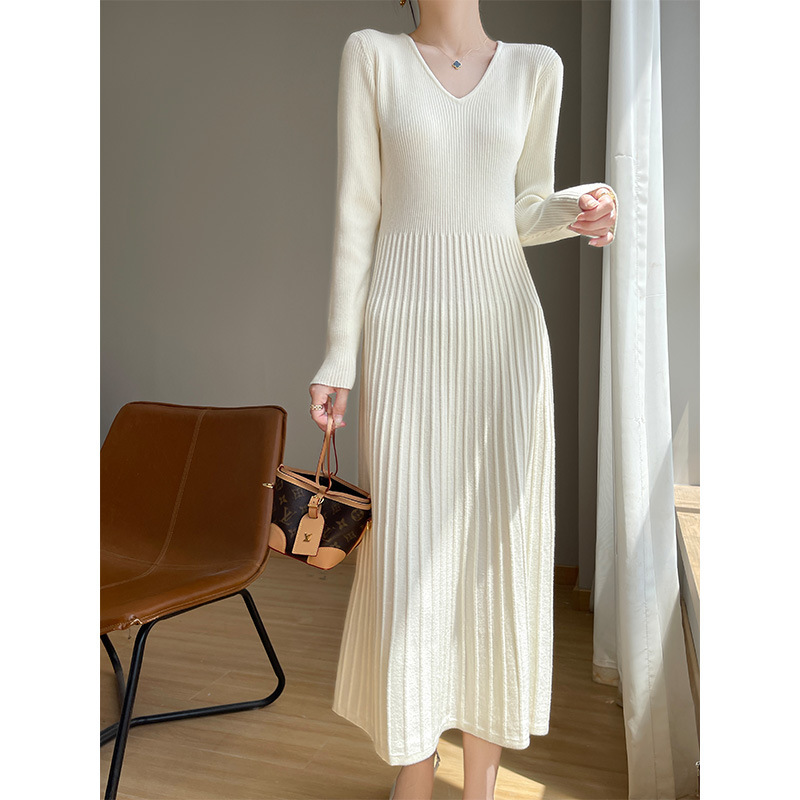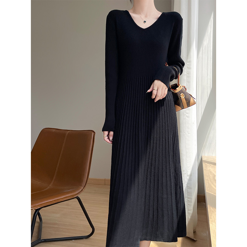 Леди с V-образным вырезом длинное платье осенью и зимой длинная трикотажная нижняя юбка пальто с темпераментом