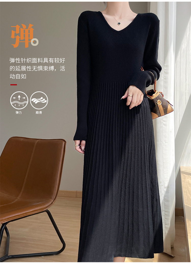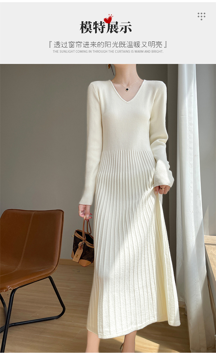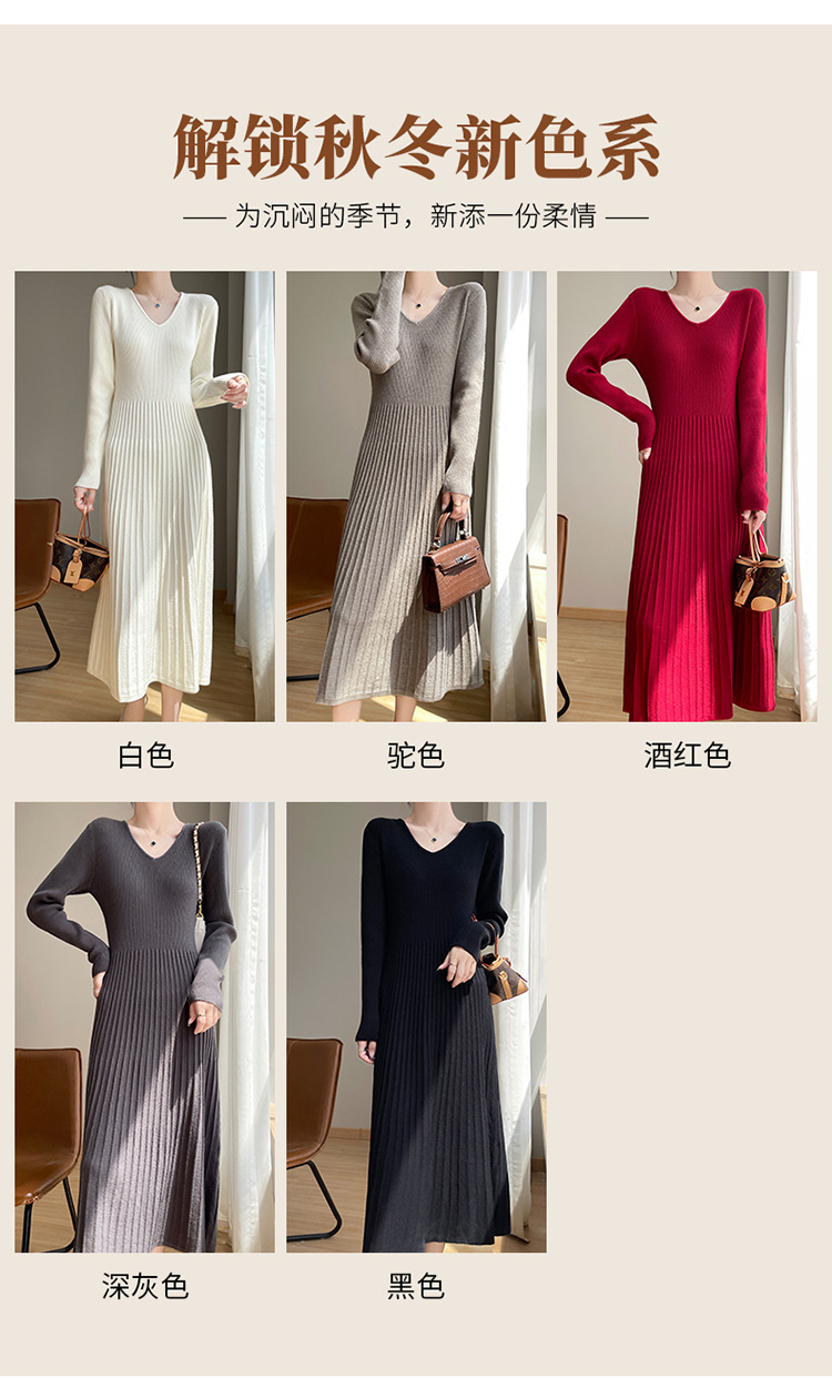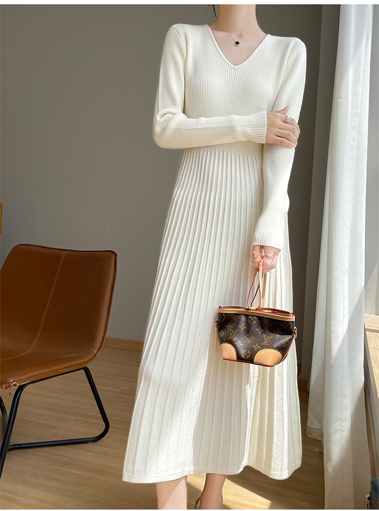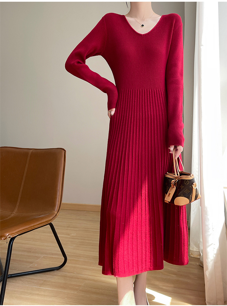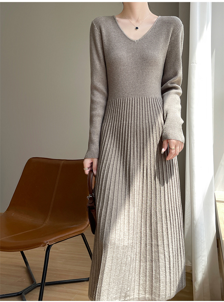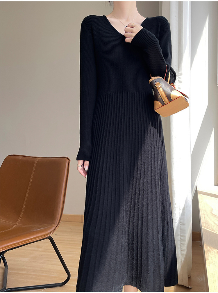 Леди с V-образным вырезом длинное платье осенью и зимой длинная трикотажная нижняя юбка пальто с темпераментом