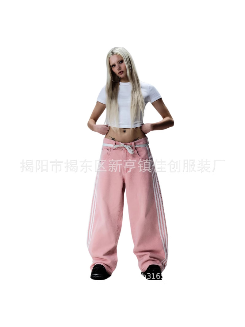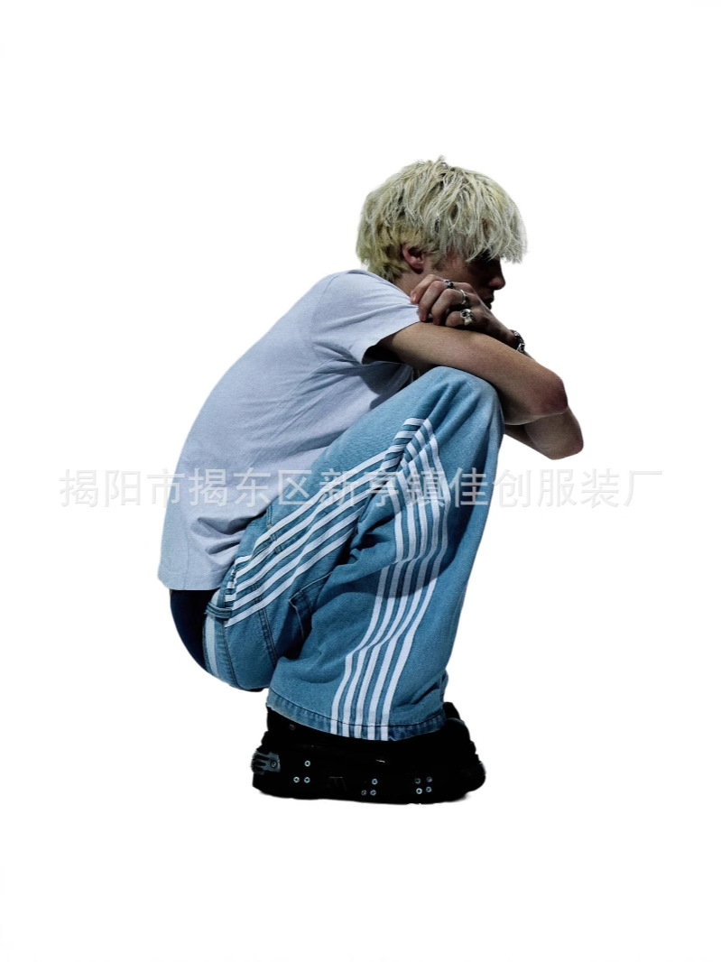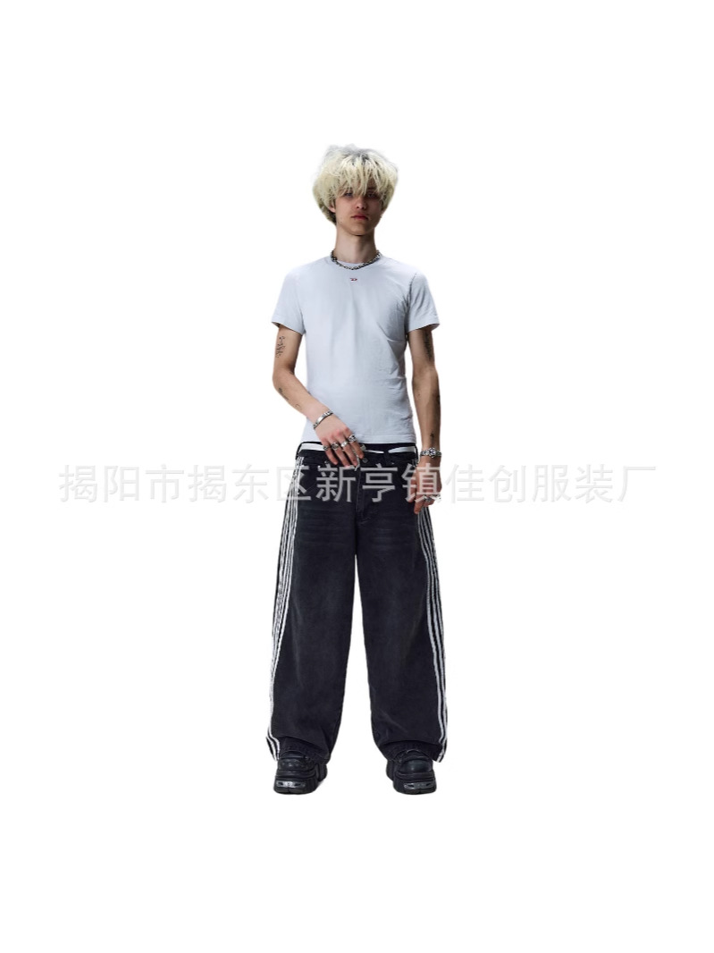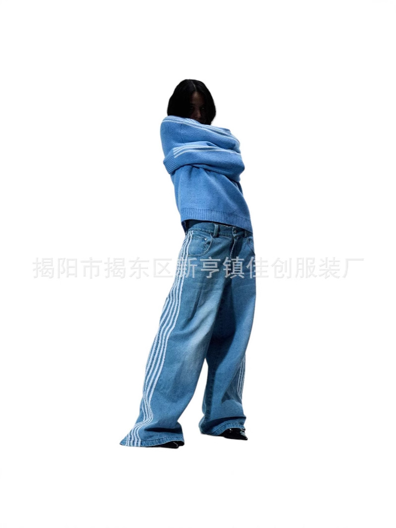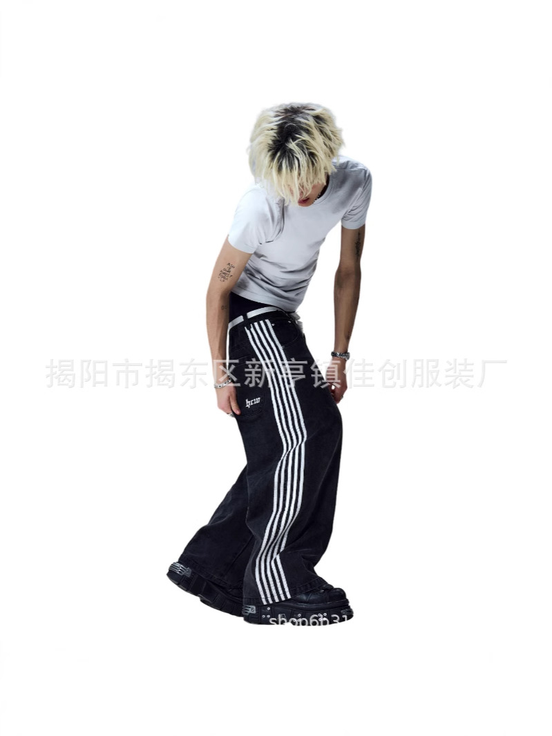 Американский стиль уличные полосатые джинсы модные свободные широкие ноги повседневные брюки для стрижки весной и осенью новый нейтральный