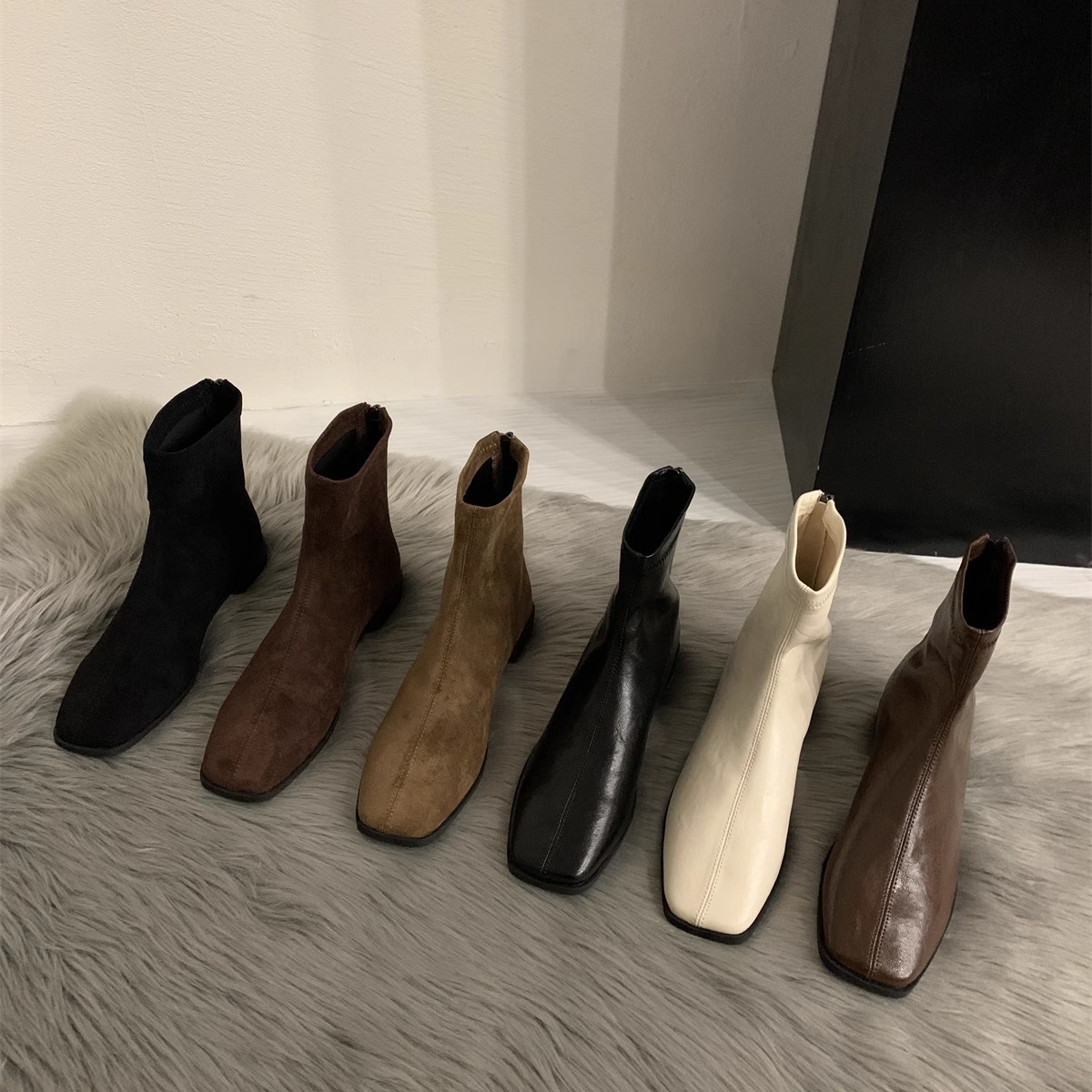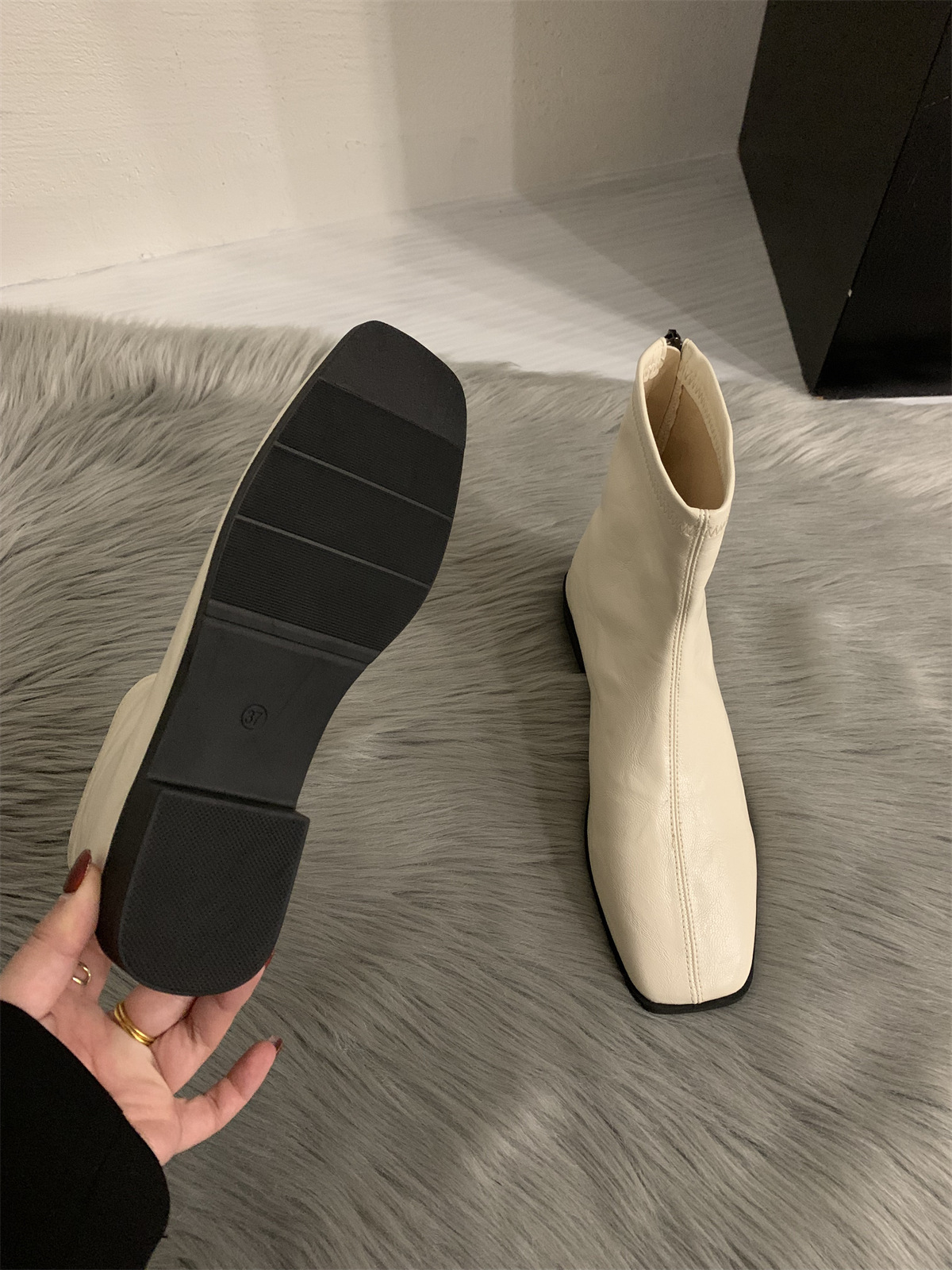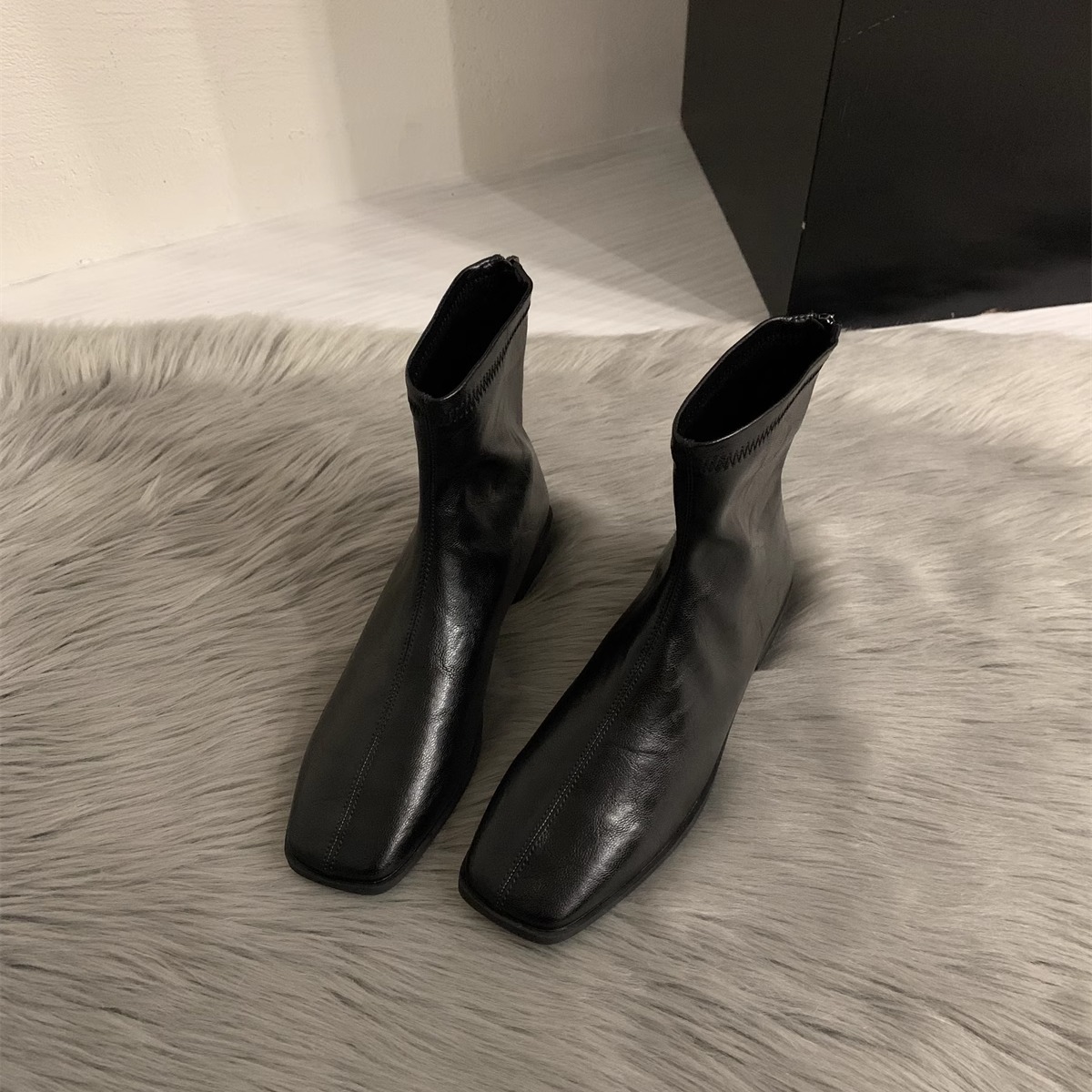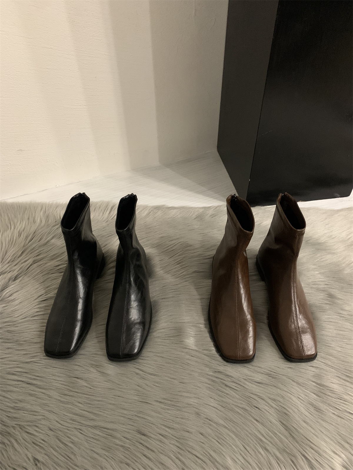 2024 осень и зима новые минималистские мягкие кожаные квадратные головы дикие ботинки на низком каблуке Martin сапоги женские молнии