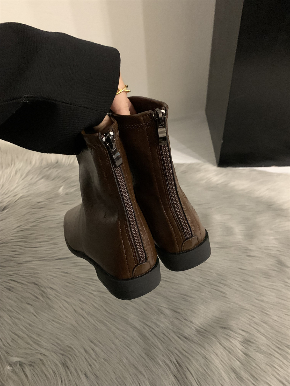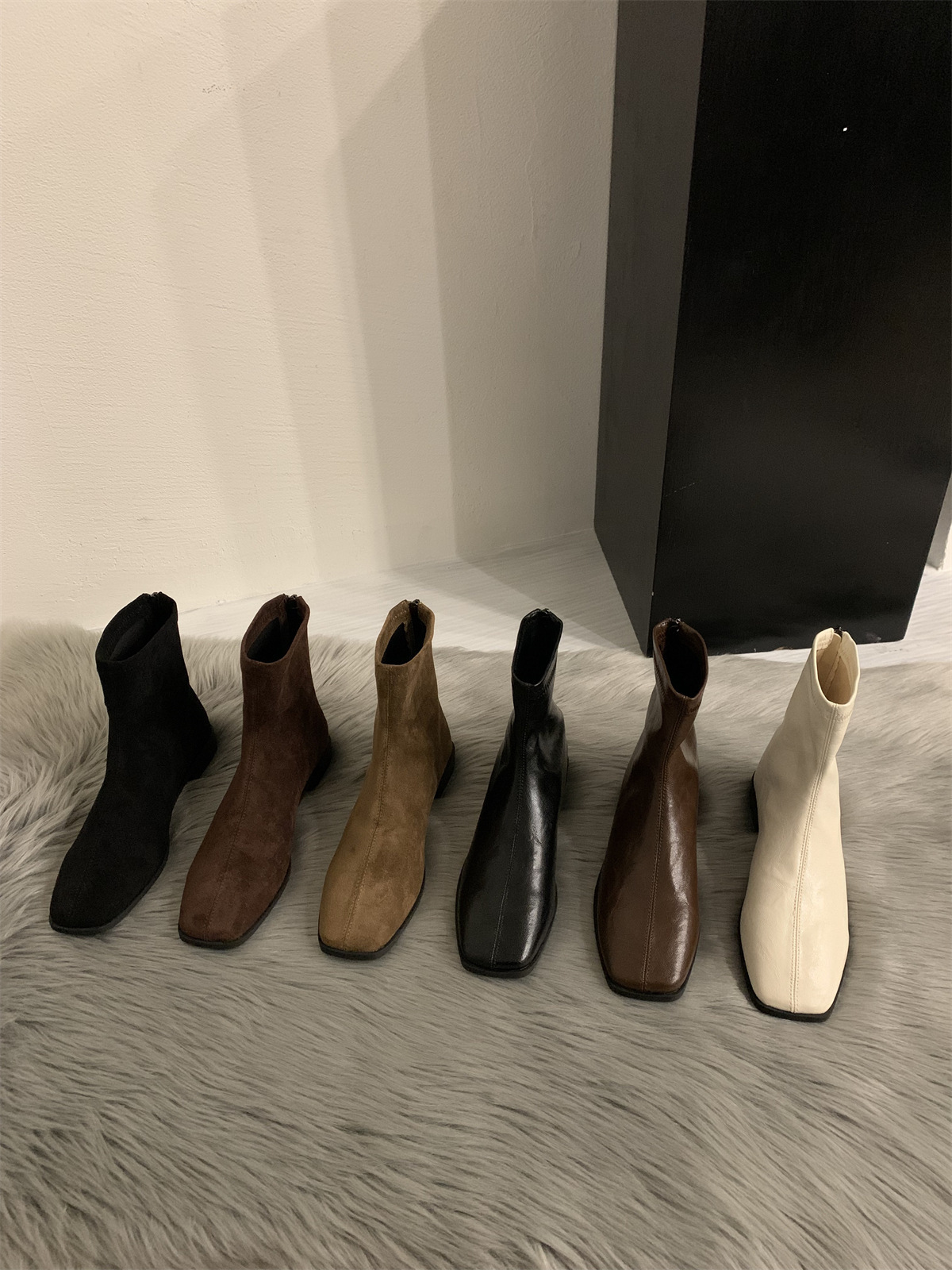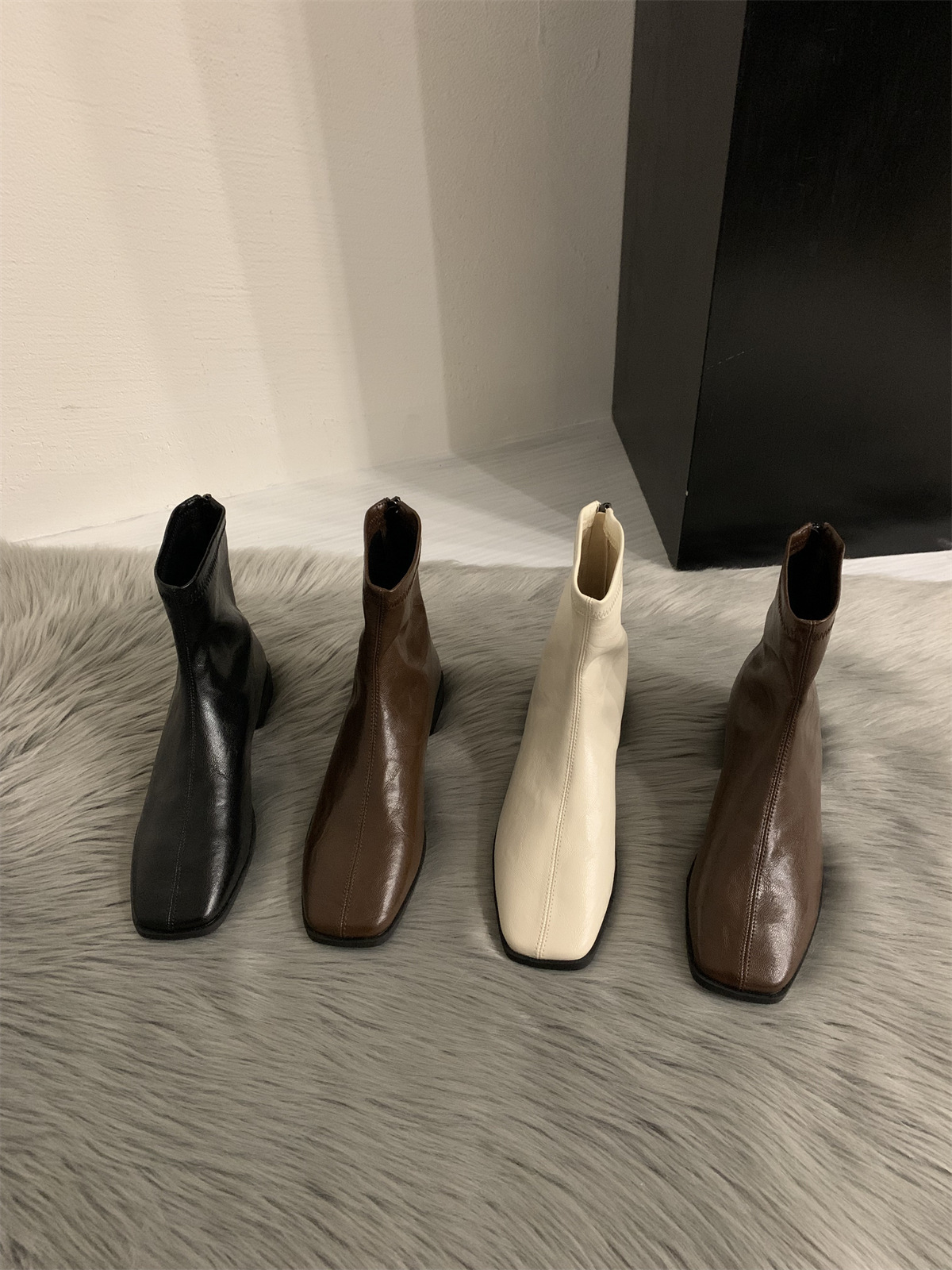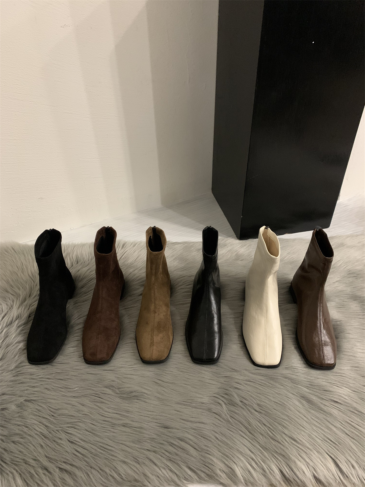 2024 осень и зима новые минималистские мягкие кожаные квадратные головы дикие ботинки на низком каблуке Martin сапоги женские молнии