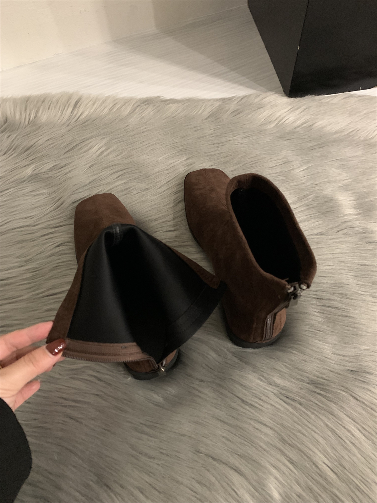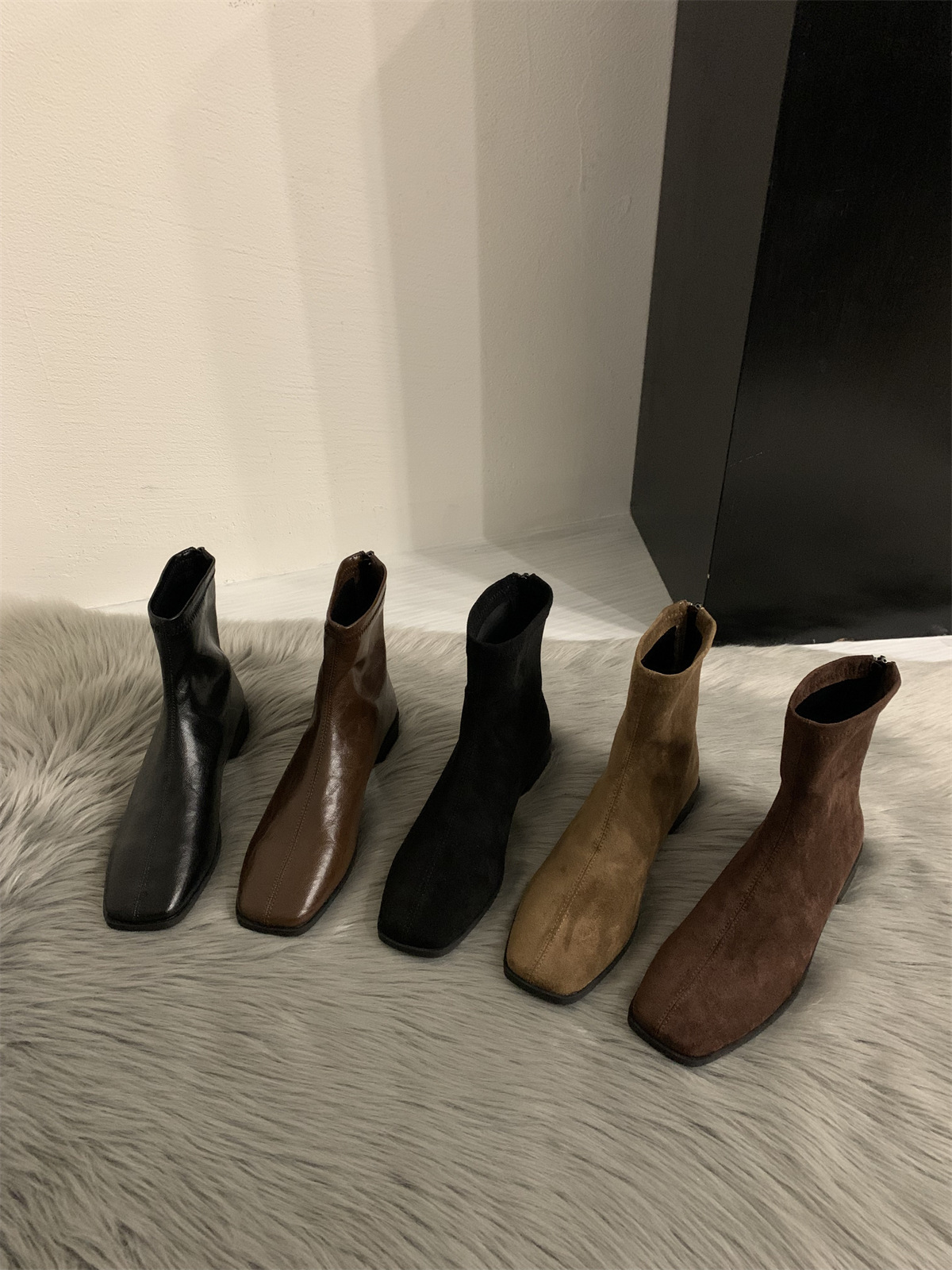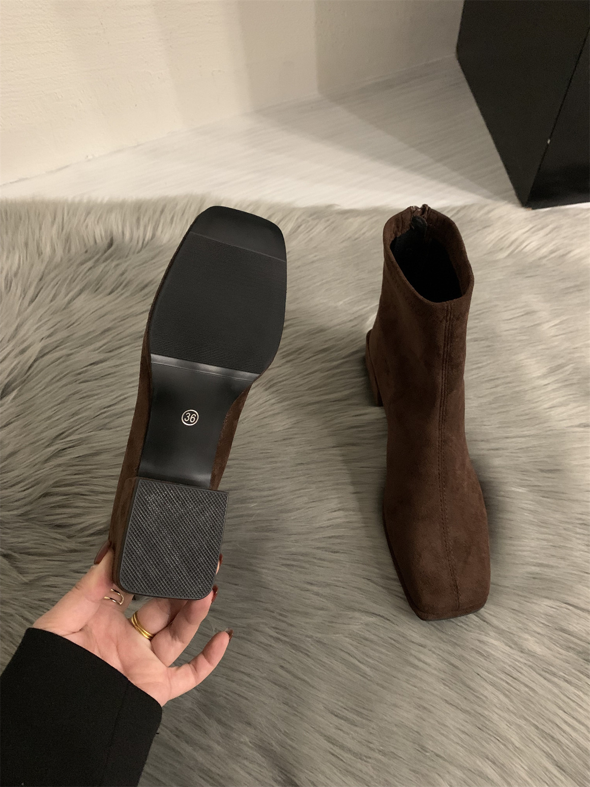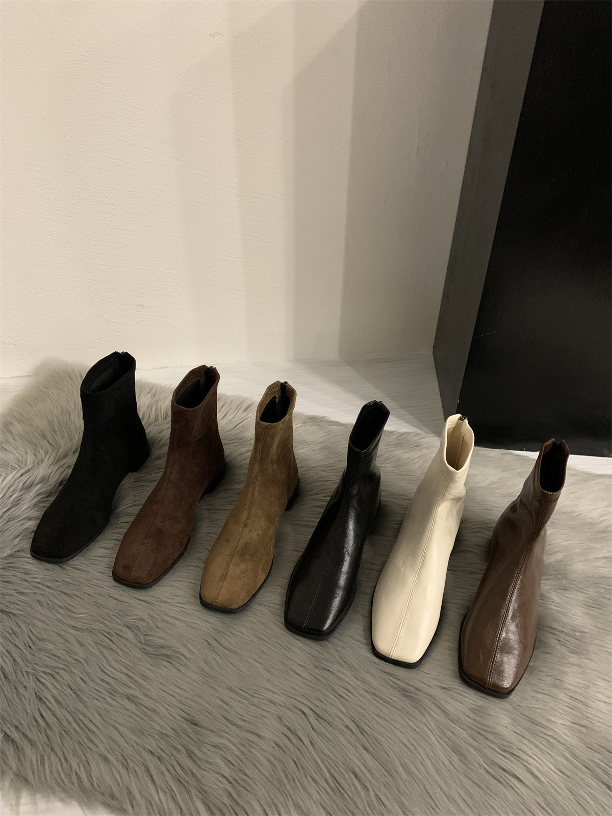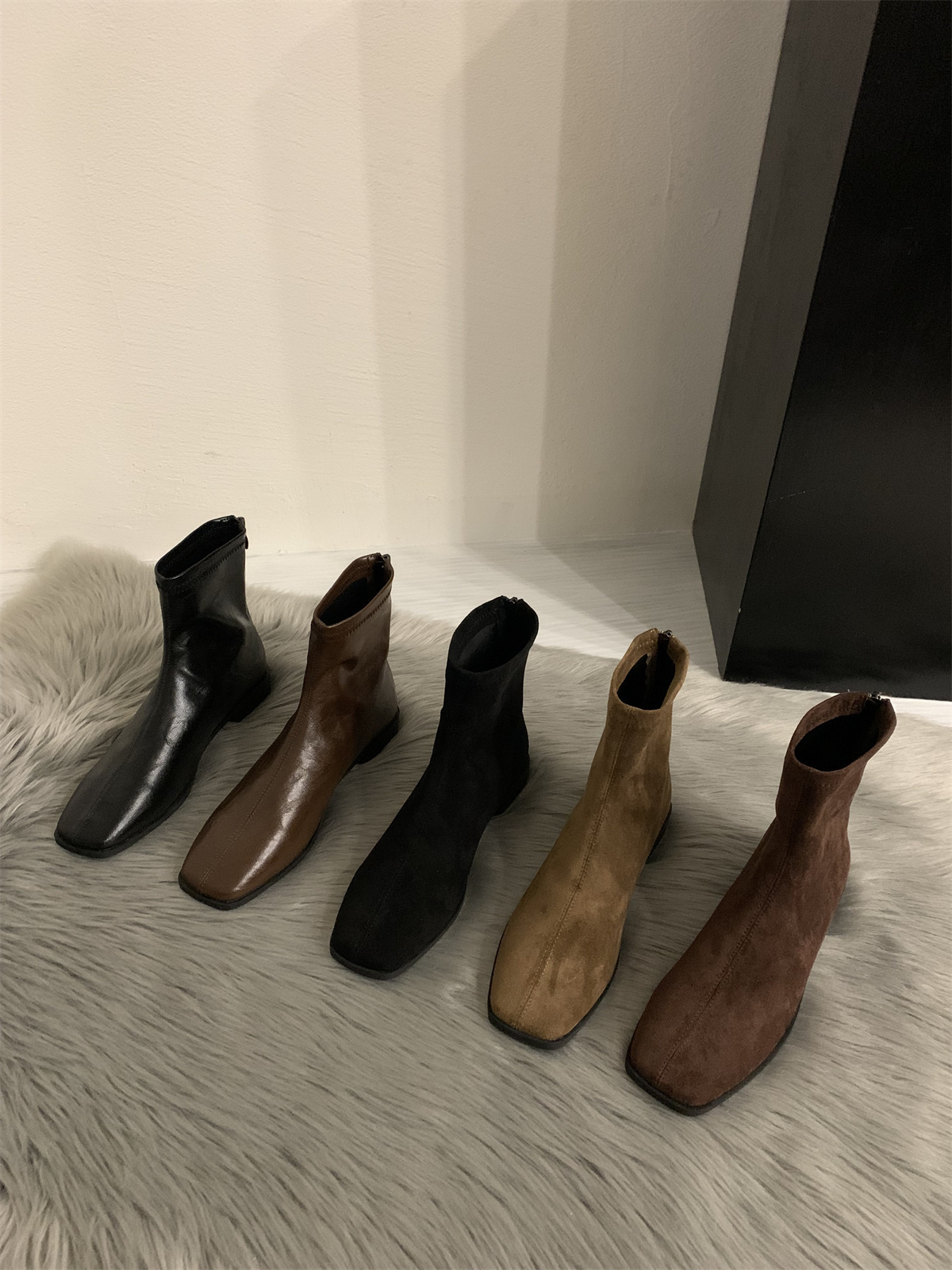 2024 осень и зима новые минималистские мягкие кожаные квадратные головы дикие ботинки на низком каблуке Martin сапоги женские молнии