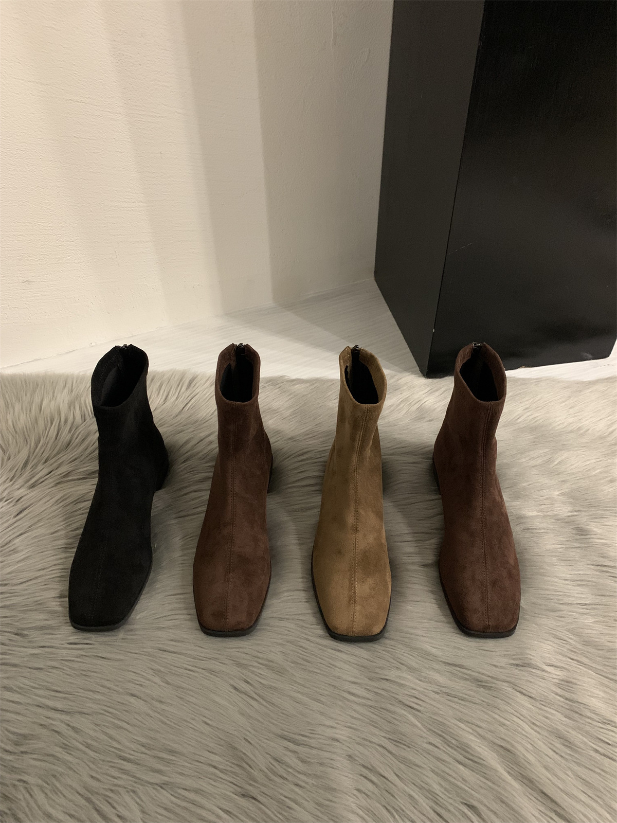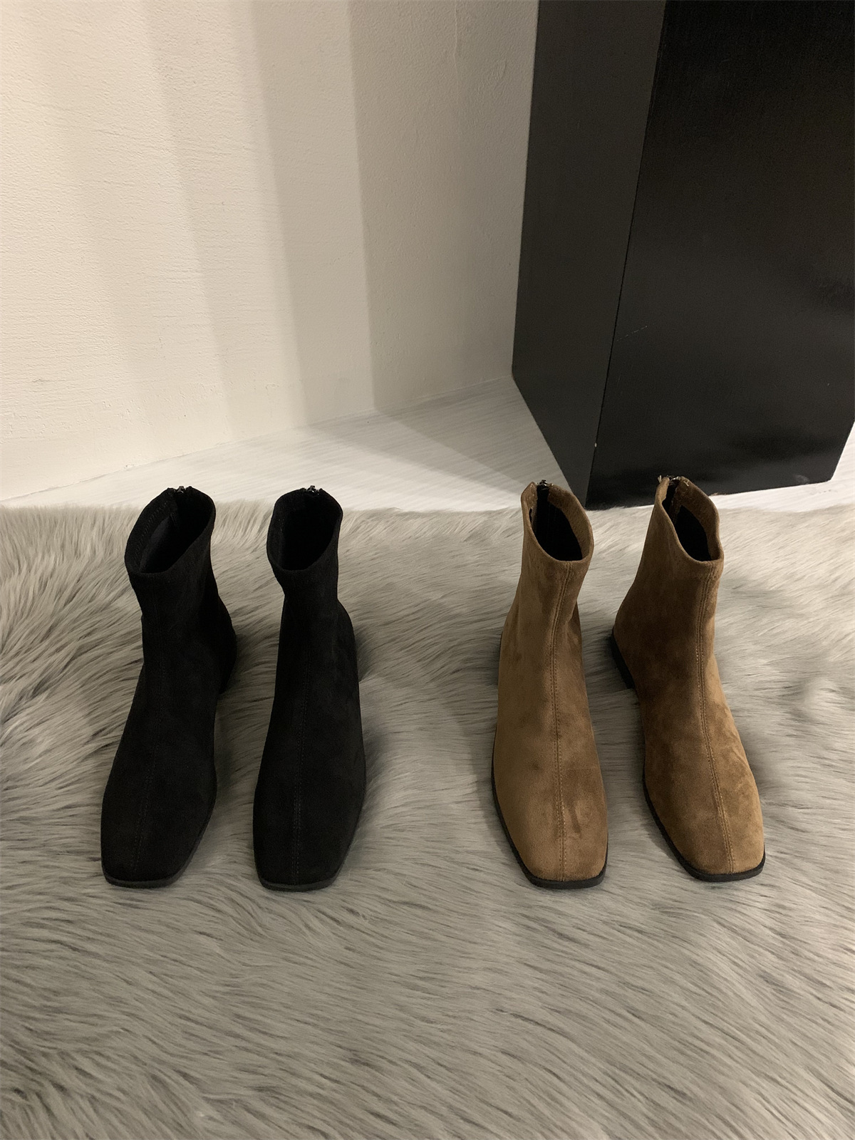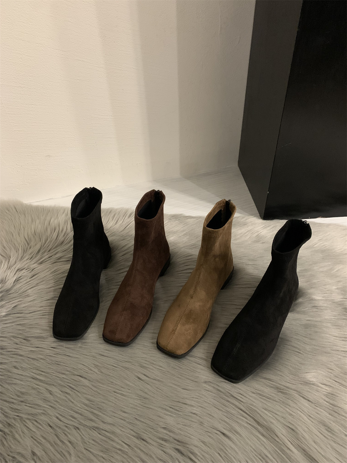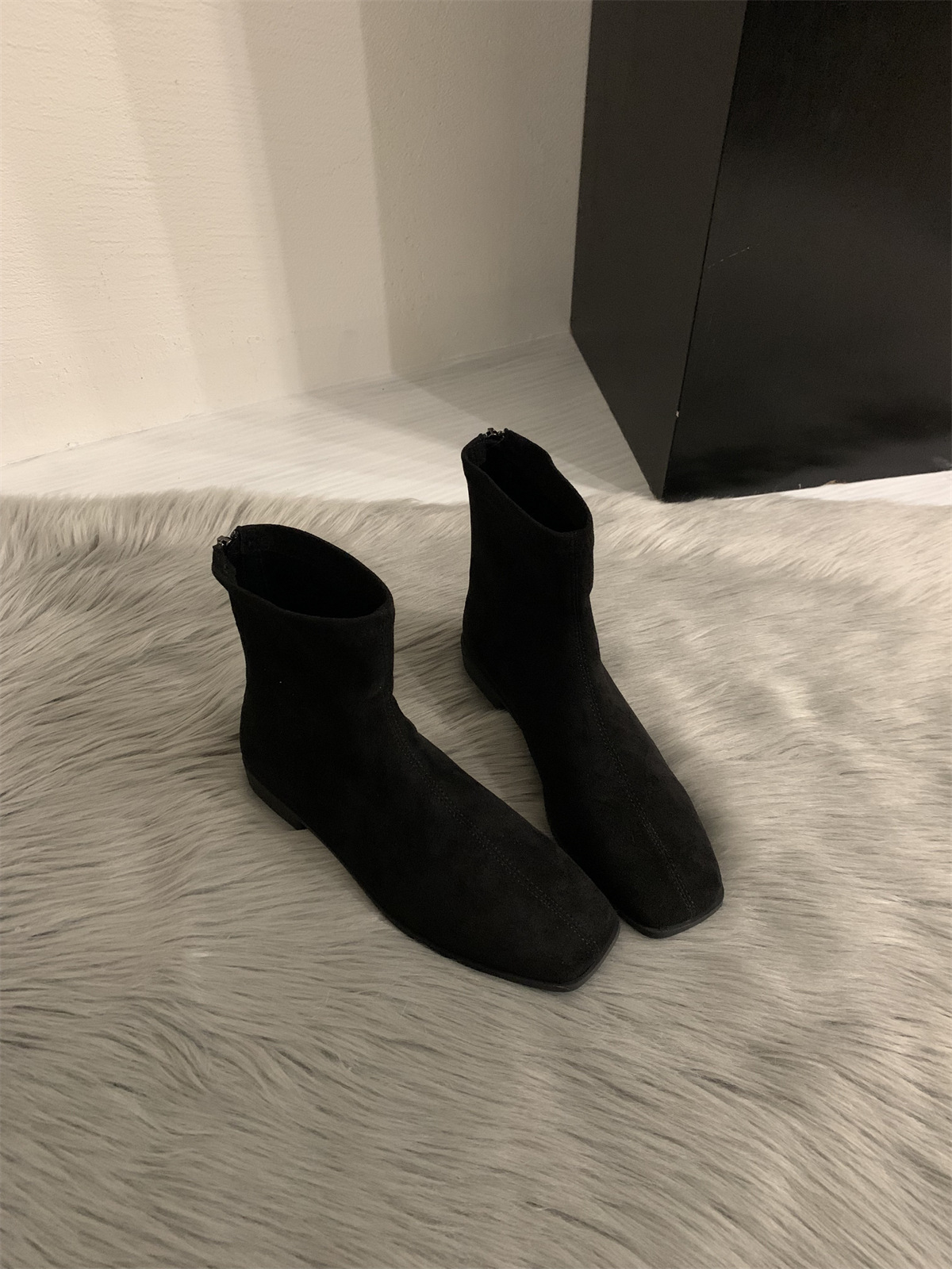 2024 осень и зима новые минималистские мягкие кожаные квадратные головы дикие ботинки на низком каблуке Martin сапоги женские молнии
