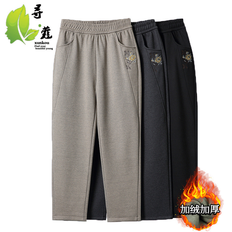 Новые женские брюки среднего возраста осенью и зимой плюшевые теплые брюки носят зимнюю одежду мама брюки 60 лет среднего и пожилого возраста одежда повседневная