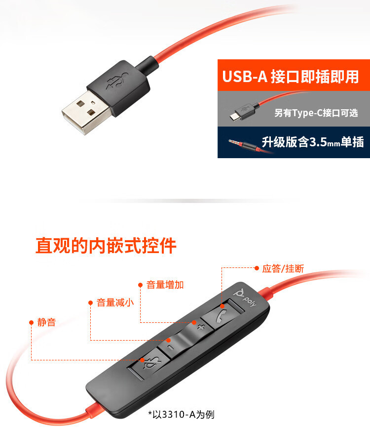 Boying POLY C3315M-C Телемаркинг обслуживания клиентов офисные наушники с шумоподавлением колл-центра (TYP)