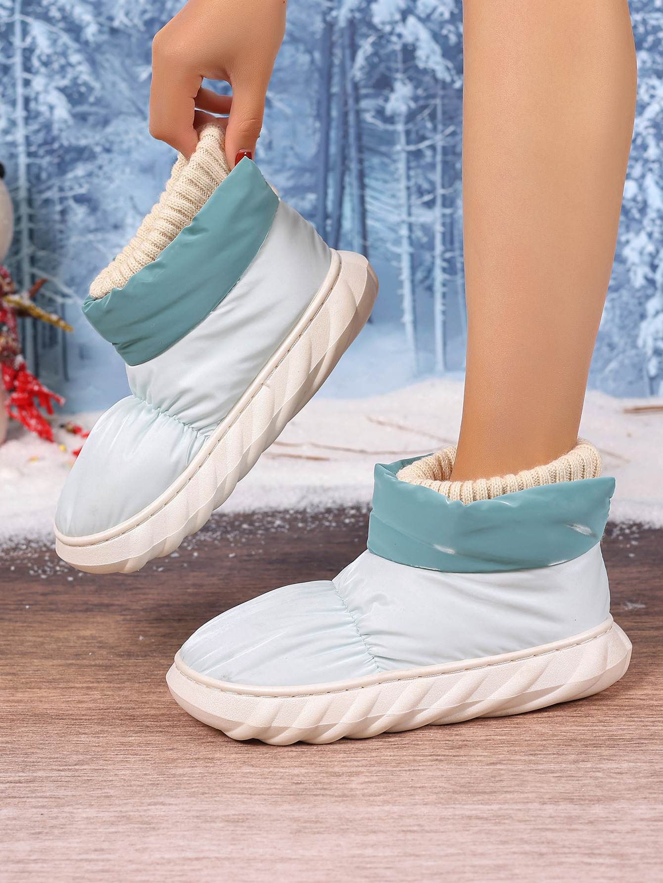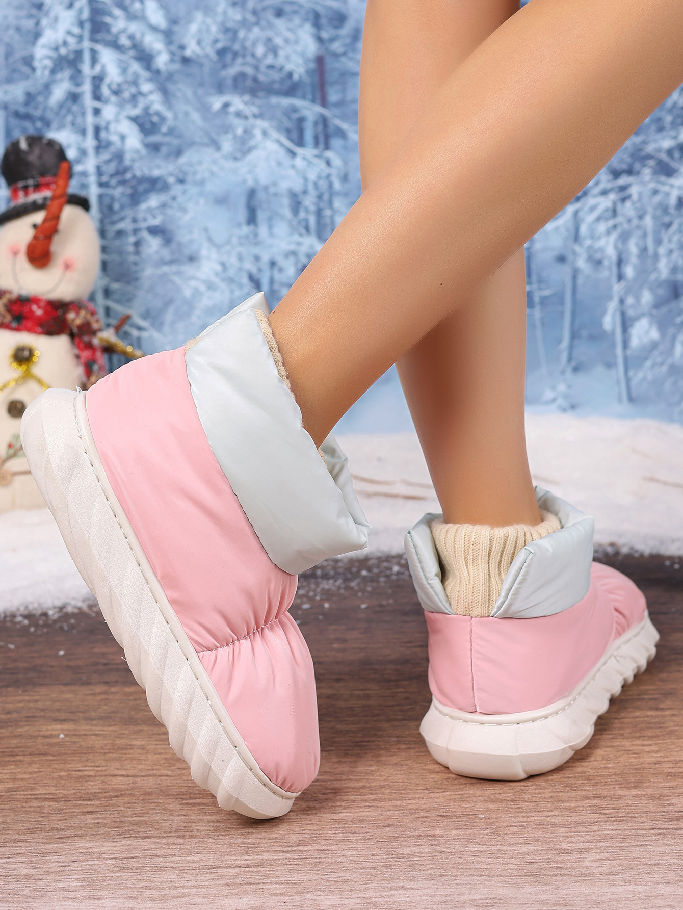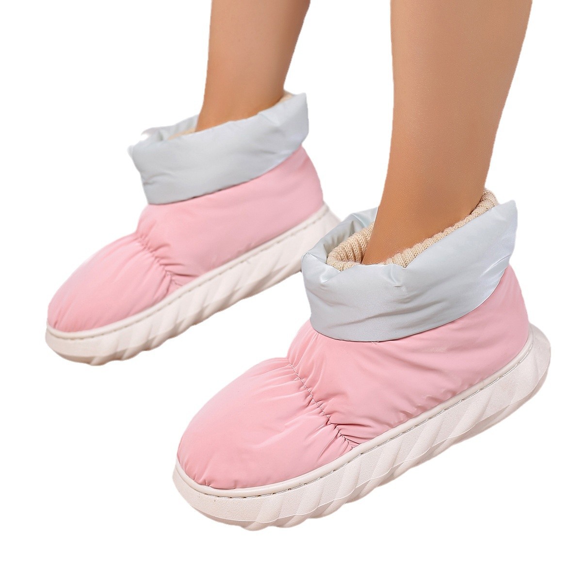 Простая сшитая пуховая ткань снежные сапоги женские зимние новые пары мужчин и женщин носят модную хлопчатобумажную обувь в помещении и на улице