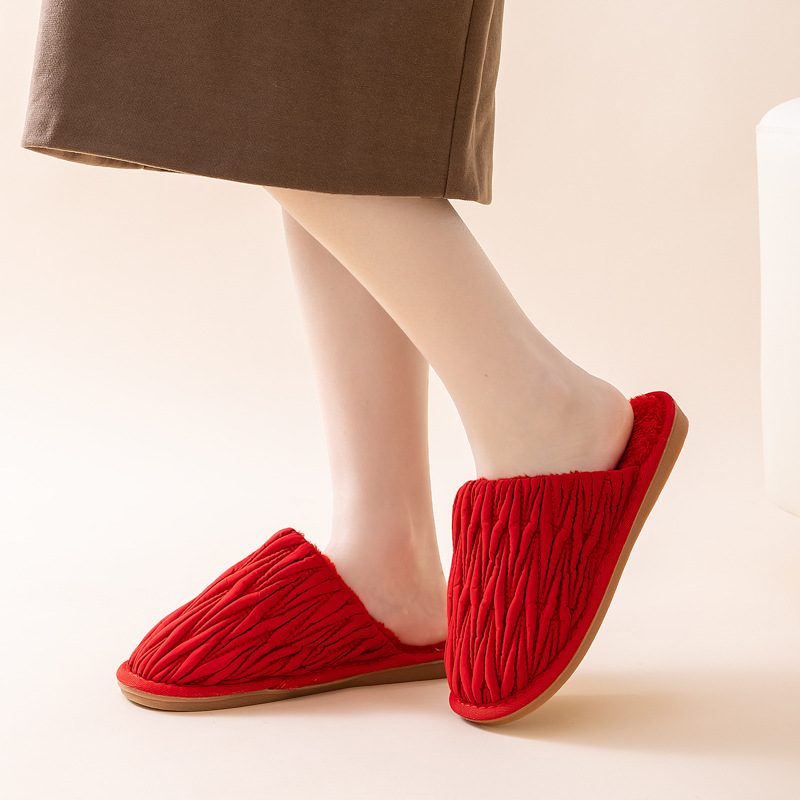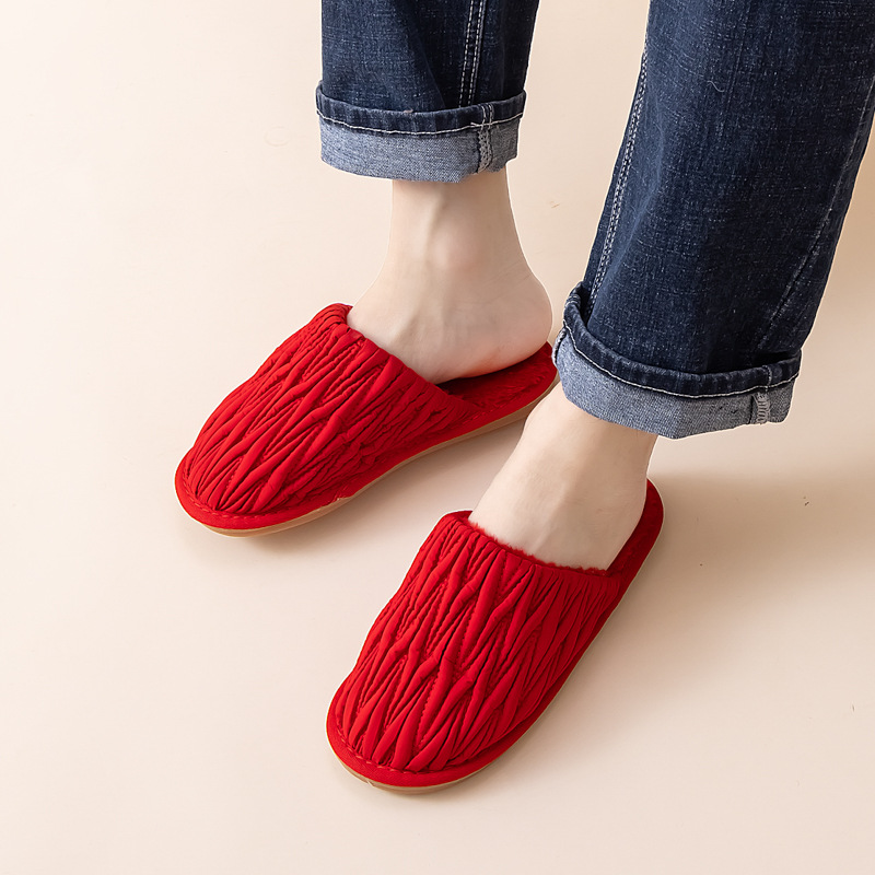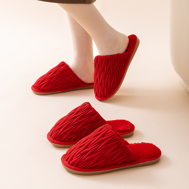 2024 складки новые свадебные тапочки осень-зима праздничный красный пара старших молодоженов приданое хлопчатобумажные тапочки