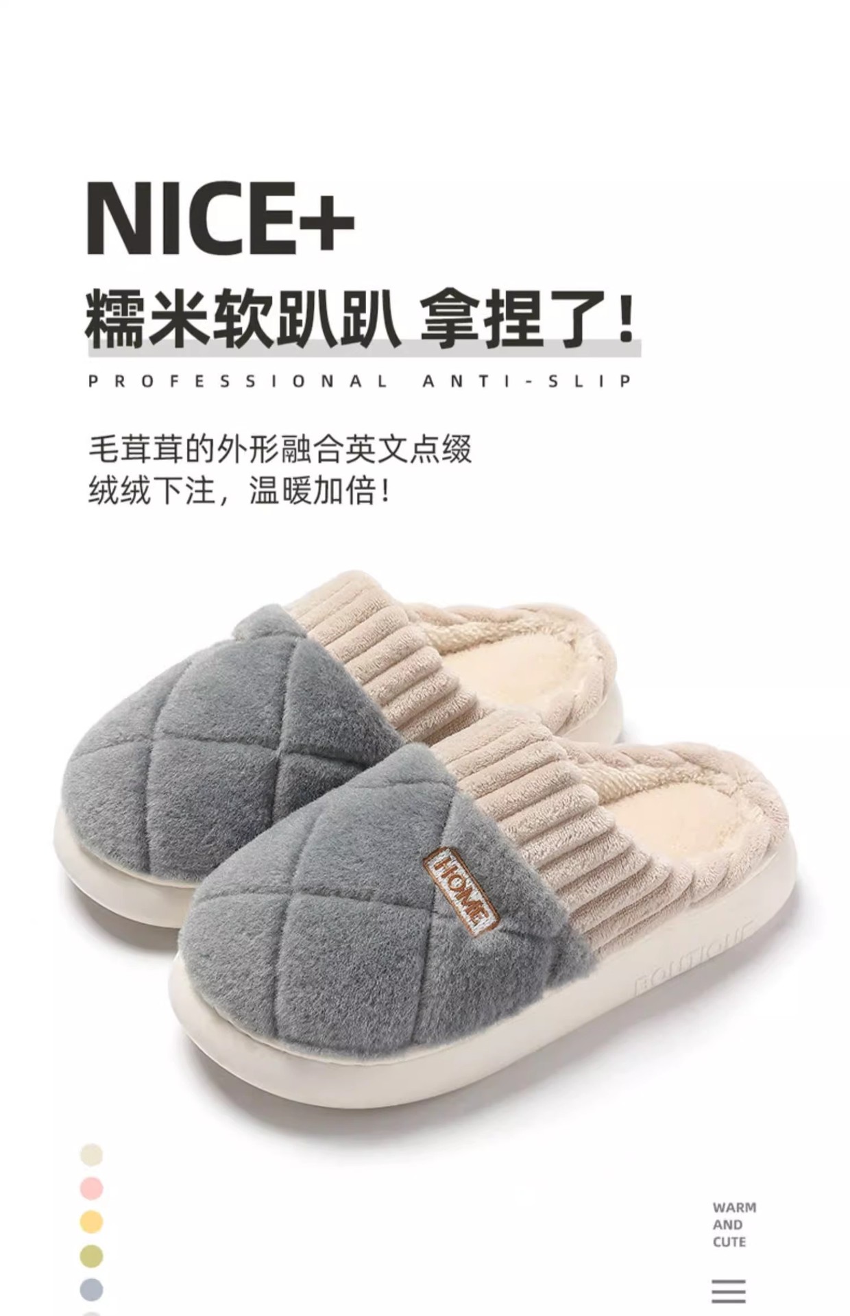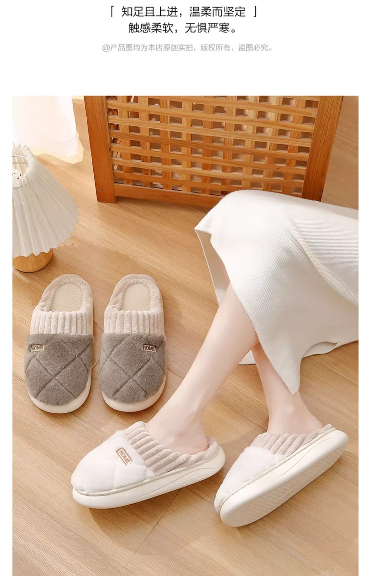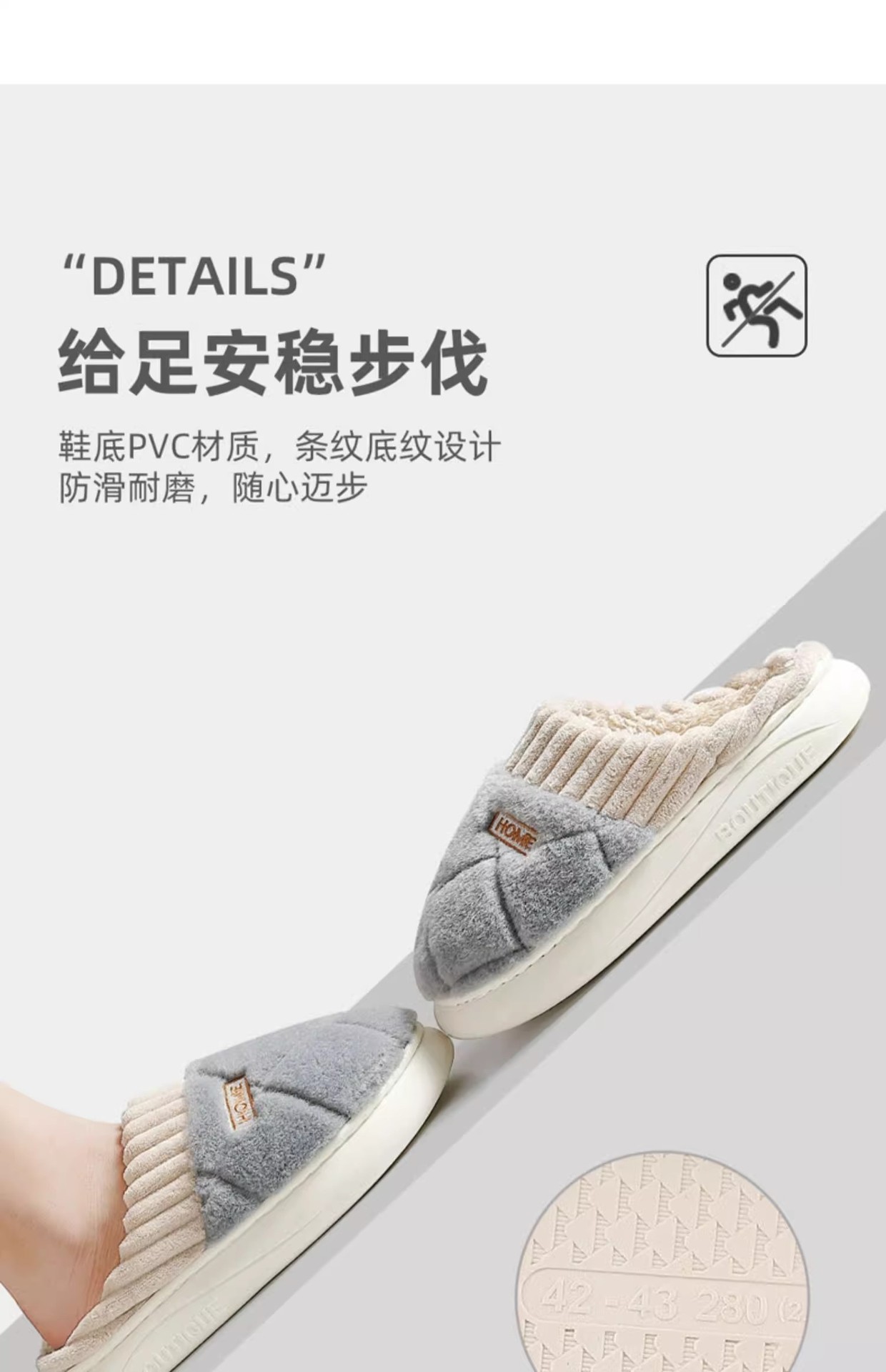 Хлопчатобумажные тапочки женские зимние толстые подошвы домашняя пара бесшумная противоскользящая теплая в помещении осенью и зимой домашние плюшевые тапочки мужчины
