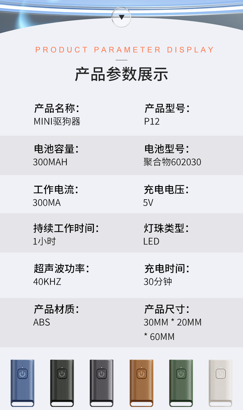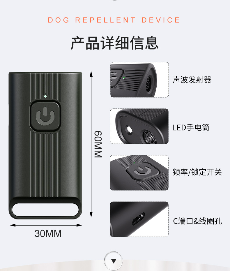 注意事项:1、产品利用超声波工作原理,对不同犬型效果各有差异;