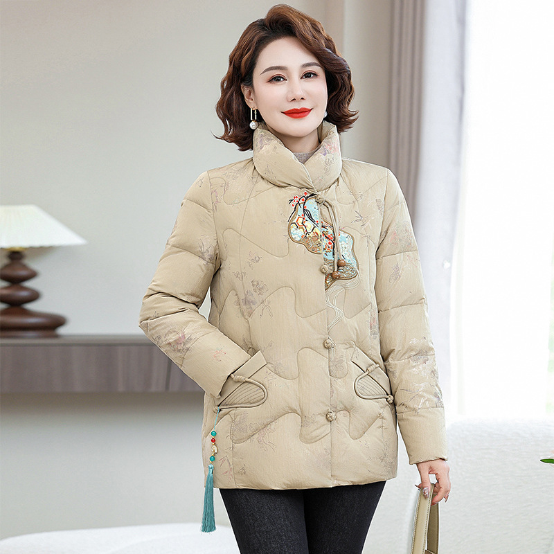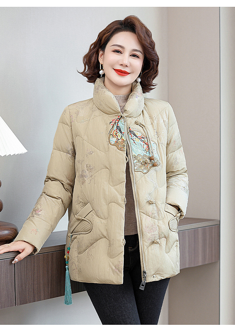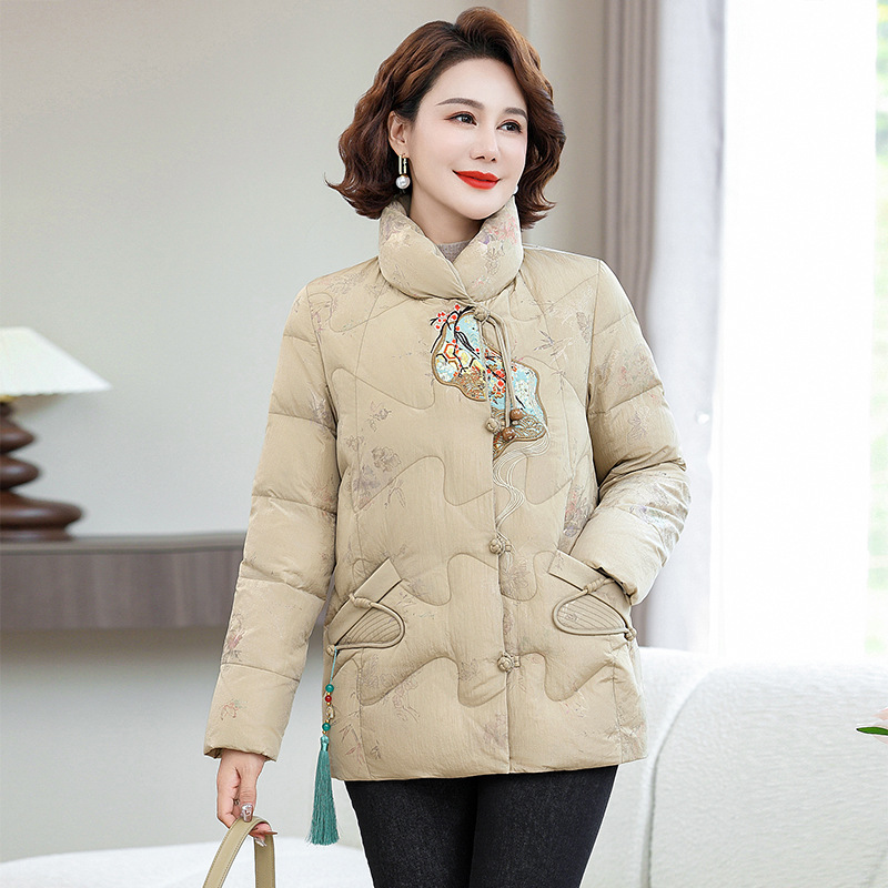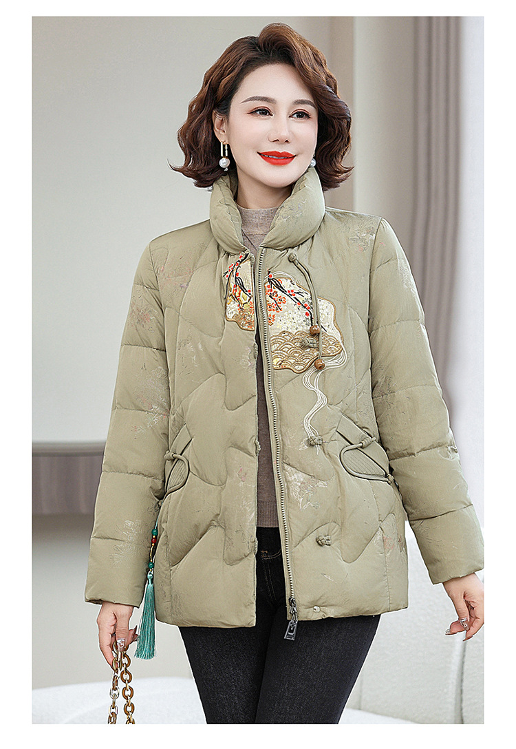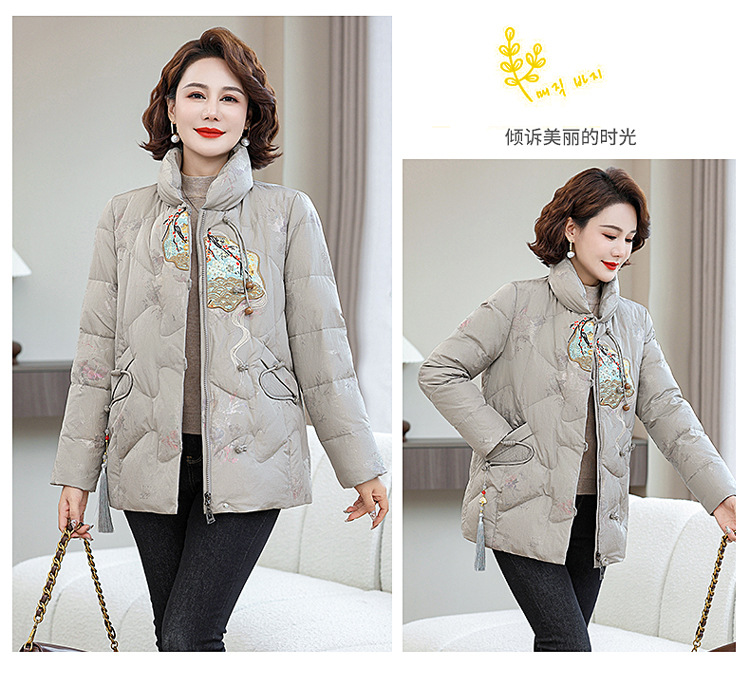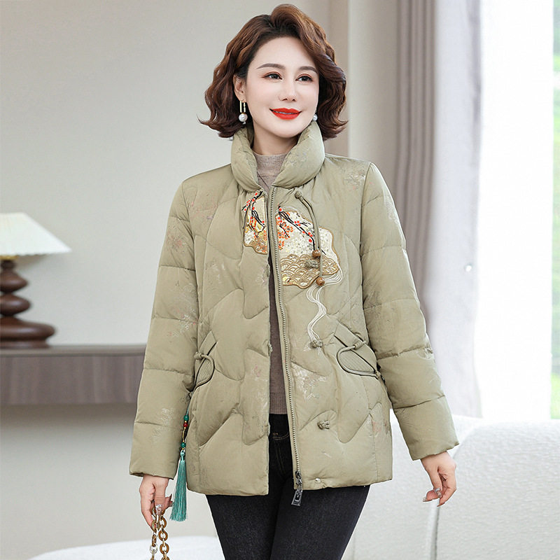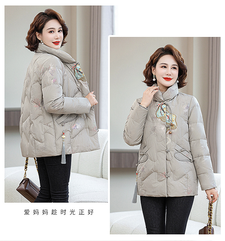 Зимняя новая мама платье короткая белая утка пуховик новый китайский стиль с вышивкой толстые хлопчатобумажные куртки среднего возраста женская куртка