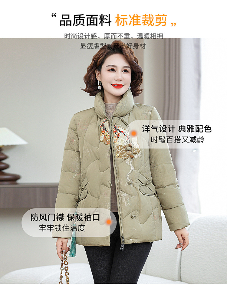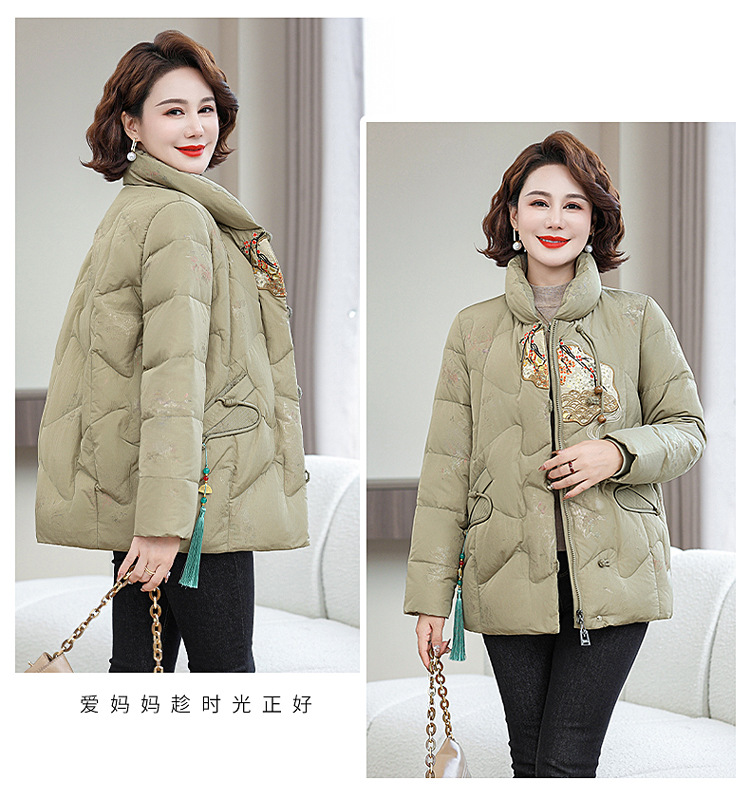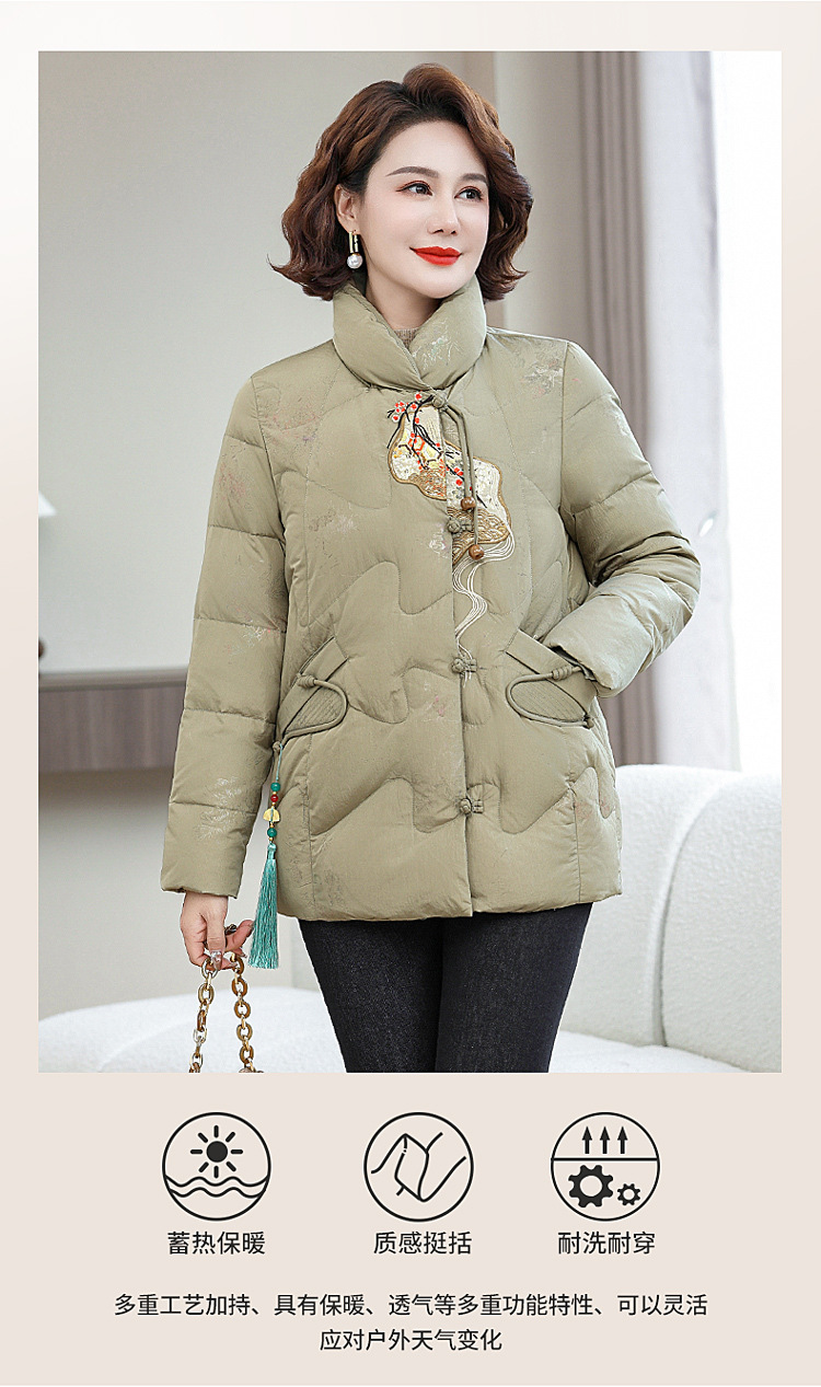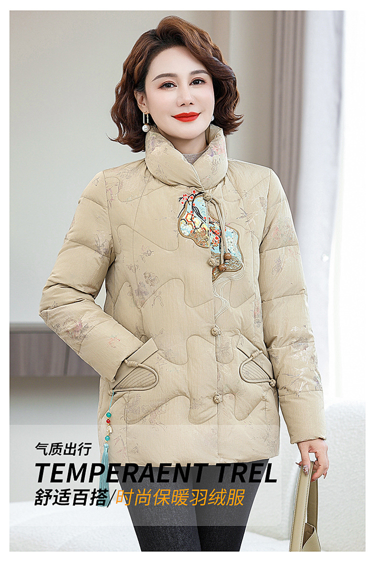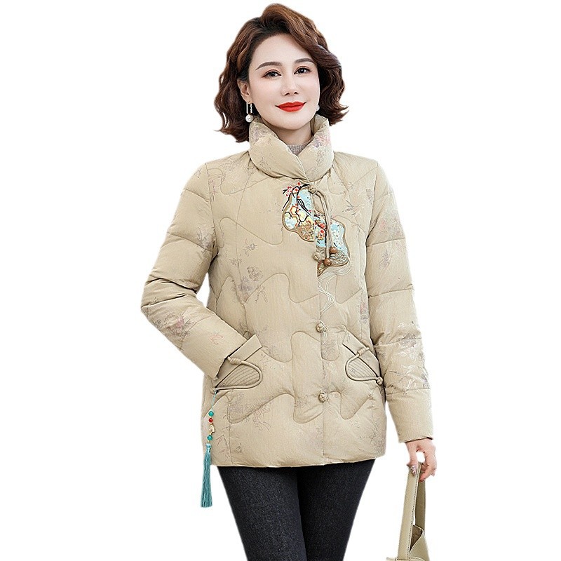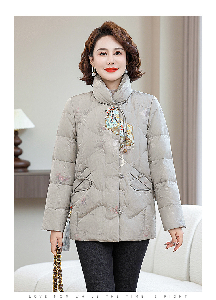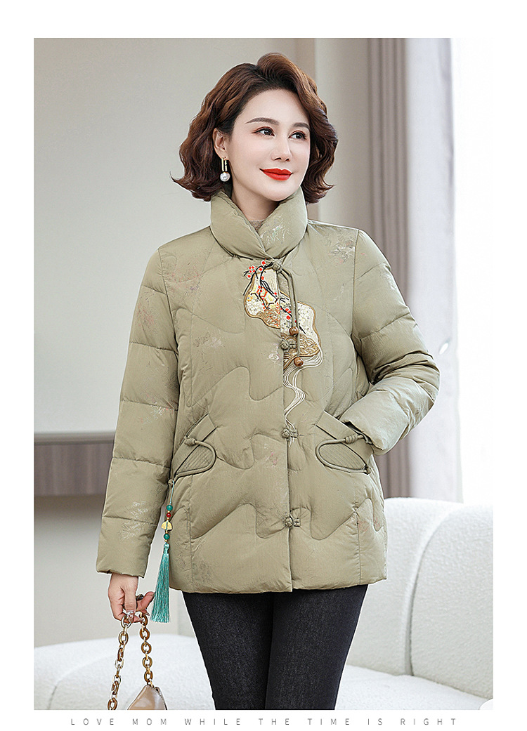 Зимняя новая мама платье короткая белая утка пуховик новый китайский стиль с вышивкой толстые хлопчатобумажные куртки среднего возраста женская куртка