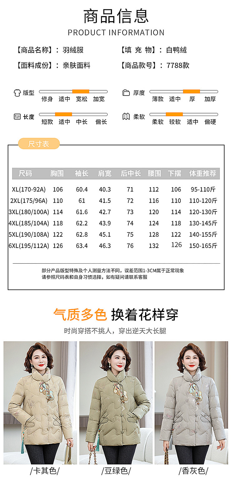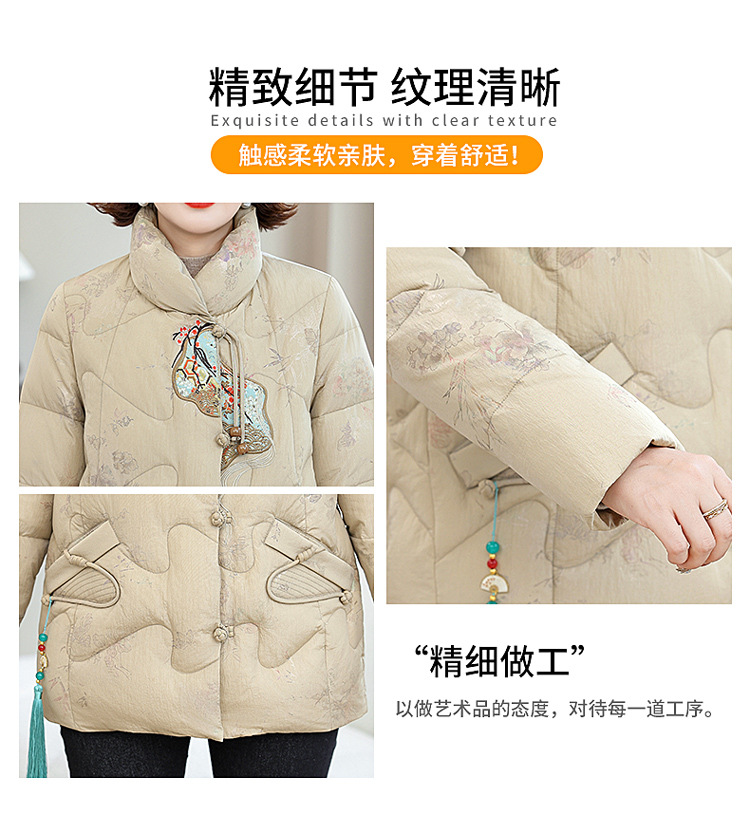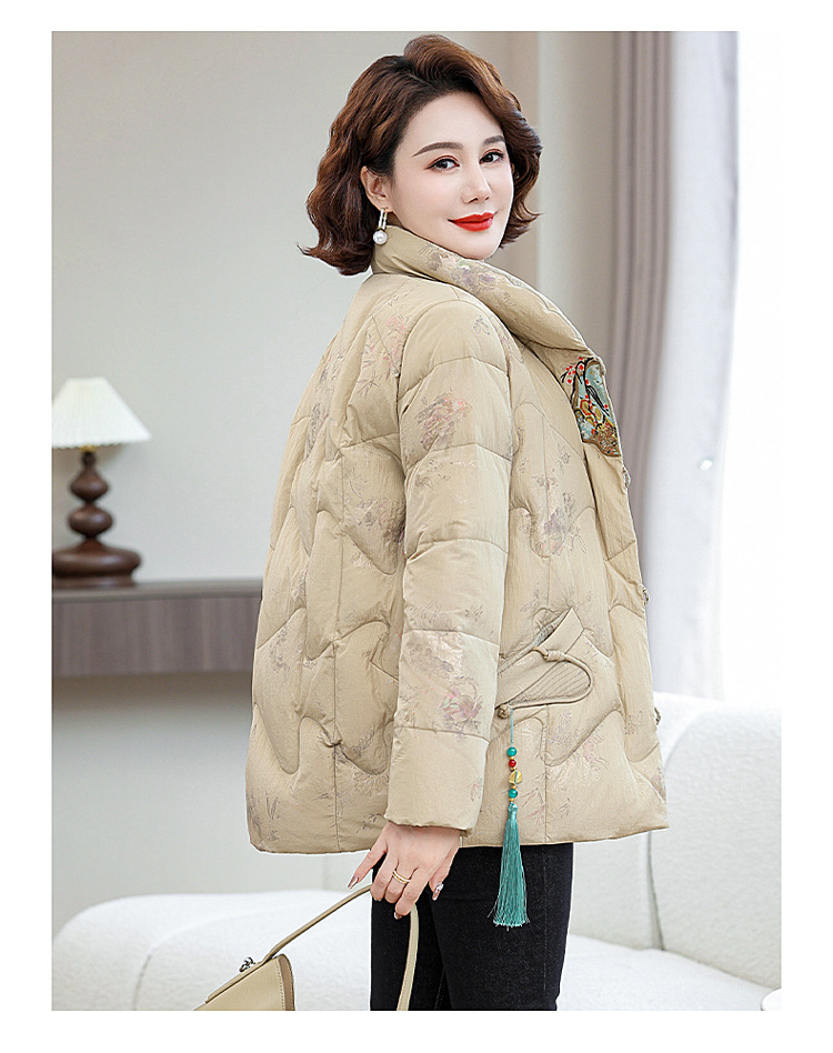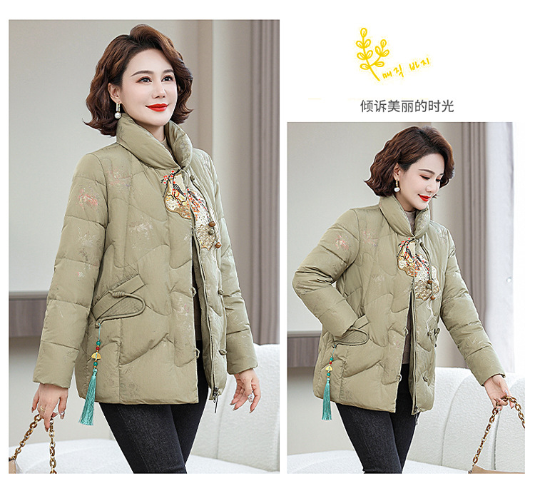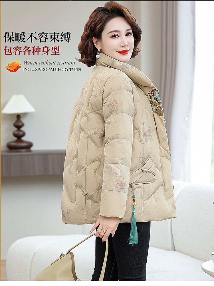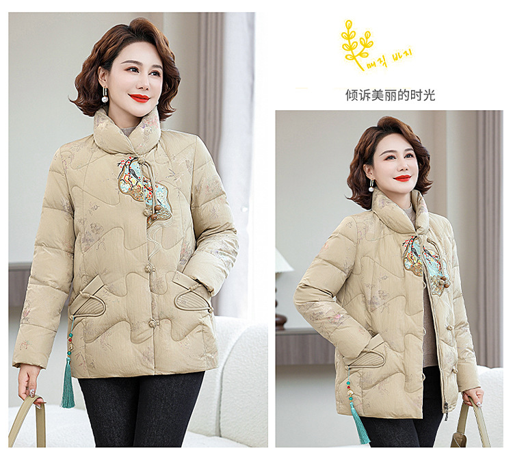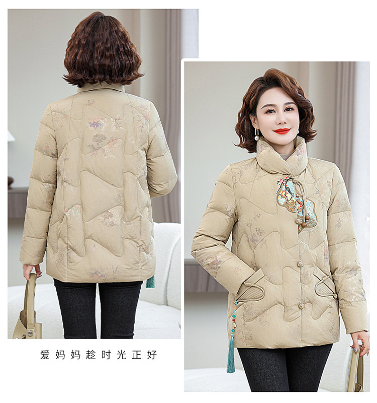 Зимняя новая мама платье короткая белая утка пуховик новый китайский стиль с вышивкой толстые хлопчатобумажные куртки среднего возраста женская куртка