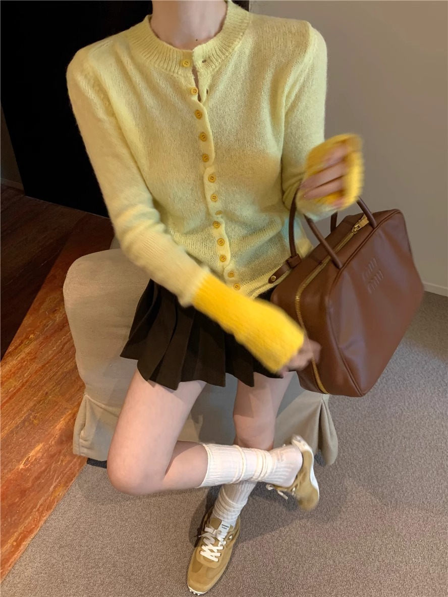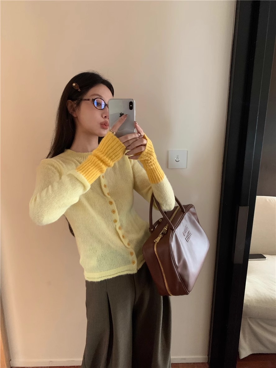 Корейский продвинутый трикотажный кардиган женский осенний тонкий и свободный дизайн свитер куртка топ зимой