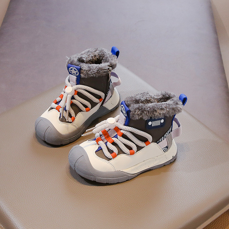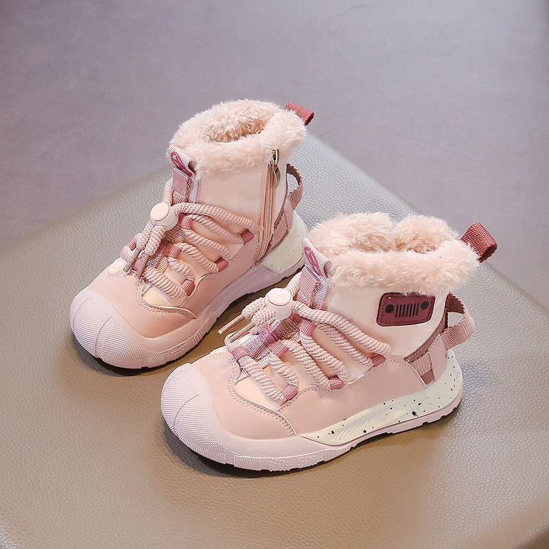 Детские утепленные флисом высокие кроссовки, модели осень-зима 2025, теплые хлопковые ботинки для мальчиков, зимние сапоги для девочек среднего и большого размера