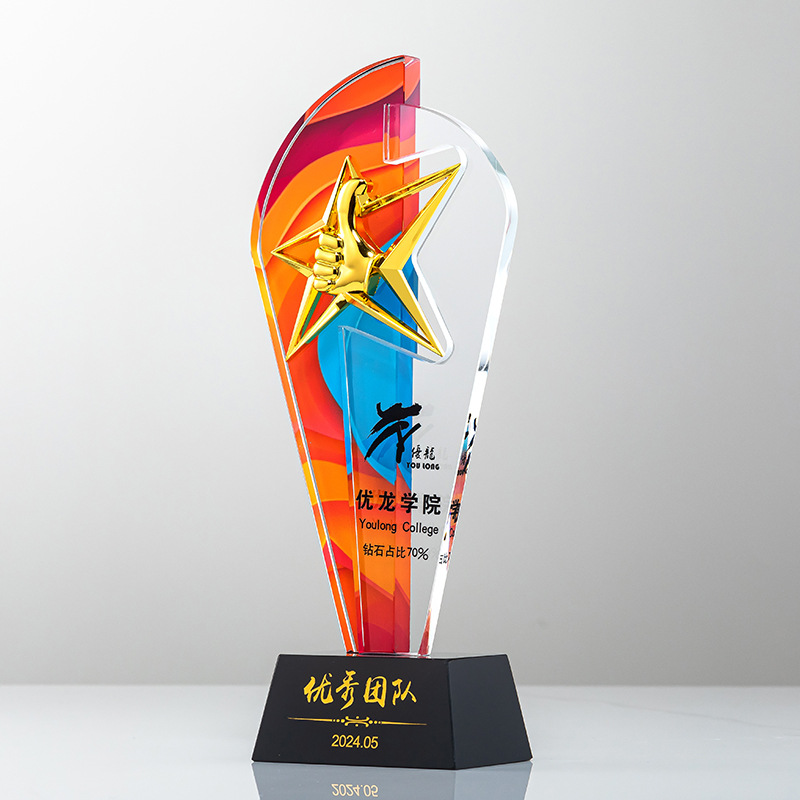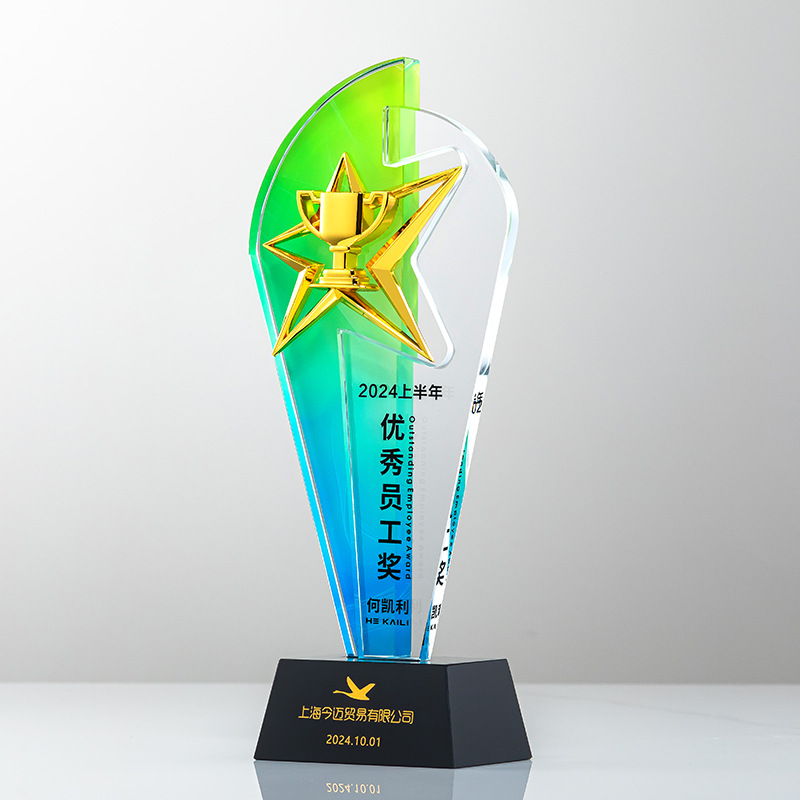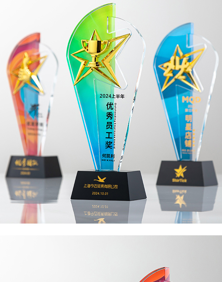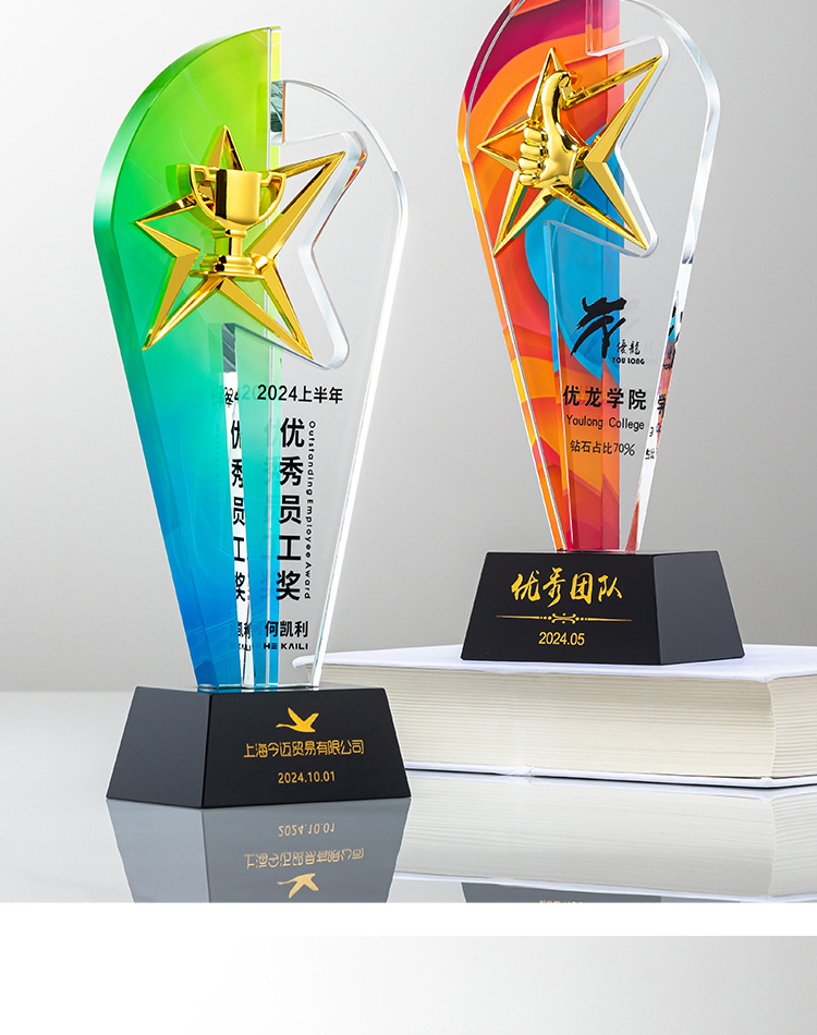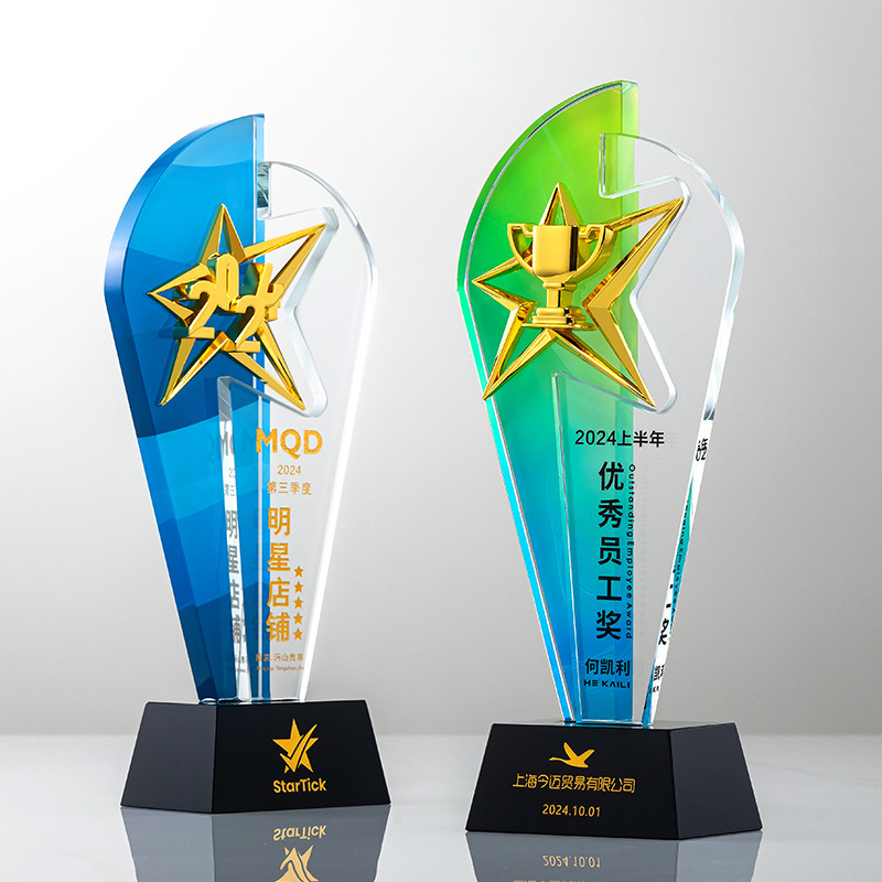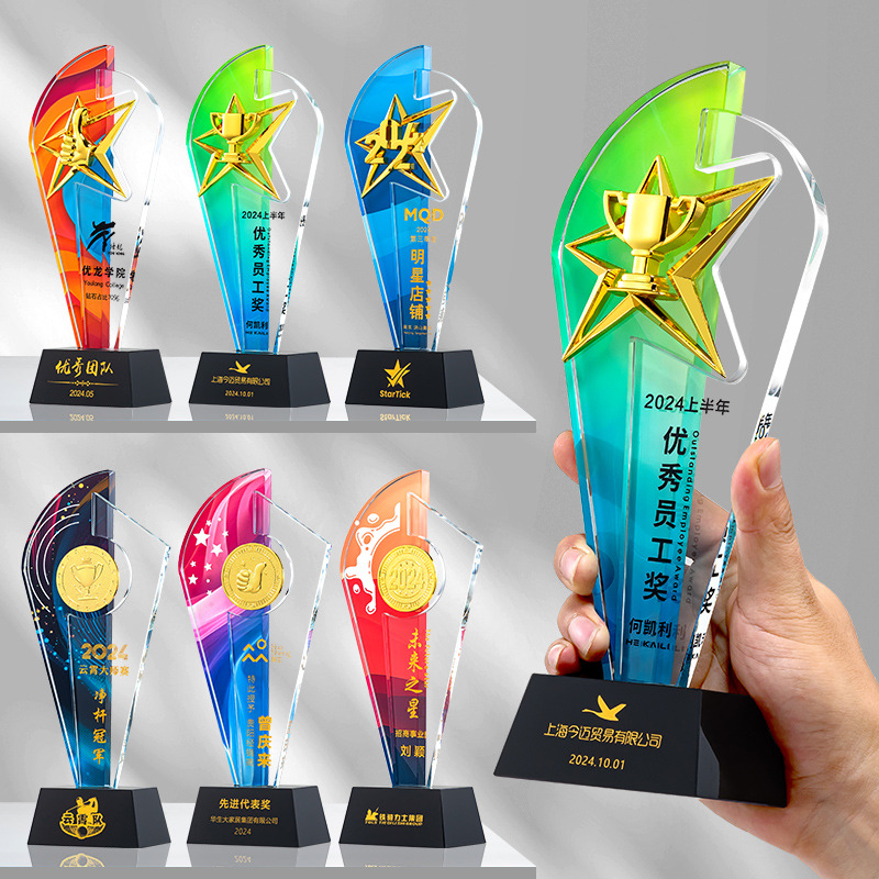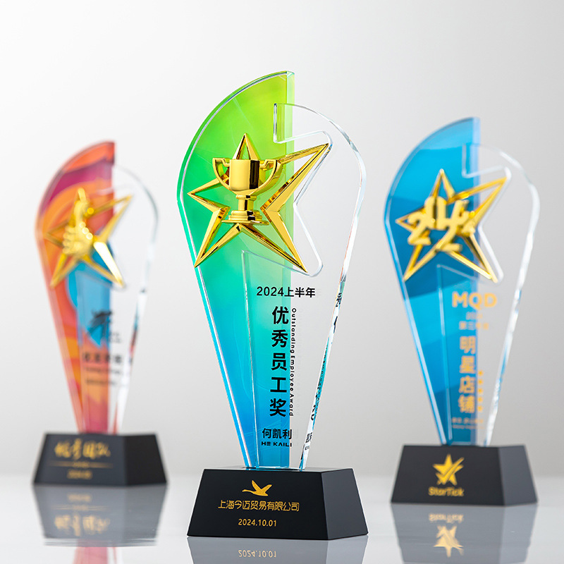 Ежегодная встреча выдающихся сотрудников награждает сувенирными надписями пятиконечная звезда хрустальный трофей цветной высококачественный стеклянный приз