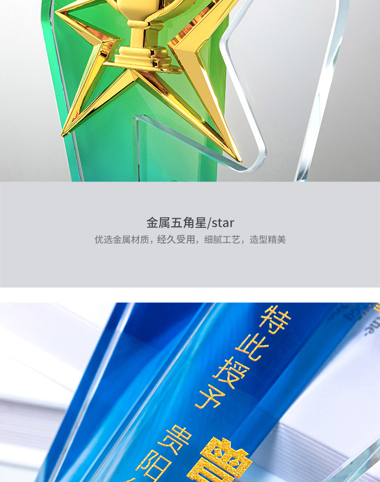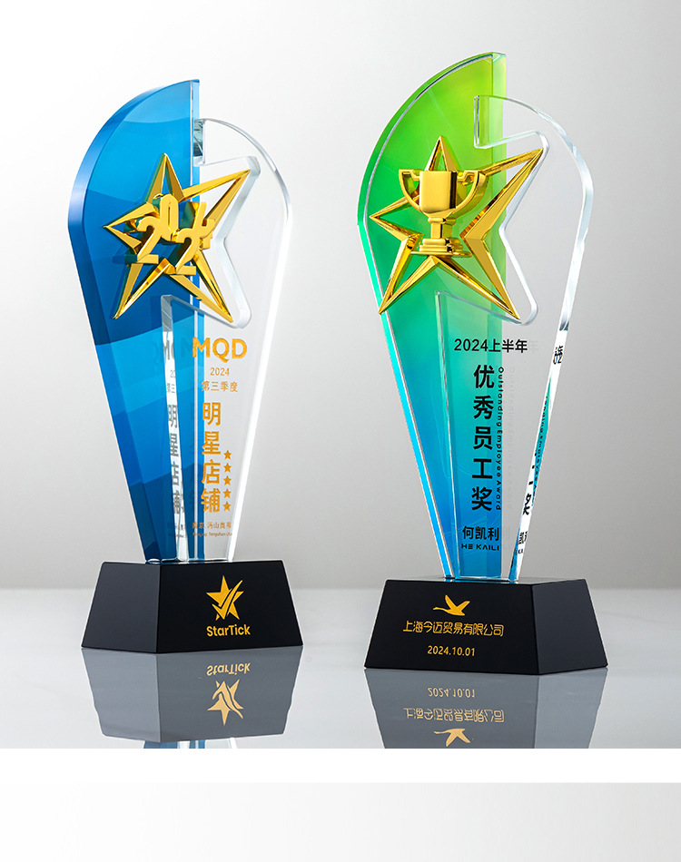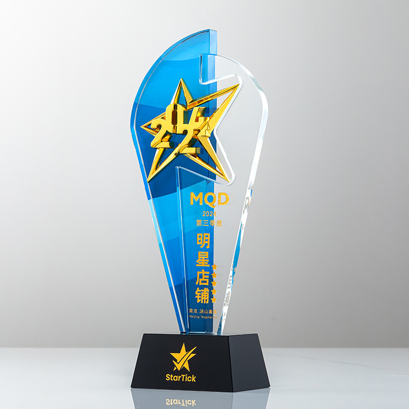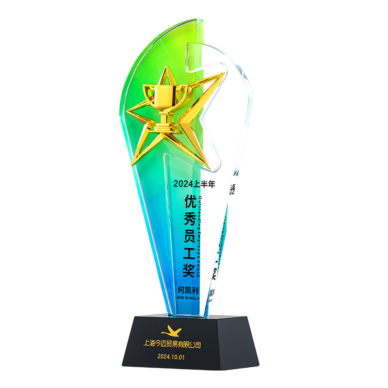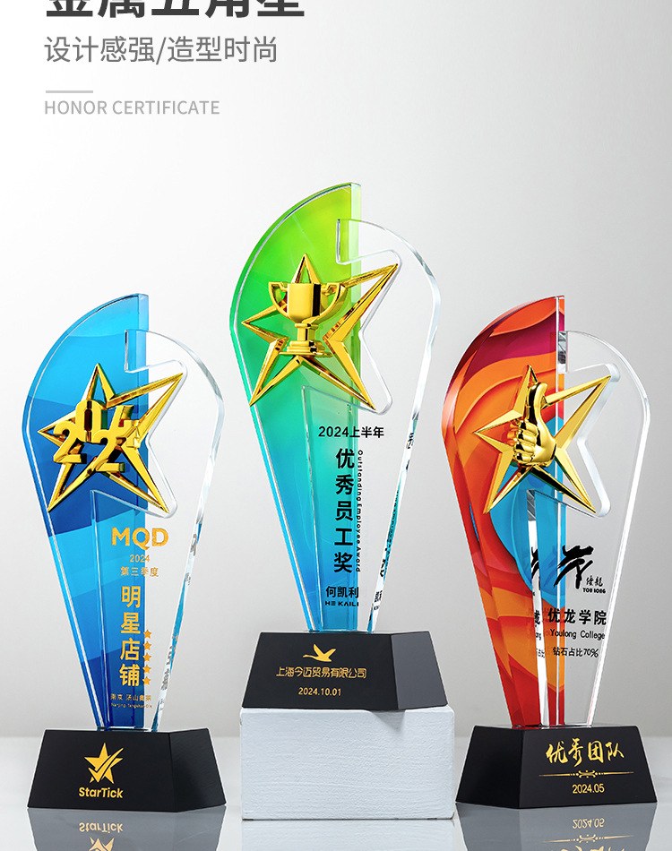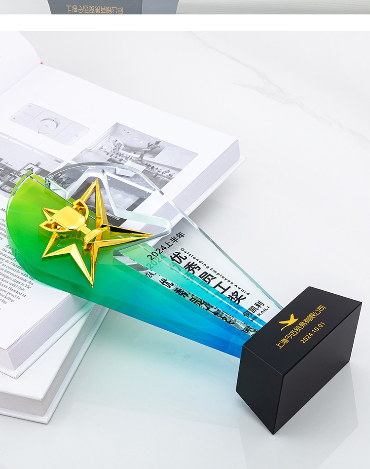 Ежегодная встреча выдающихся сотрудников награждает сувенирными надписями пятиконечная звезда хрустальный трофей цветной высококачественный стеклянный приз