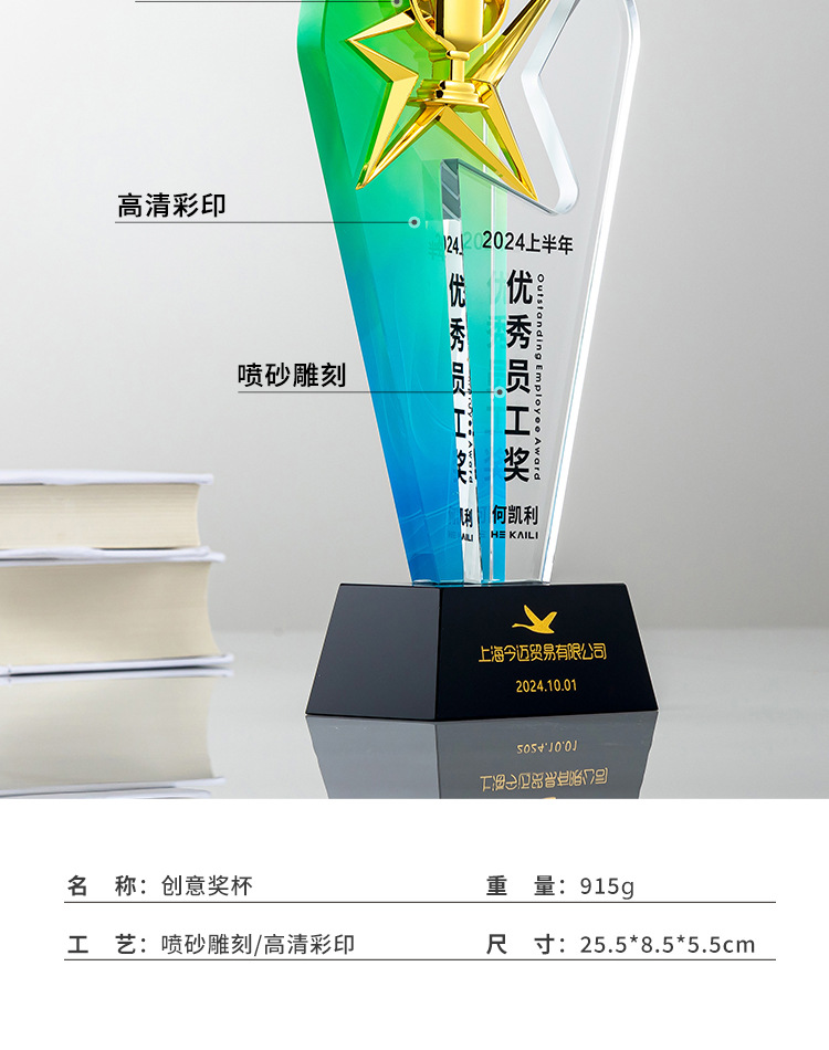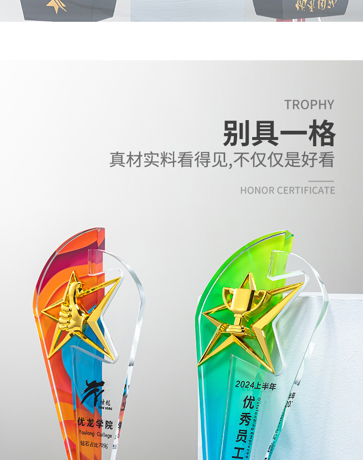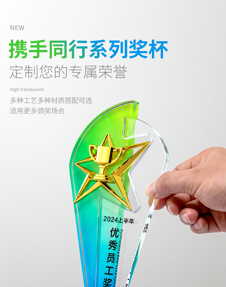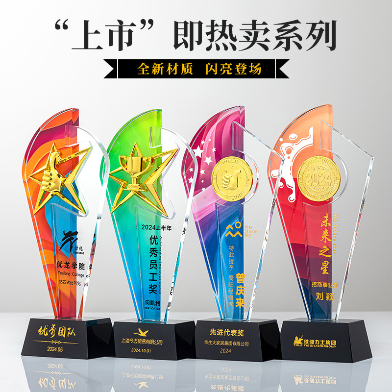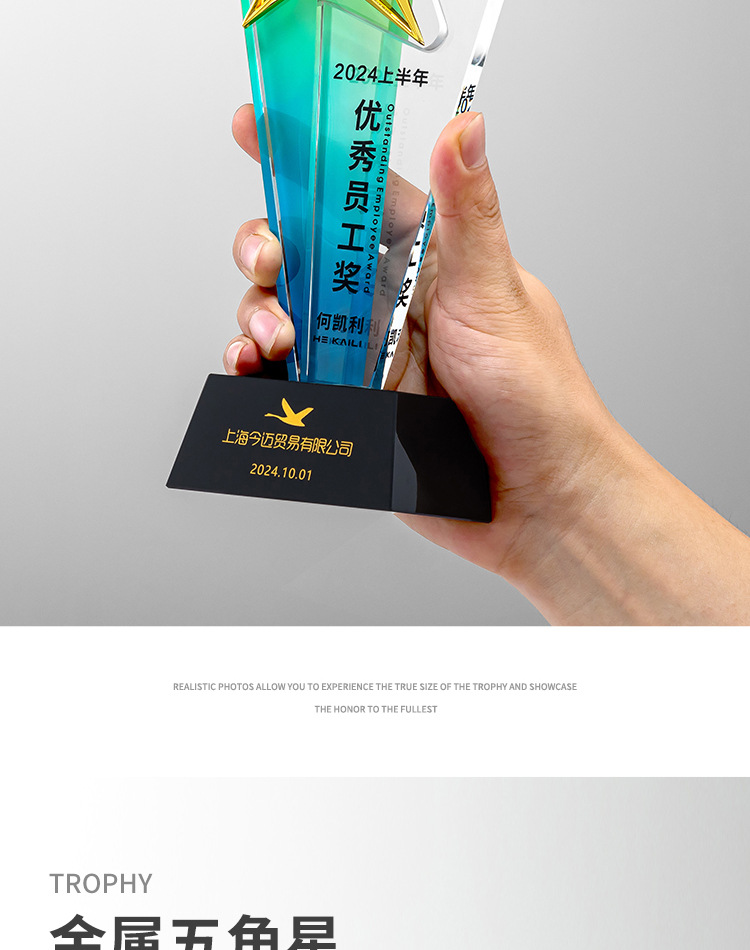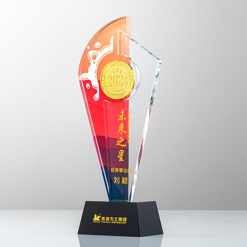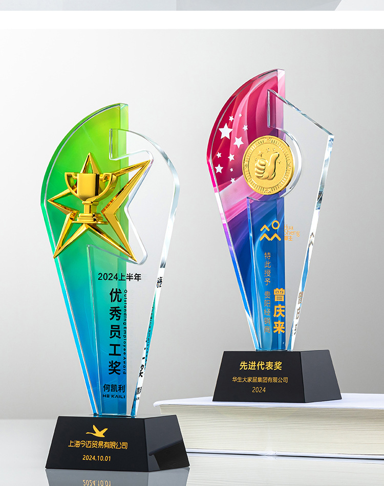 Ежегодная встреча выдающихся сотрудников награждает сувенирными надписями пятиконечная звезда хрустальный трофей цветной высококачественный стеклянный приз