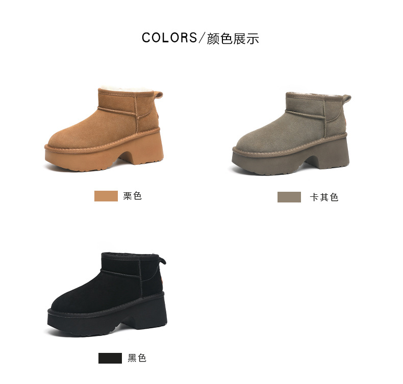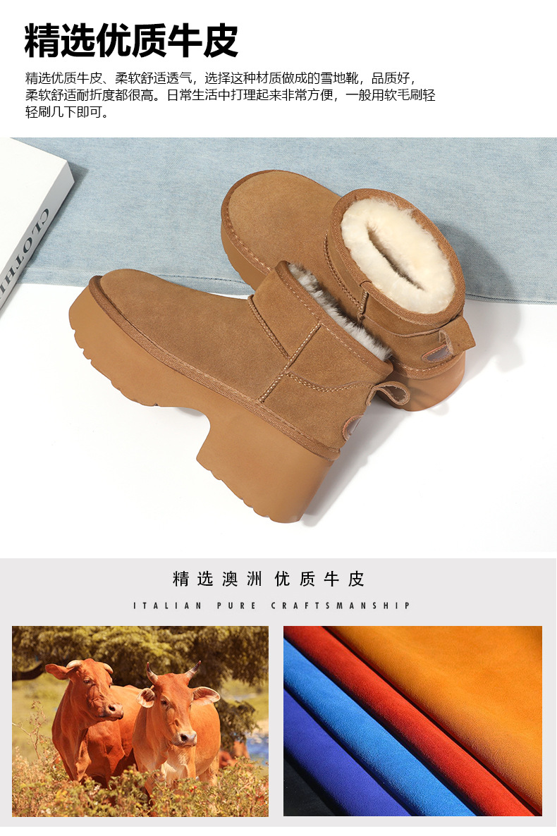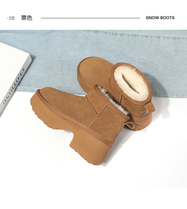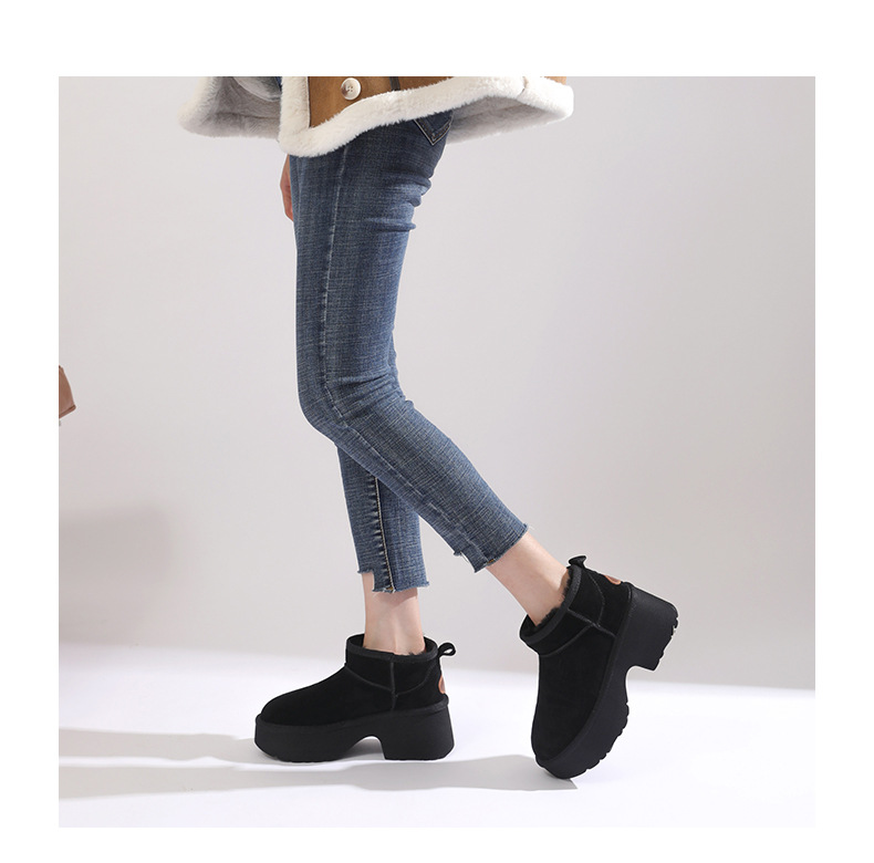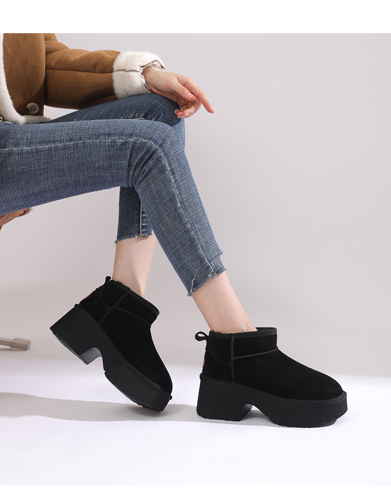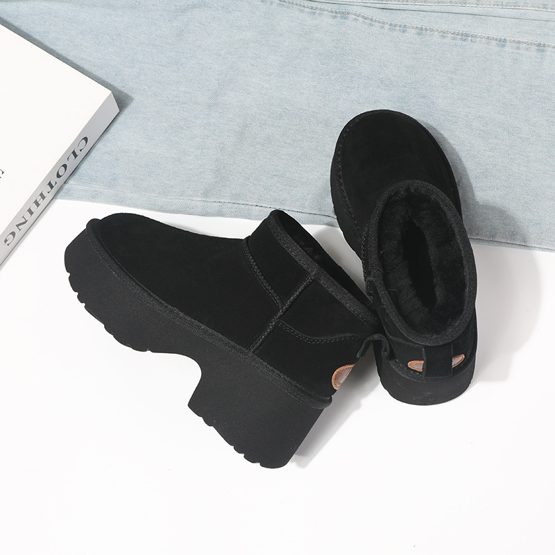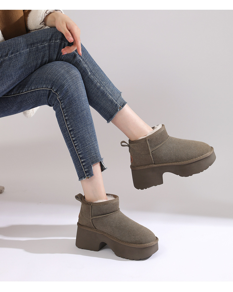 Новые женские зимние короткие сапоги 2025 года на высоком каблуке-танкетке, утепленные, из натуральной кожи, женские зимние сапоги на хлопковой подкладке 5972