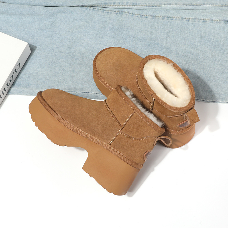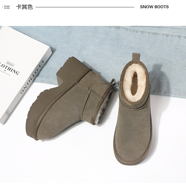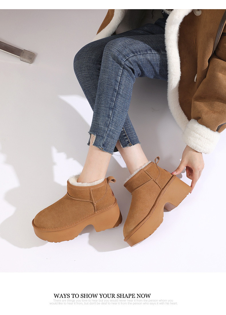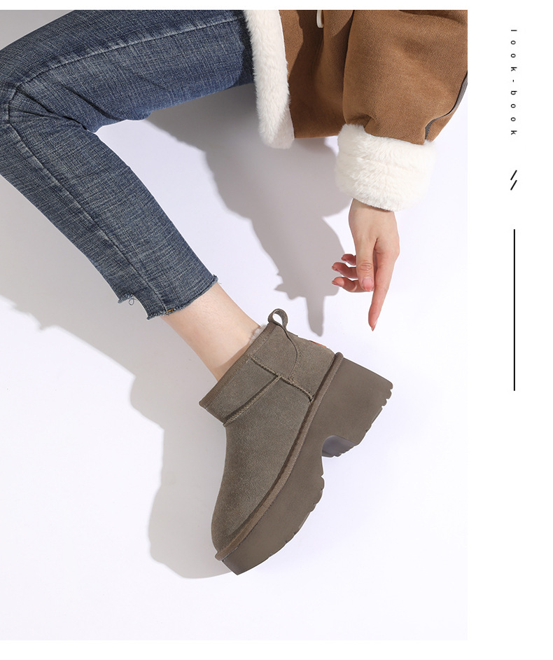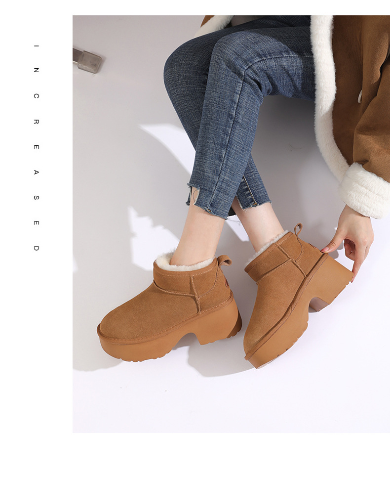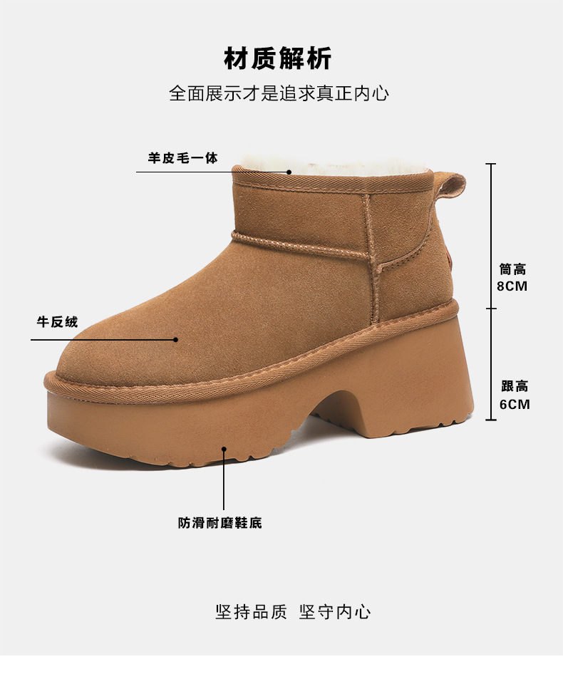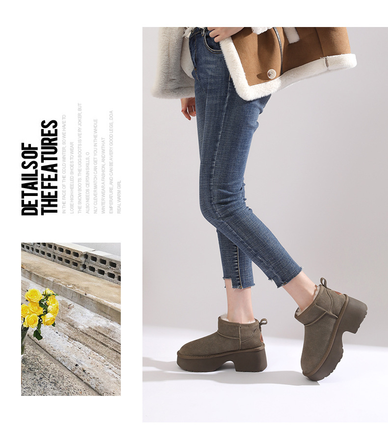 Новые женские зимние короткие сапоги 2025 года на высоком каблуке-танкетке, утепленные, из натуральной кожи, женские зимние сапоги на хлопковой подкладке 5972