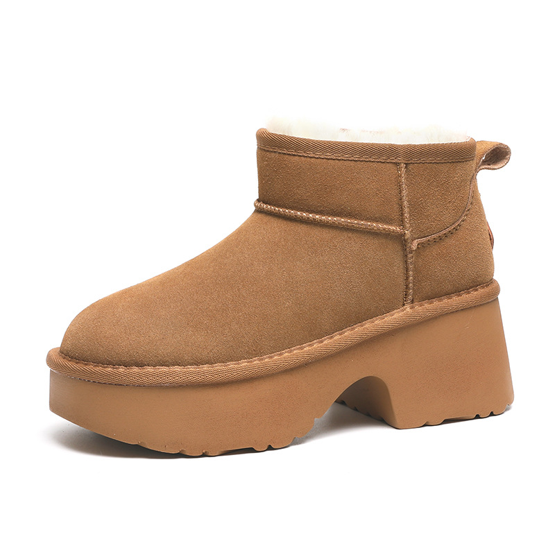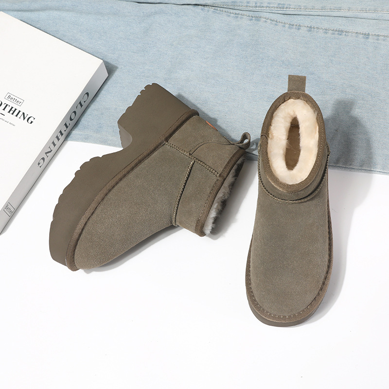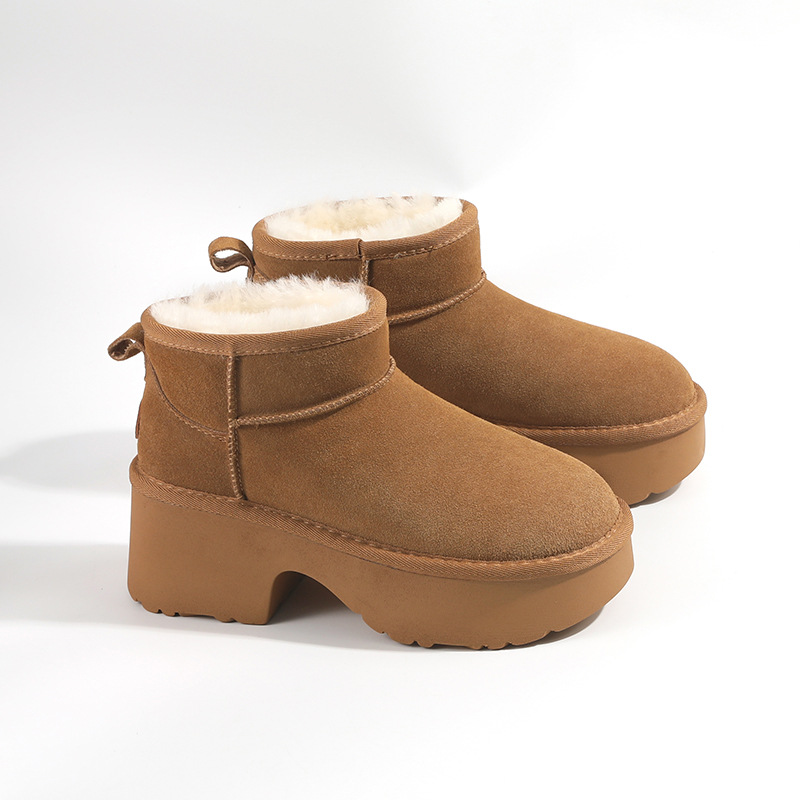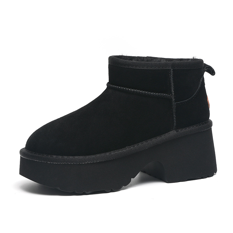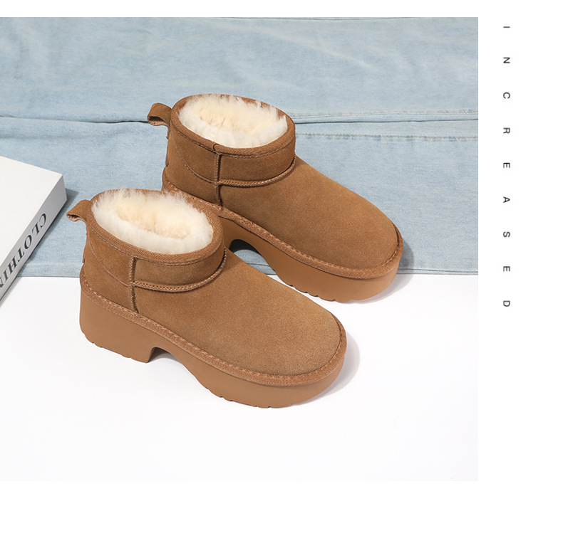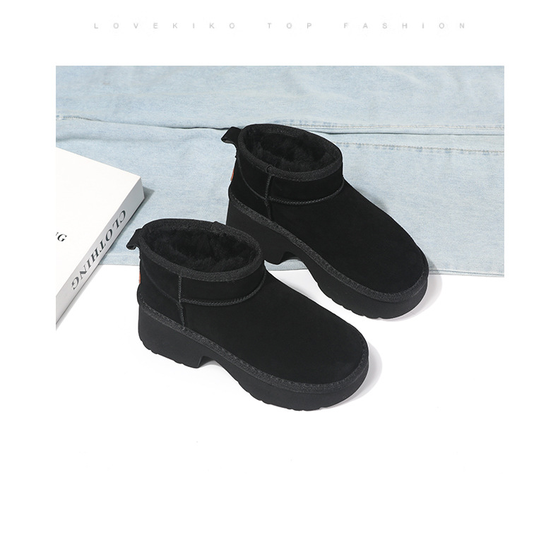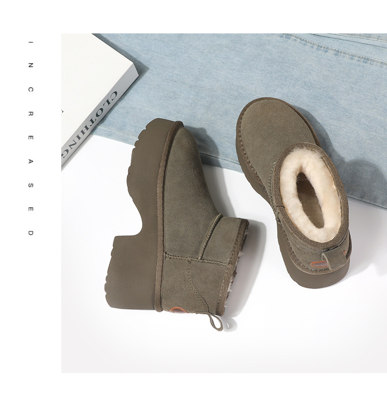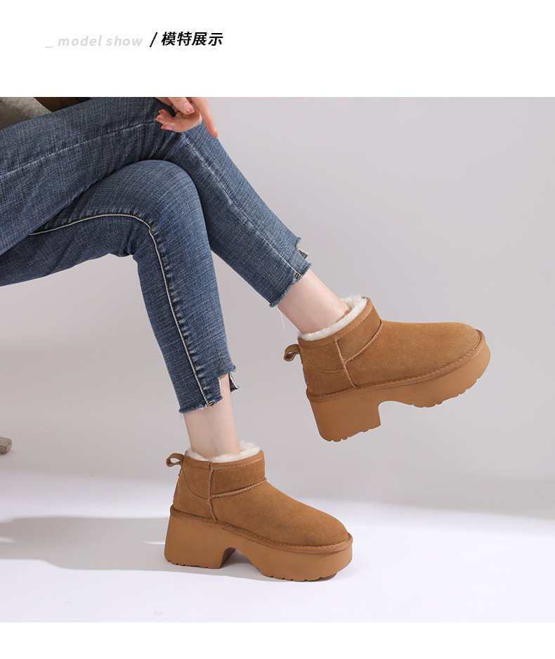 Новые женские зимние короткие сапоги 2025 года на высоком каблуке-танкетке, утепленные, из натуральной кожи, женские зимние сапоги на хлопковой подкладке 5972