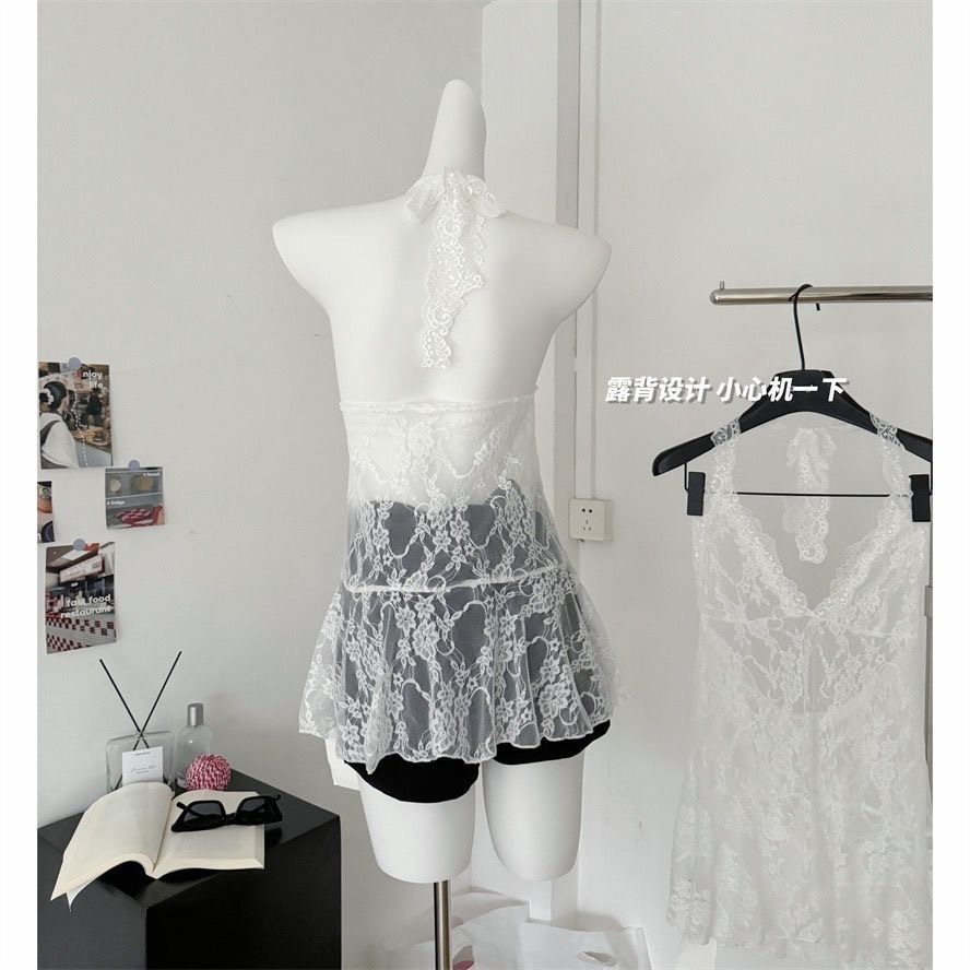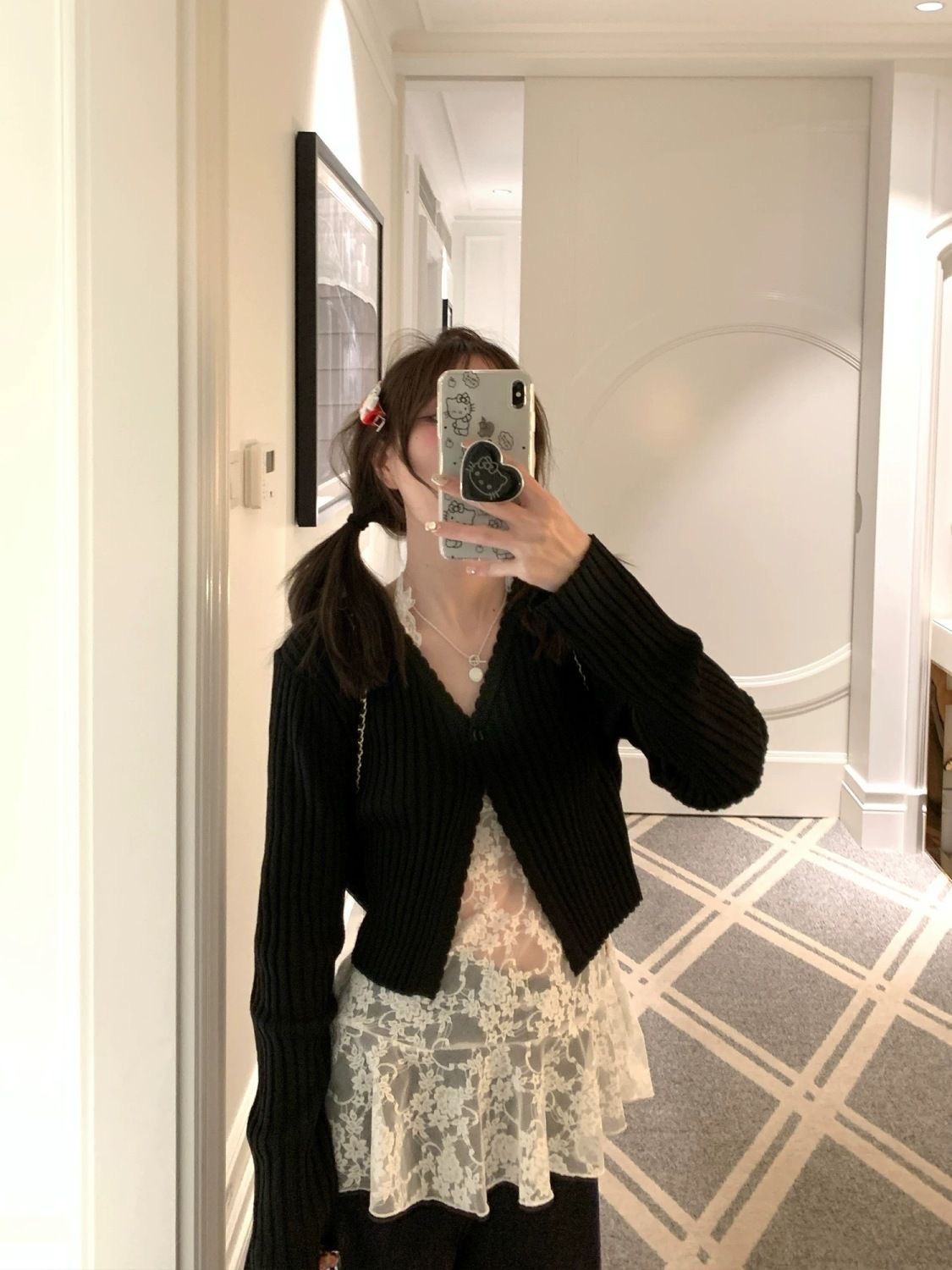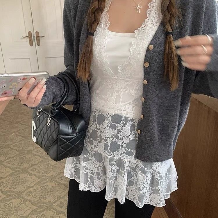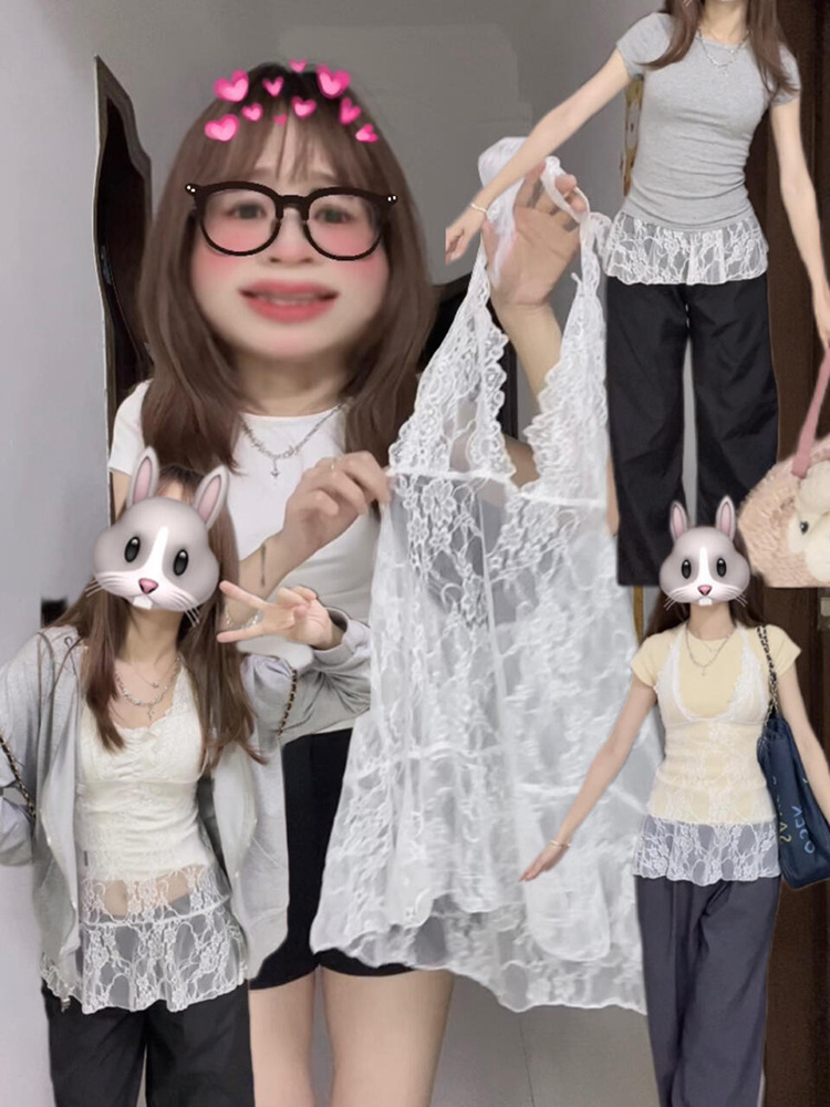 2024 утренний и осенний белый кружевной подтяжки женский топ с V-образным вырезом