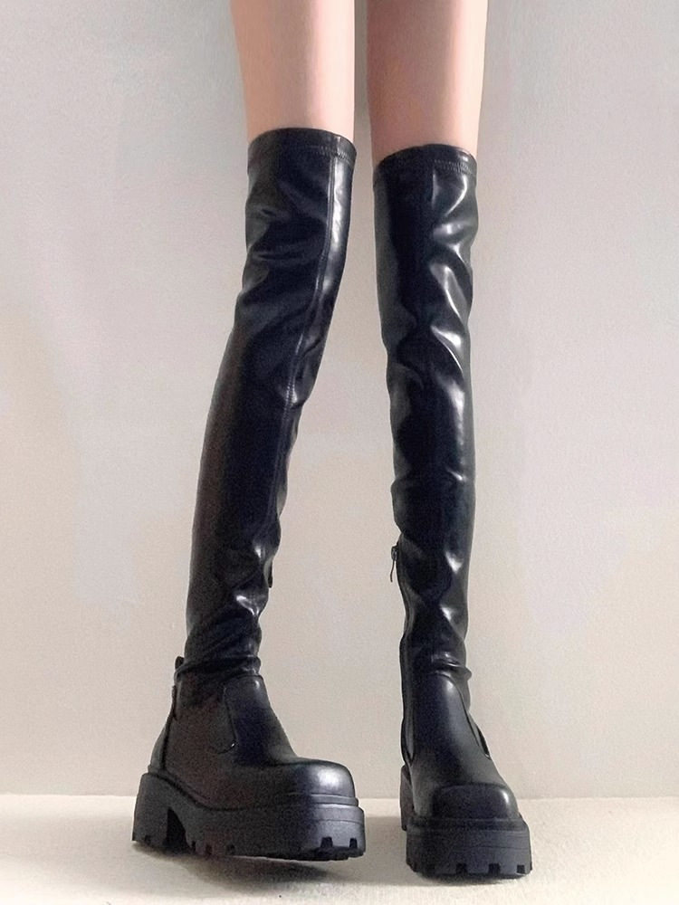 Сапоги выше колена, женские сапоги на толстой подошве, новинка 2024, весенне-осенние высокие рыцарские сапоги, маленькие сапоги
