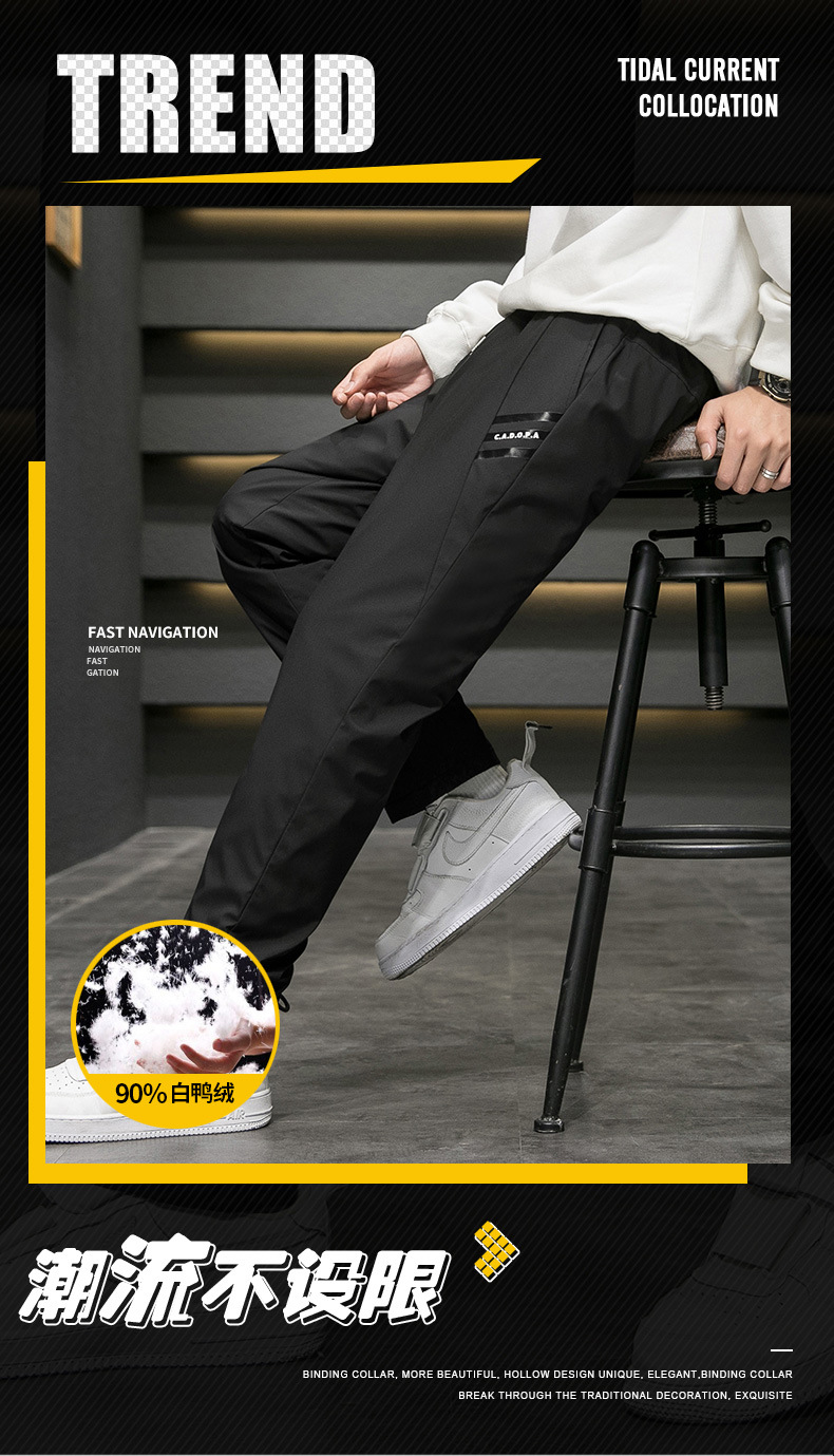 Зимние 90% бархатные пуховые брюки на открытом воздухе сплошные брюки мужские кроссовки на молнии карманы повседневные брюки прямые спортивные брюки