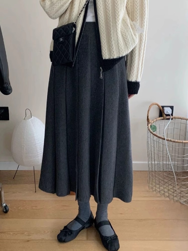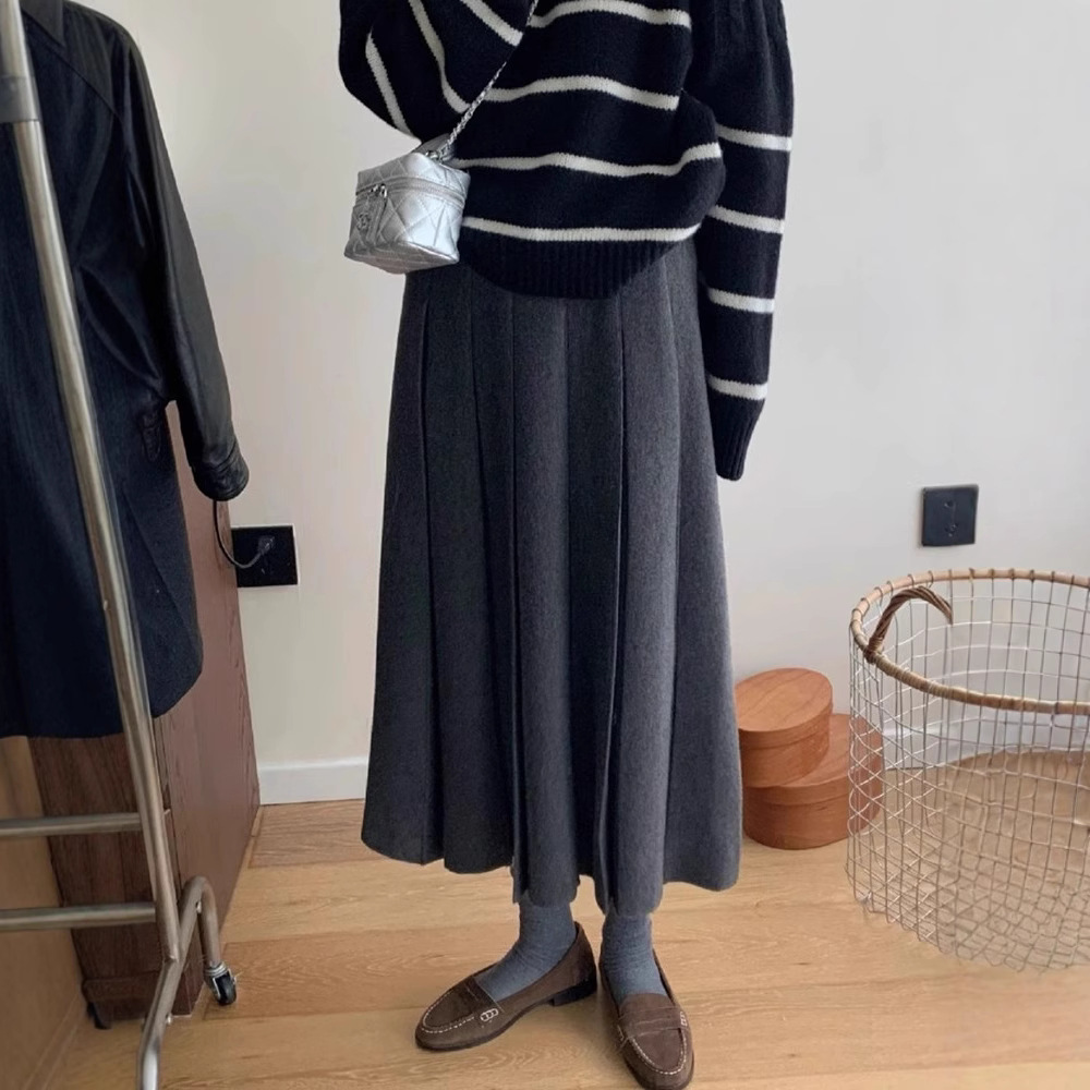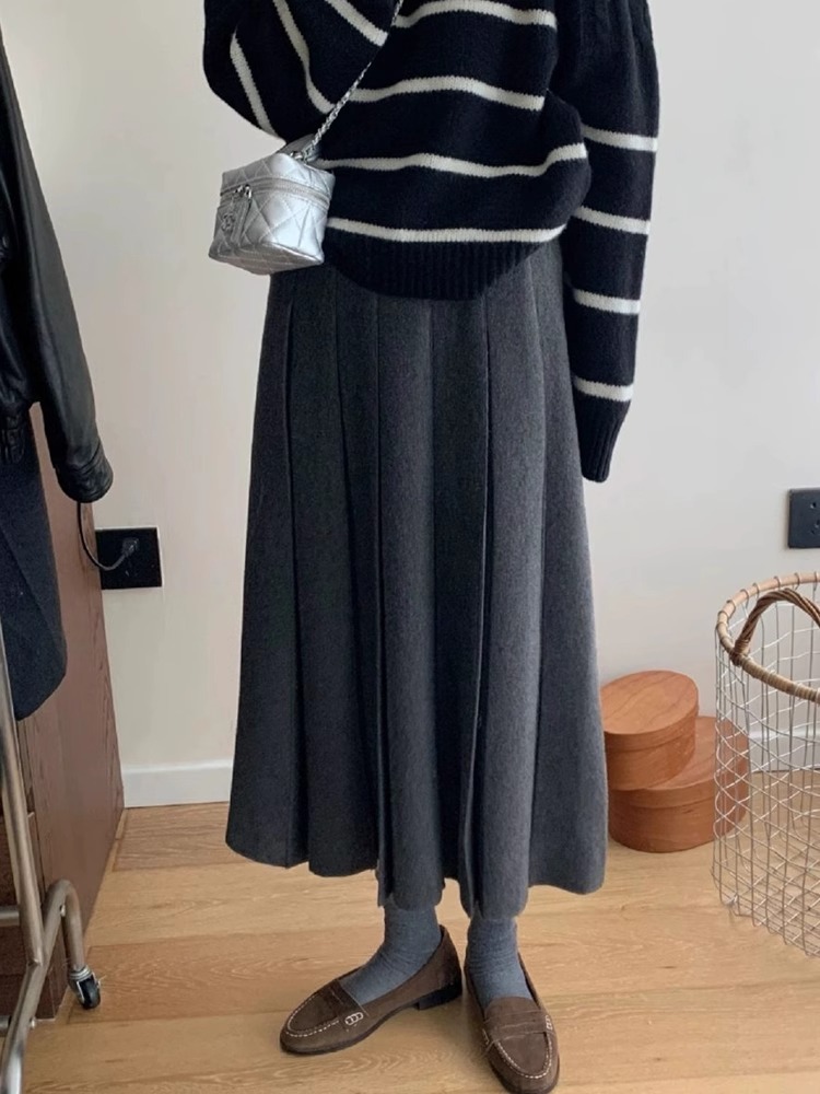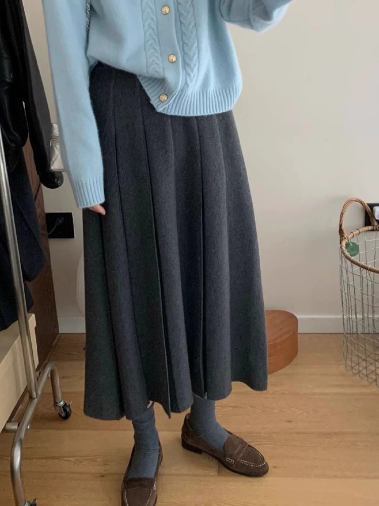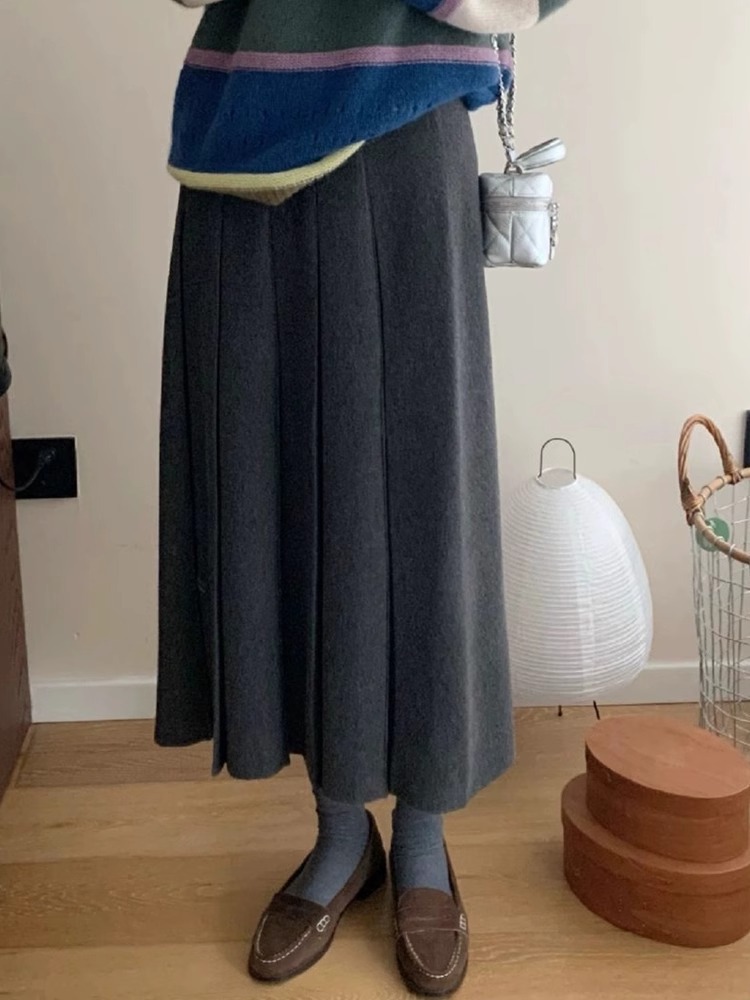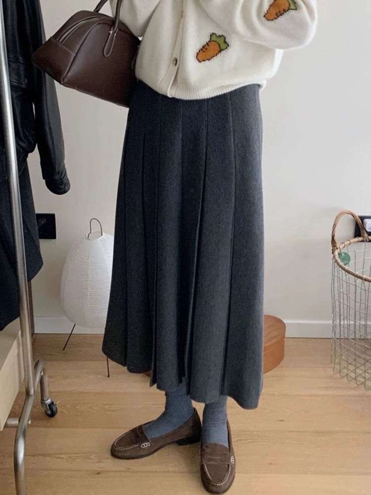 Осенняя и зимняя передняя шерстяная вязаная юбка из плиссированной ткани