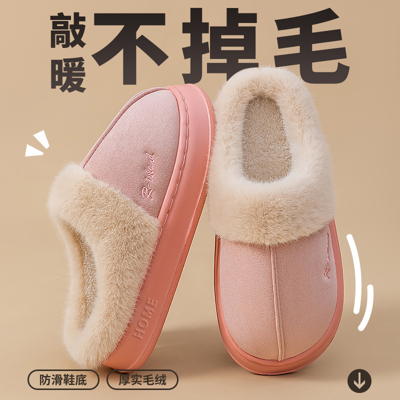 Осенние и зимние новые бархатные буквы мужские хлопчатобумажные тапочки женская домашняя обувь нескользящая и износостойкая пара теплые хлопковые тапочки оптом