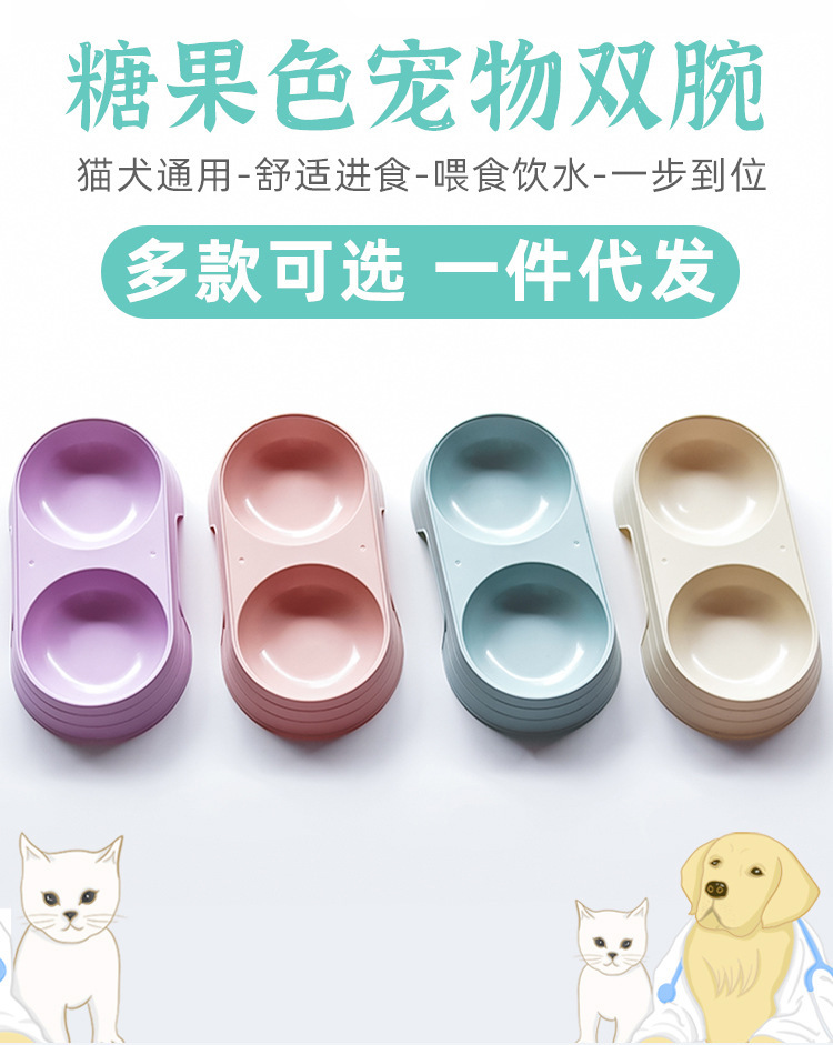 Кошачья чаша с двумя чашами Съемные конфеты цвета анти-опрокидывание
