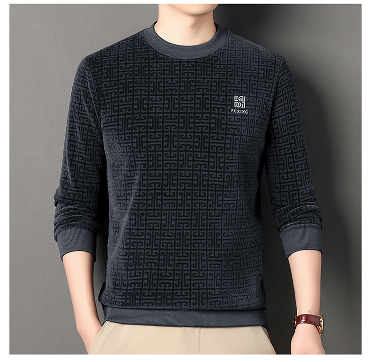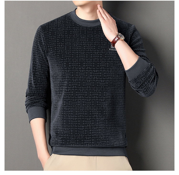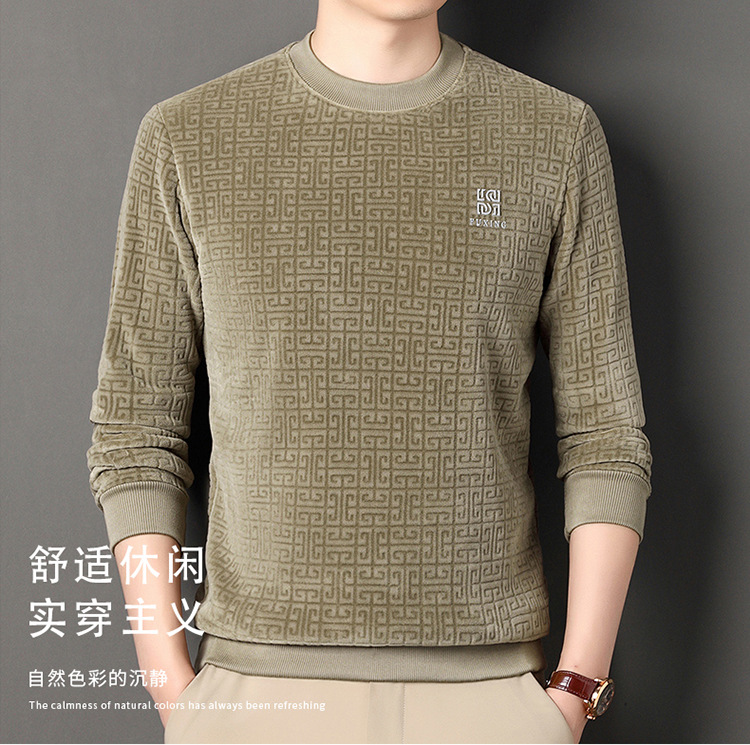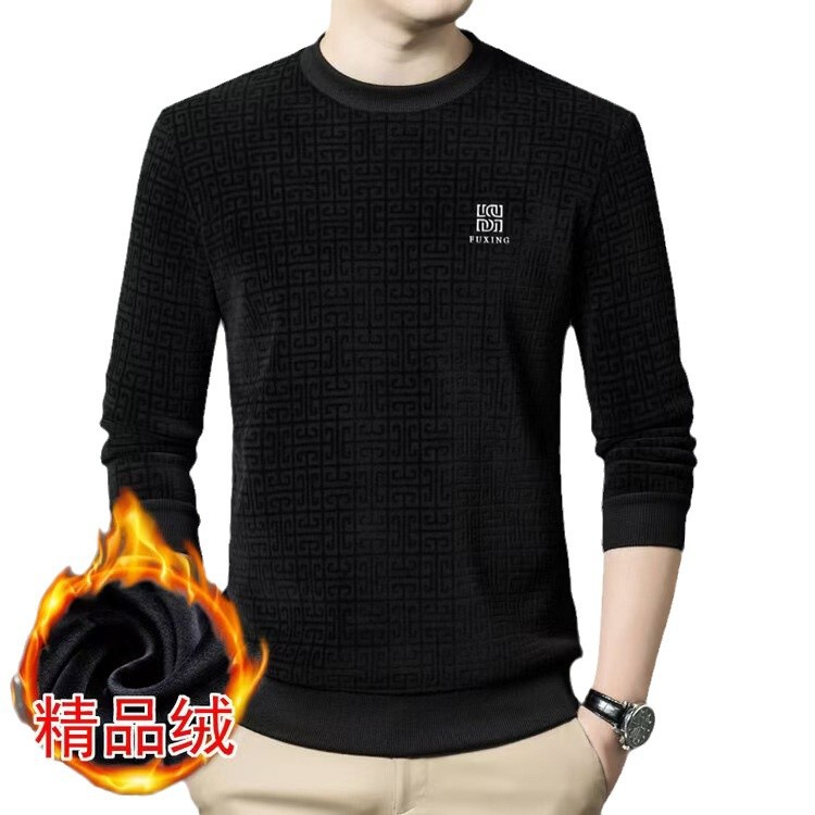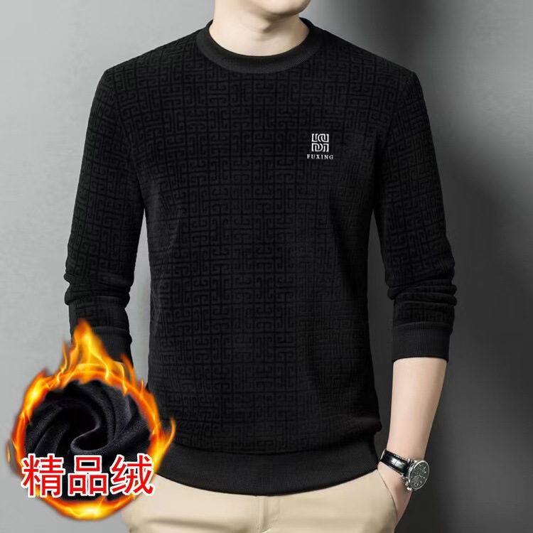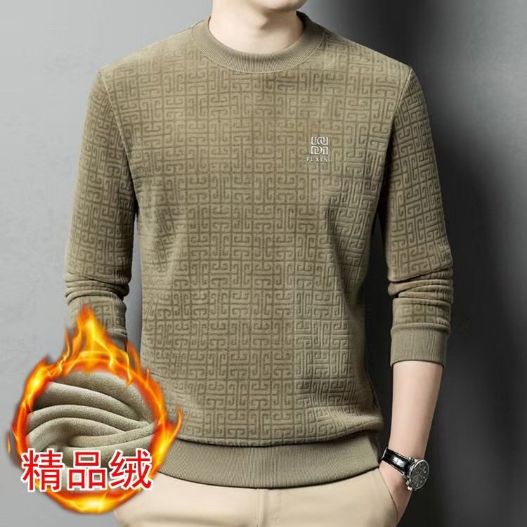 Осенний и зимний мужской бархатный повседневный вязаный свитер новый толстый пол-высокий воротник золотой бархатный свитер с длинными рукавами футболка с половиной