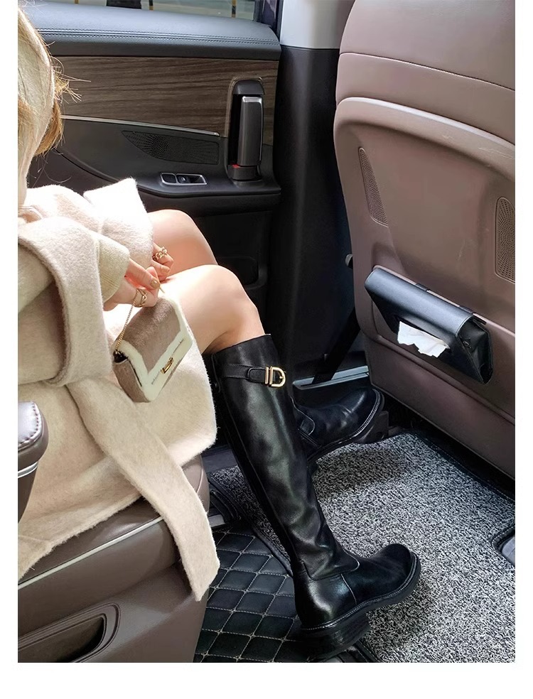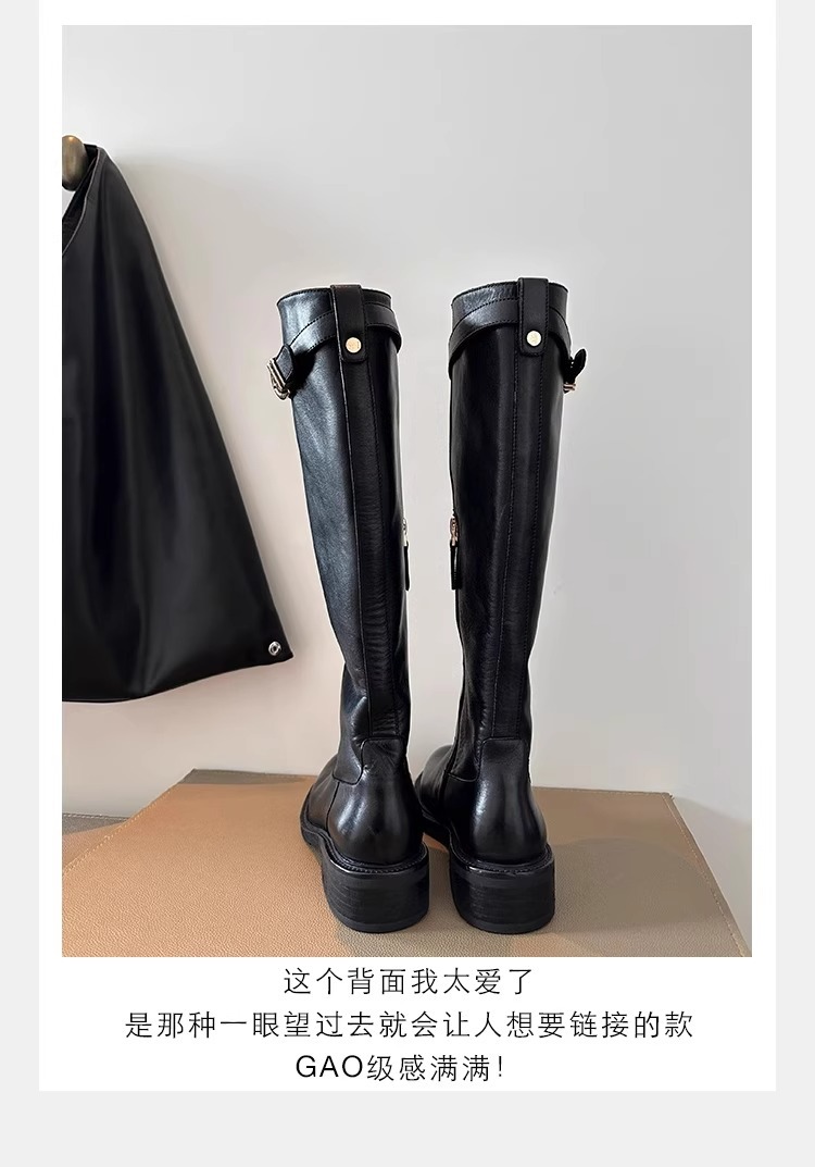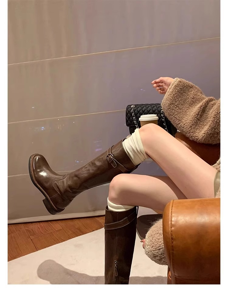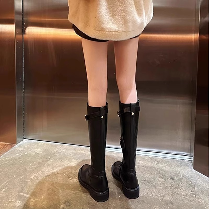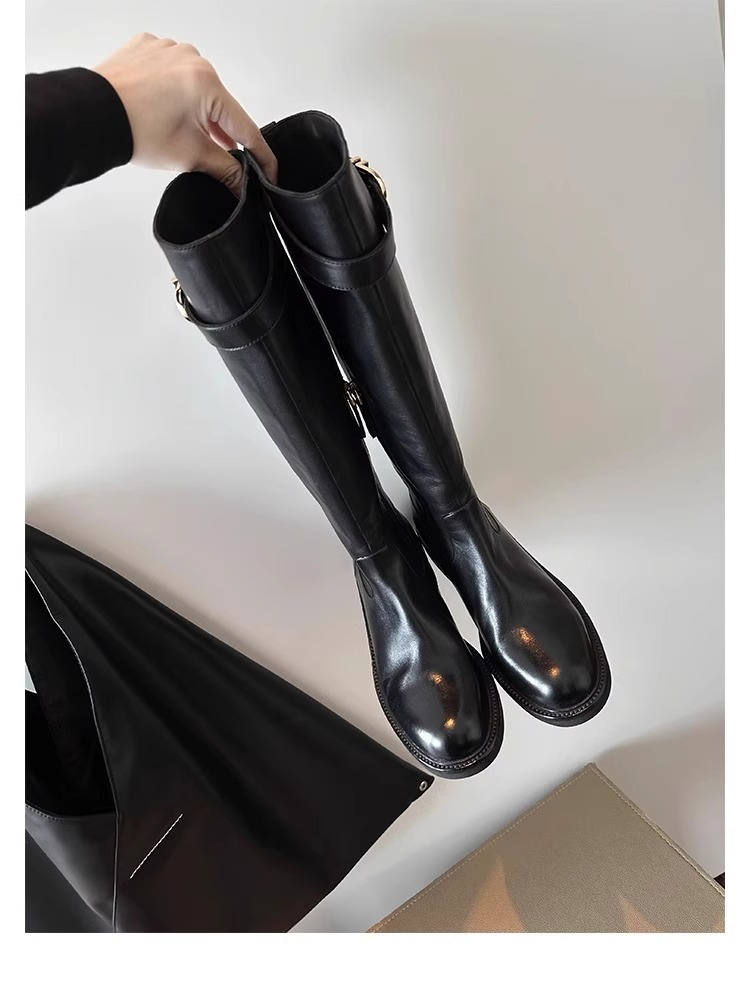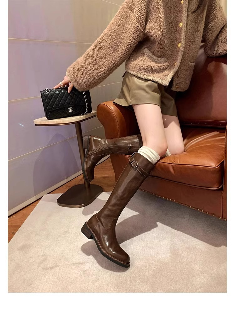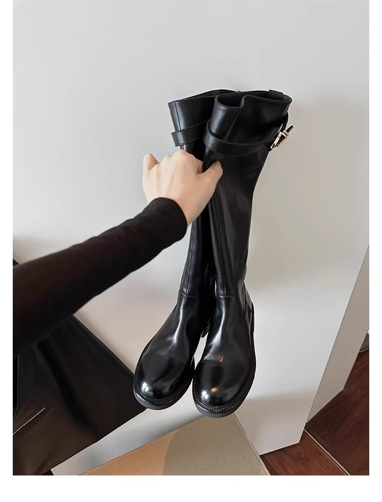 Ботинки для верховой езды в стиле Grape Mom, модель 2025 года, ретро, на толстой подошве, средней высоты, большие размеры, из мягкой кожи с плиссировкой, высокие сапоги для женщин.