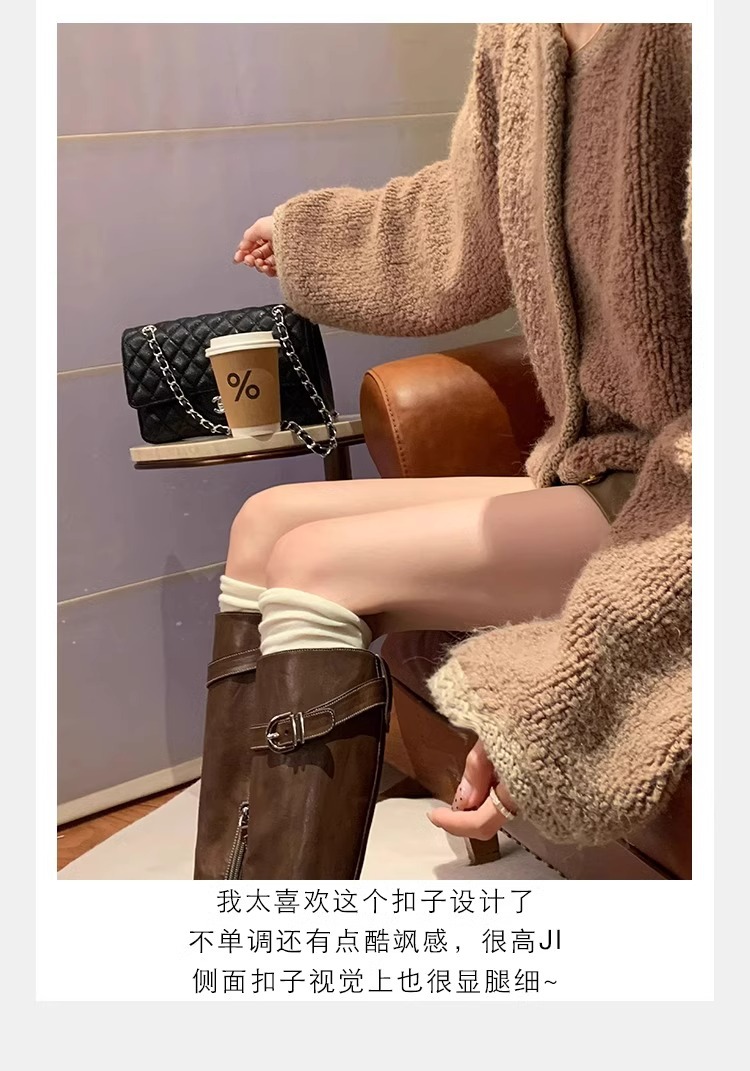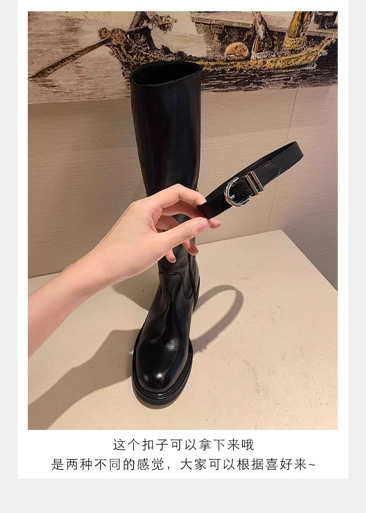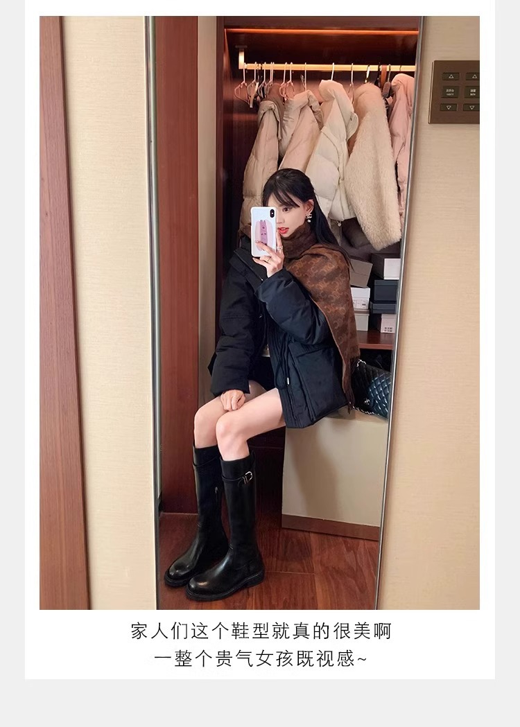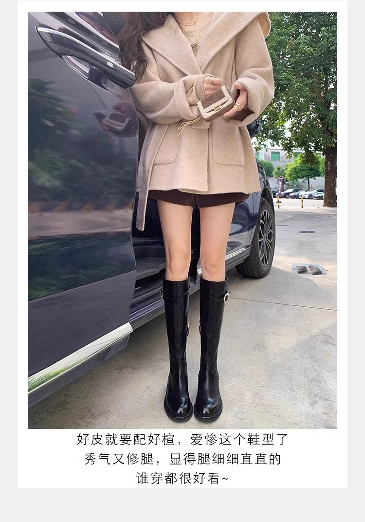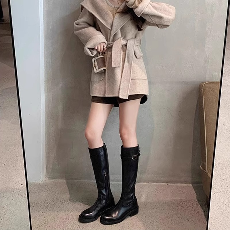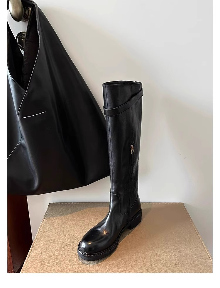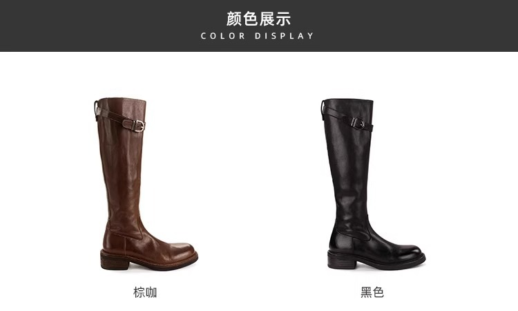 Ботинки для верховой езды в стиле Grape Mom, модель 2025 года, ретро, на толстой подошве, средней высоты, большие размеры, из мягкой кожи с плиссировкой, высокие сапоги для женщин.
