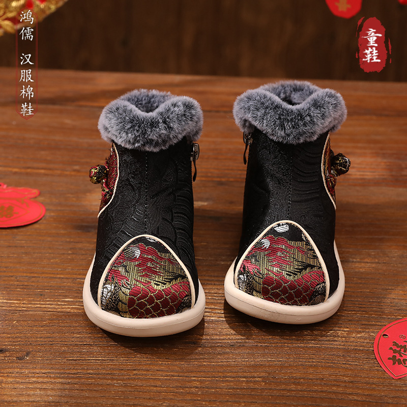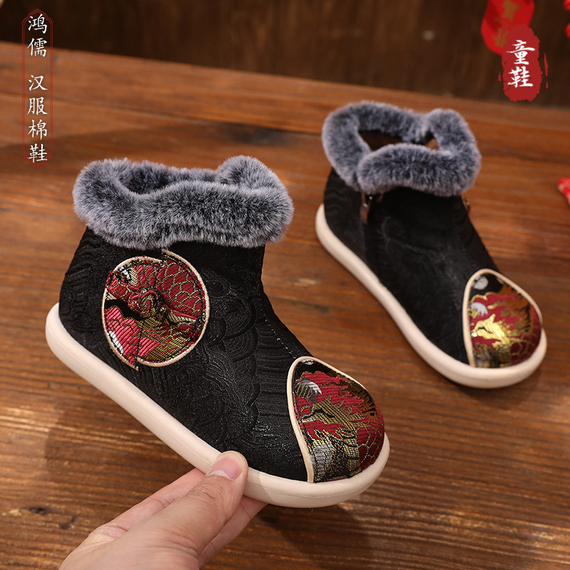 Мальчики ретро хлопчатобумажные ботинки старинные ботинки утолщенные и удобные ботинки Hanfu