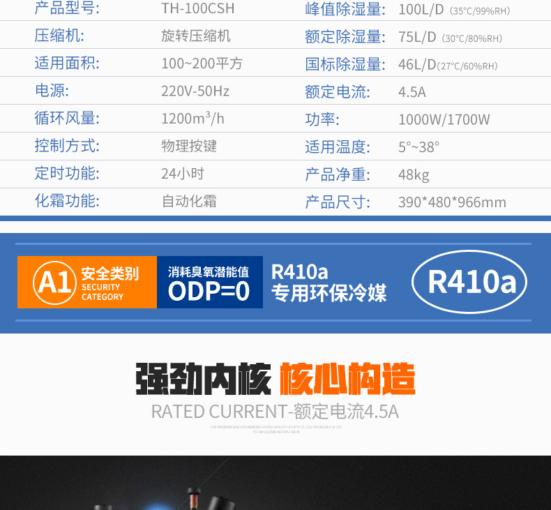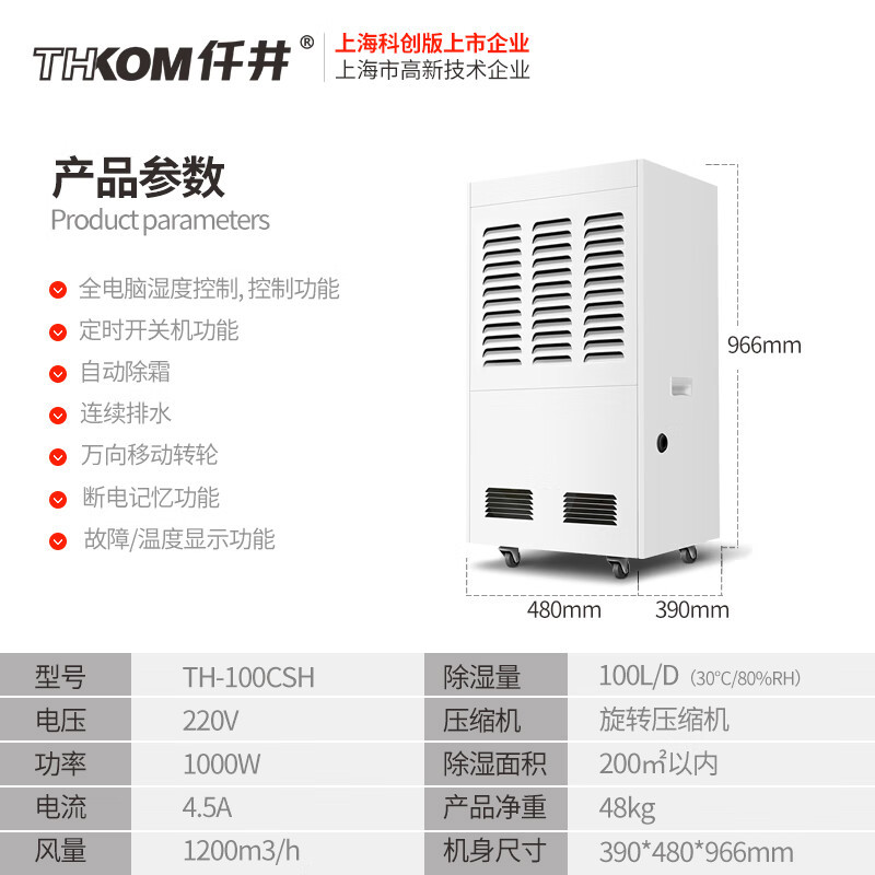 Осушитель скважины TH-100CSH промышленный склад подвал Коммерческий гигроскопатель Мощный осушитель