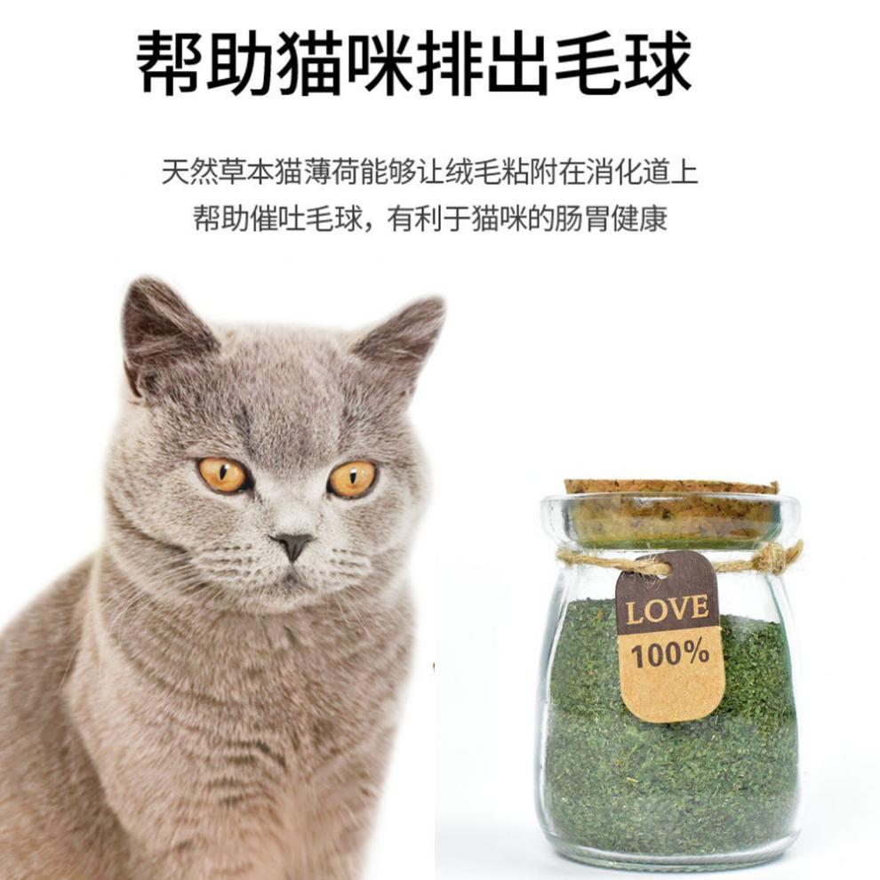 Стеклянная банка порошка кошачьей мяты способствует пищеварению, удаляет комки шерсти, очищает рот, кошачья трава, возбуждение кошки, съедобные кошачьи закуски.