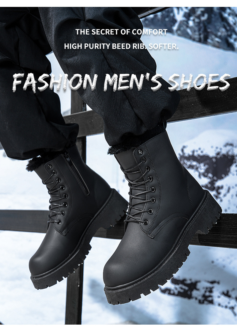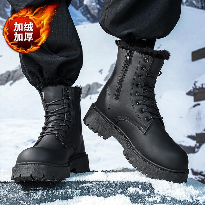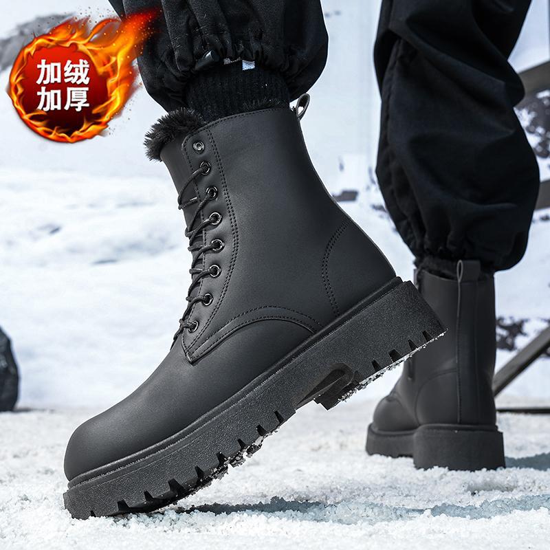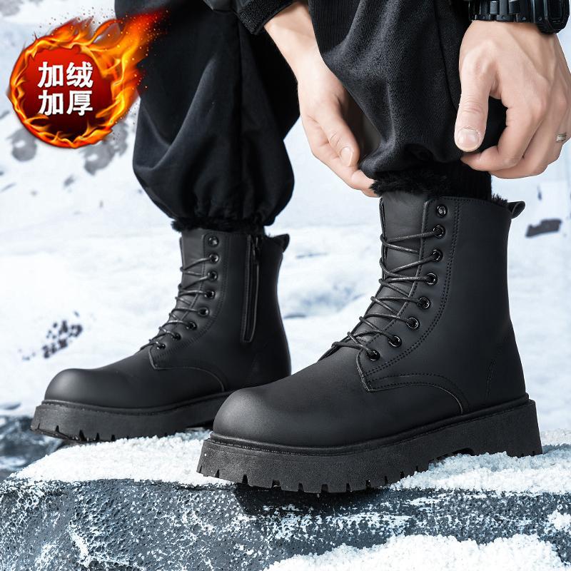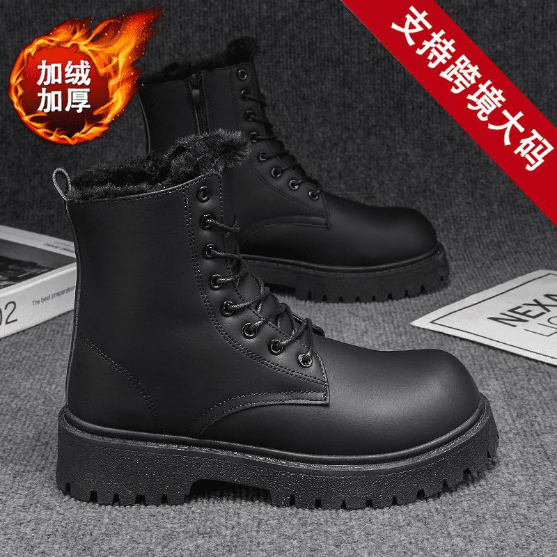 Martin сапоги мужские зимние бархатные теплые высокие кожаные туфли туфли матовые черные водонепроницаемые мотоциклетные кожаные хлопчатобумажные туфли ретро сапоги