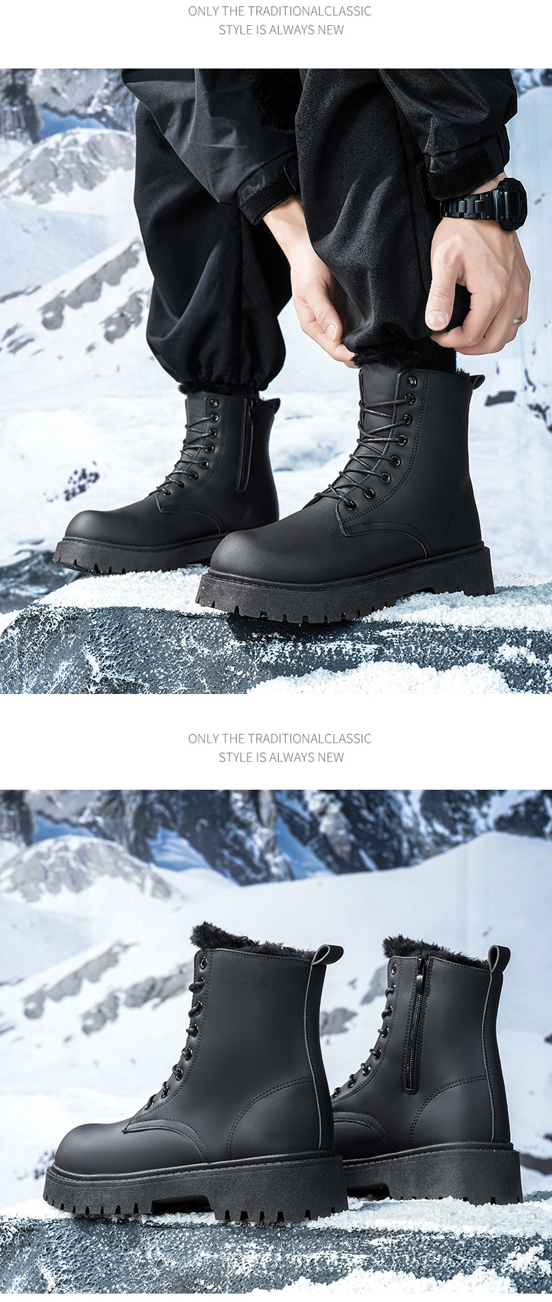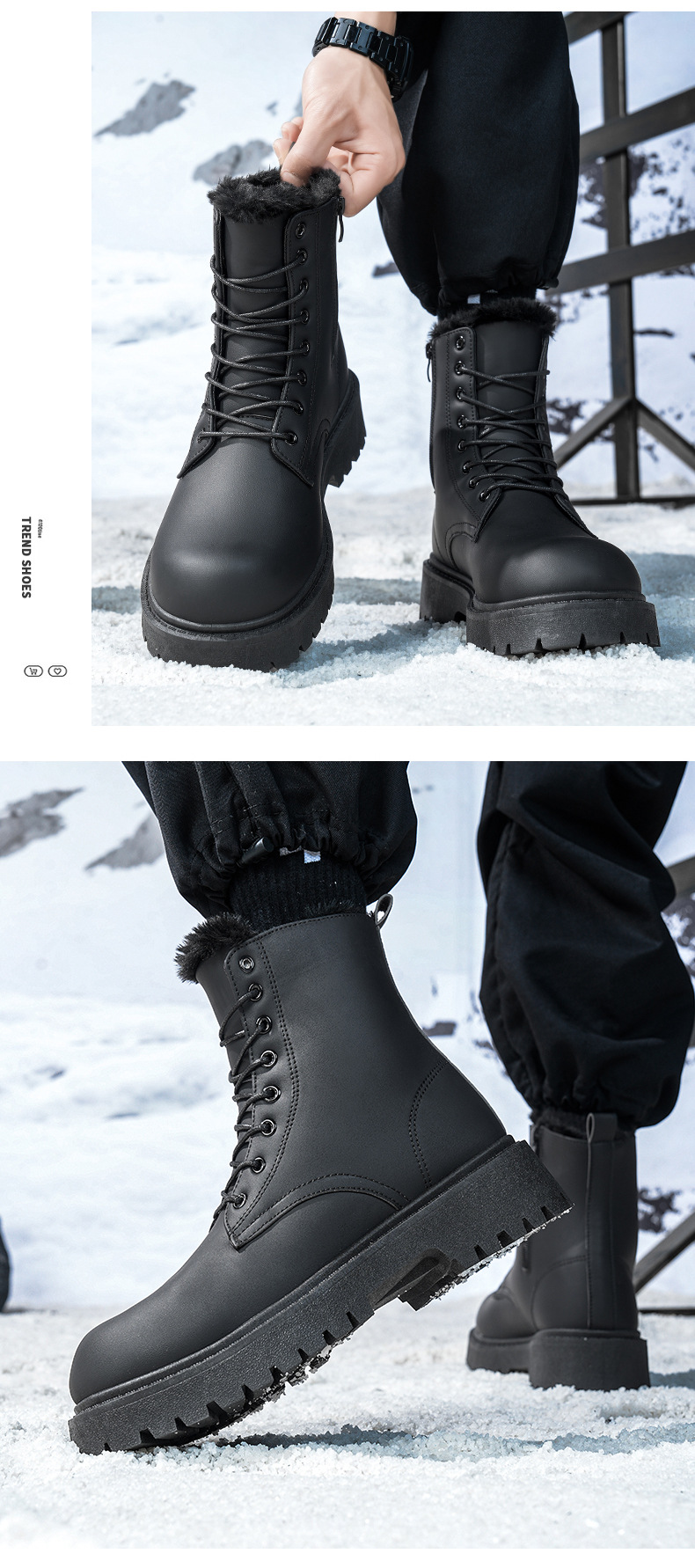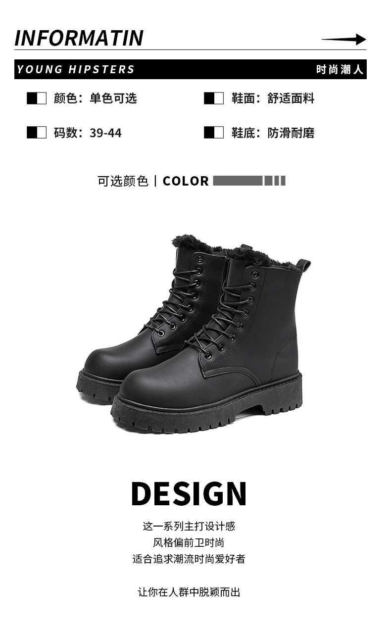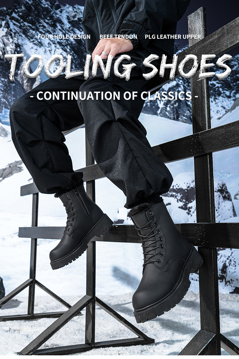 Martin сапоги мужские зимние бархатные теплые высокие кожаные туфли туфли матовые черные водонепроницаемые мотоциклетные кожаные хлопчатобумажные туфли ретро сапоги