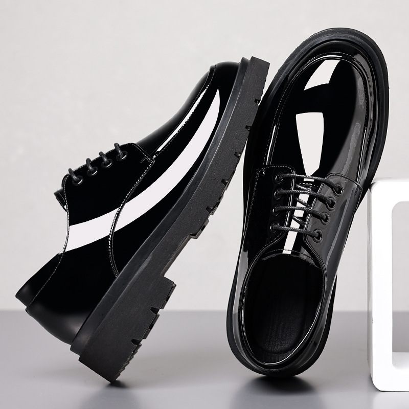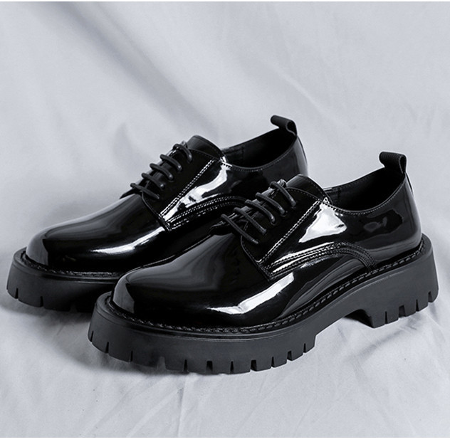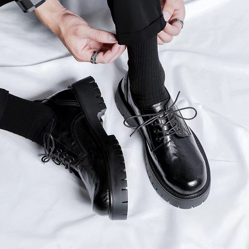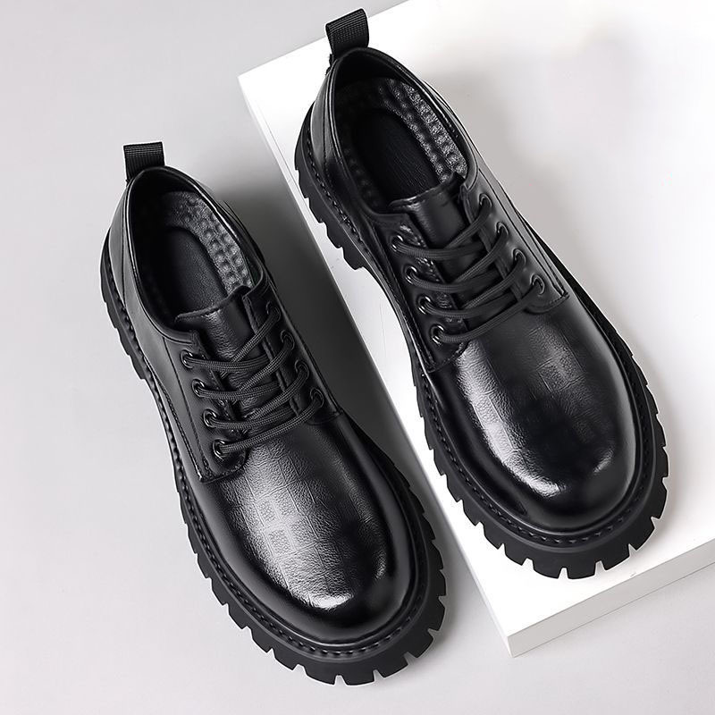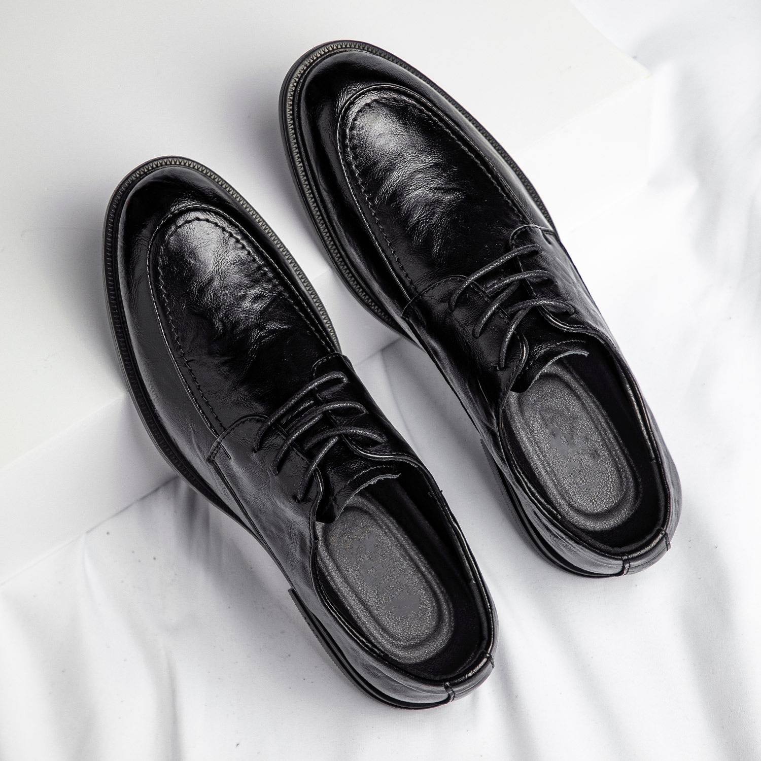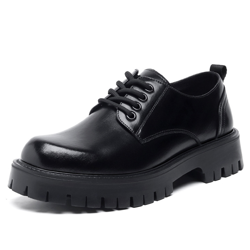 Черные кожаные мужские туфли, толстая подошва, ретро-балетки, большой круглый носок, мужская деловая официальная одежда, туфли с круглым носком, сломанный код, отсутствует