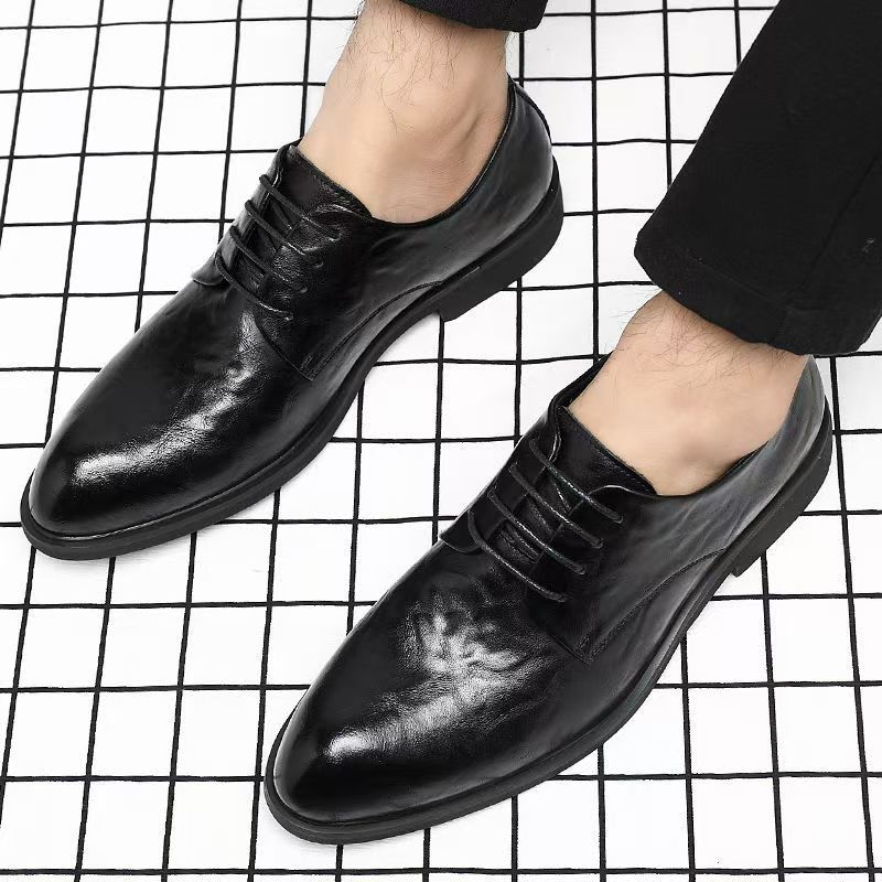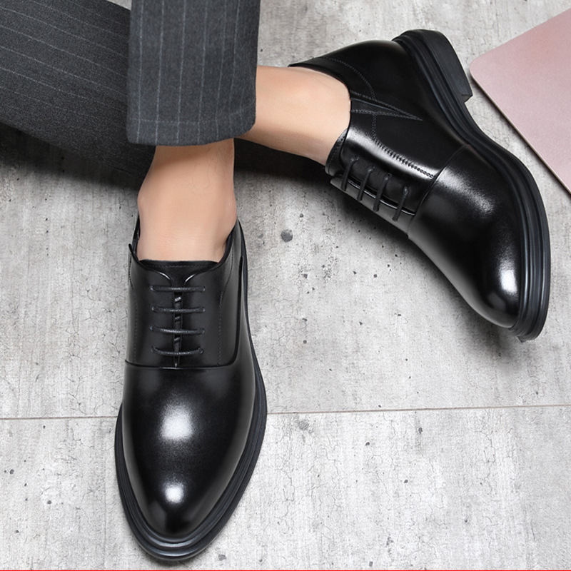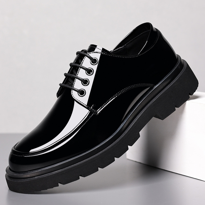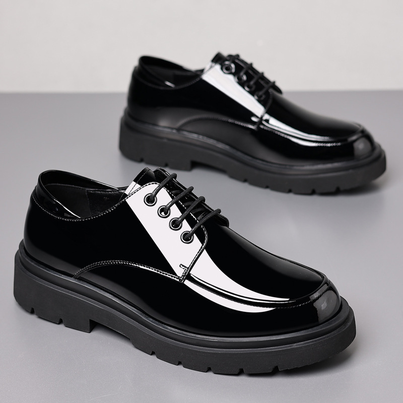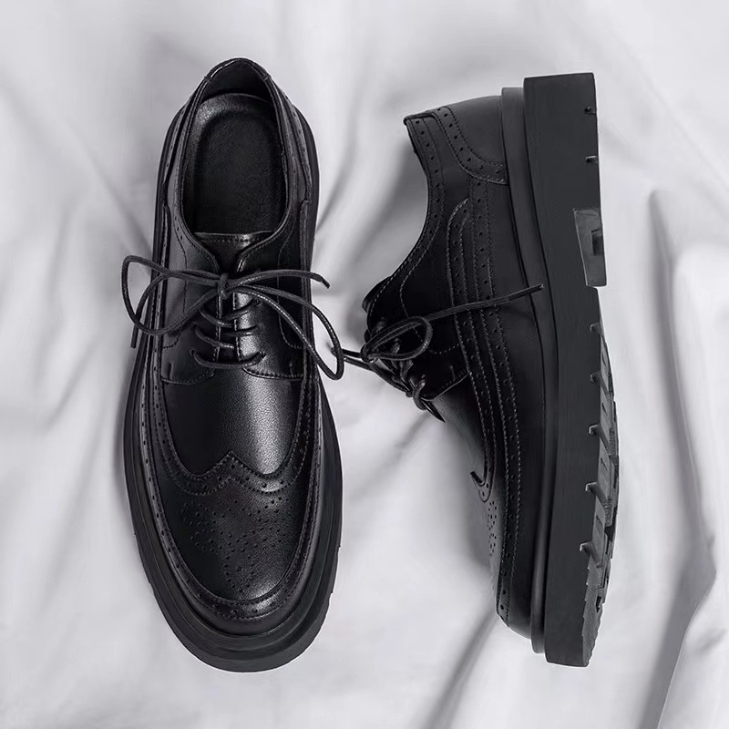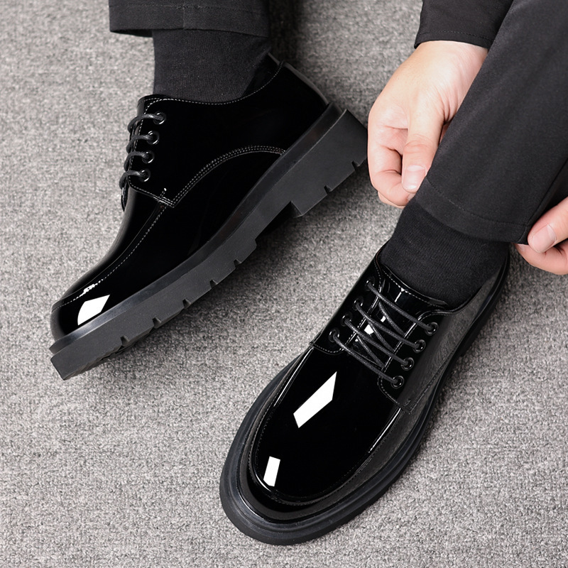 Черные кожаные мужские туфли, толстая подошва, ретро-балетки, большой круглый носок, мужская деловая официальная одежда, туфли с круглым носком, сломанный код, отсутствует