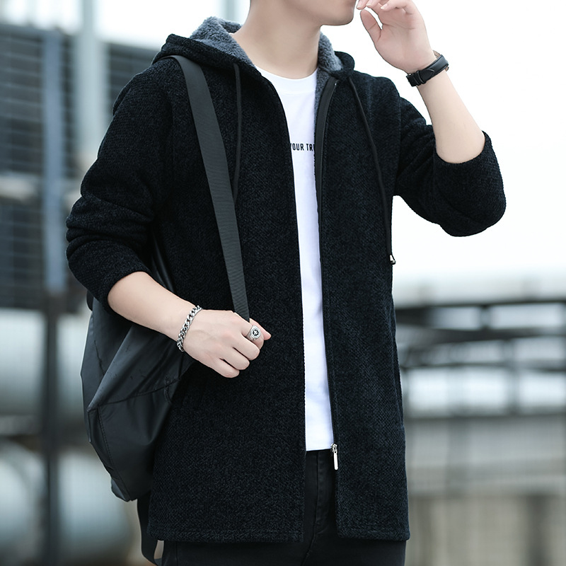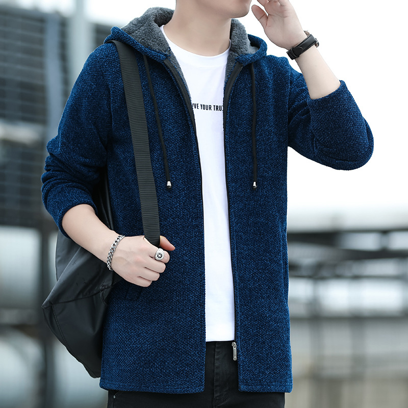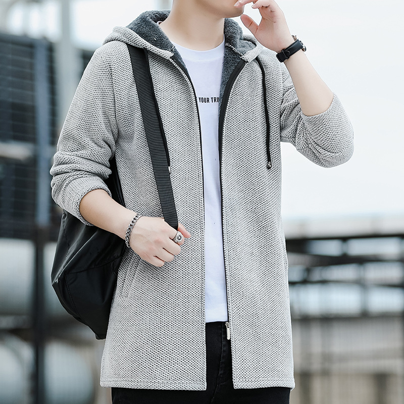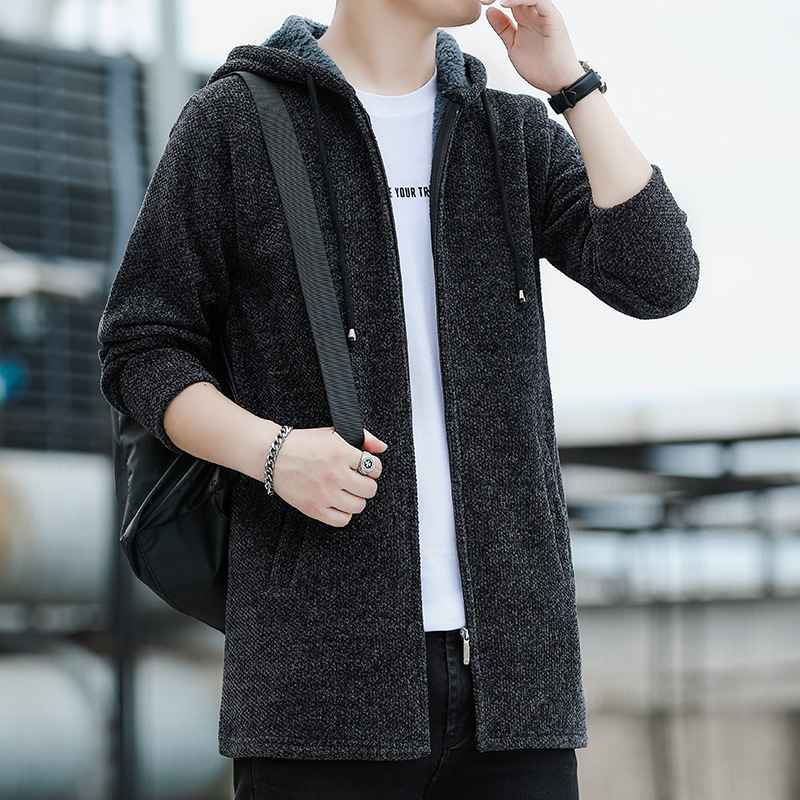 Внешняя торговля Осень и Зима свитер с капюшоном Мужская средняя длинная свободная свитер большого размера свитер куртка вязаный кардиган топ