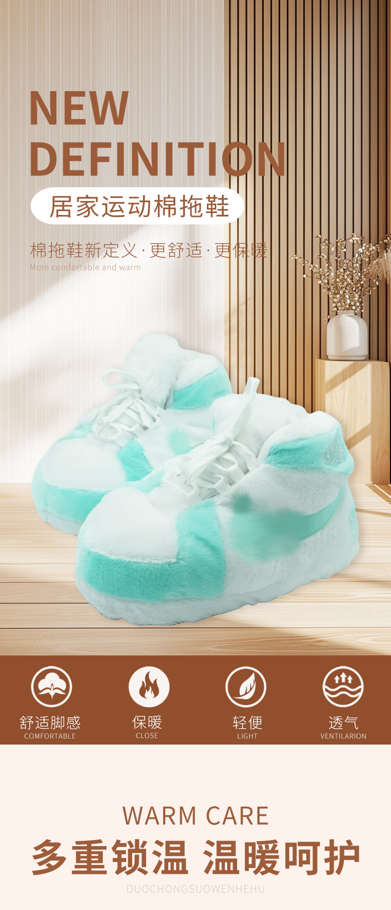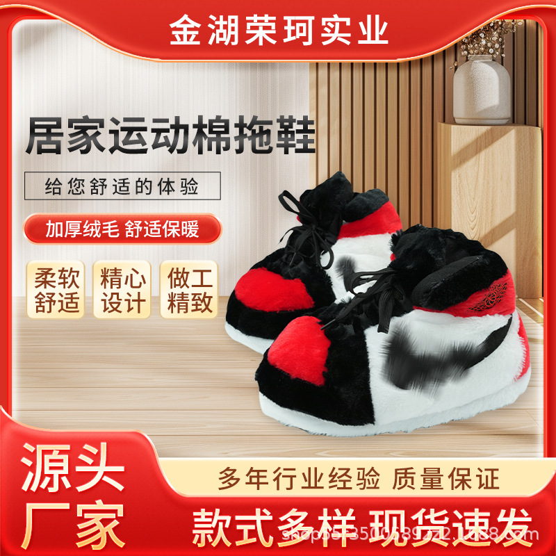 Забавные хлопковые тапочки AJ1, необычные тапочки из кокосового хлопка, массивные тапочки в форме хлеба, водонепроницаемые и теплые, для дома, зимние, в едином стиле для пар.