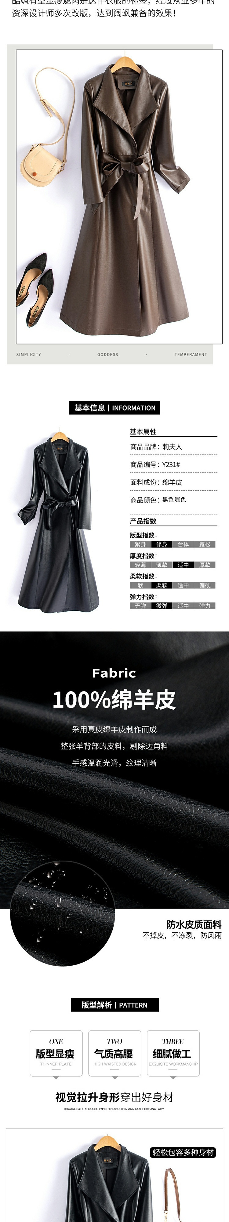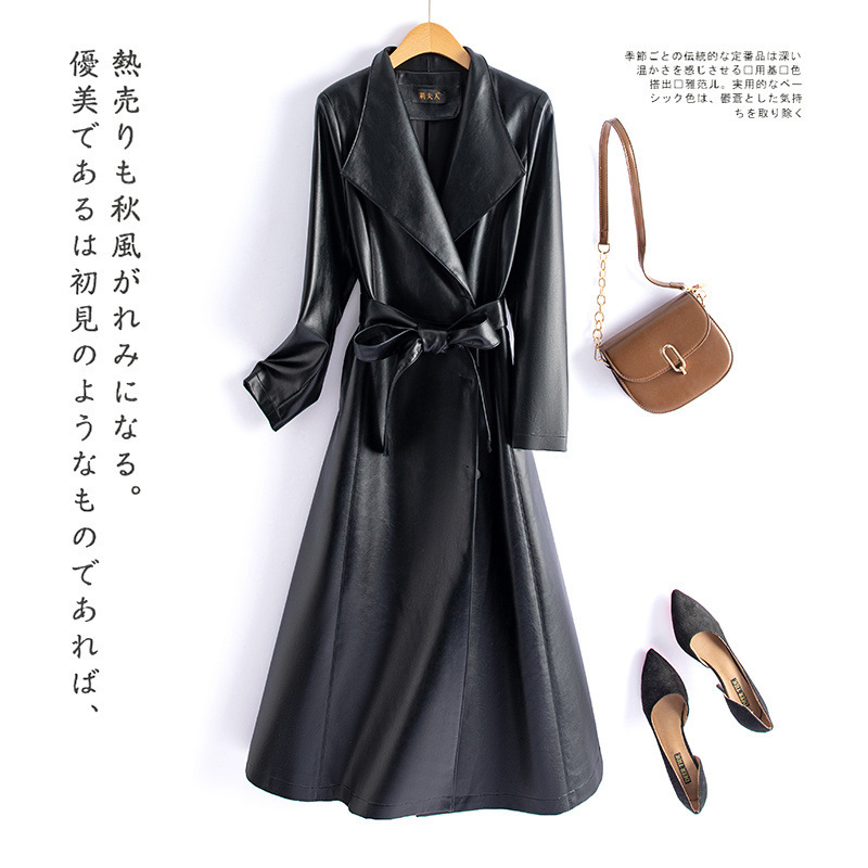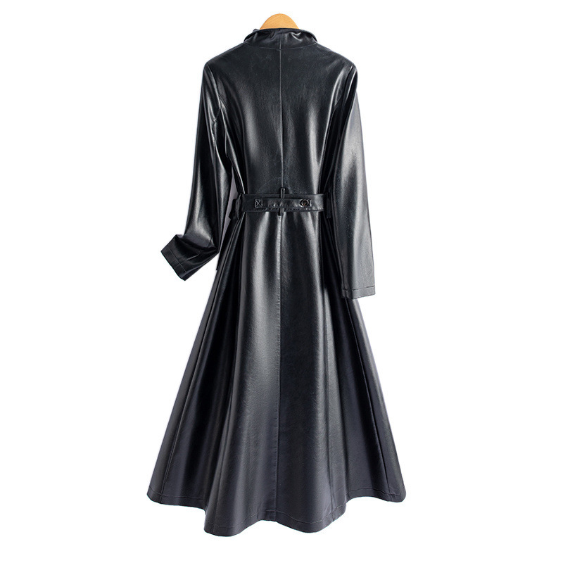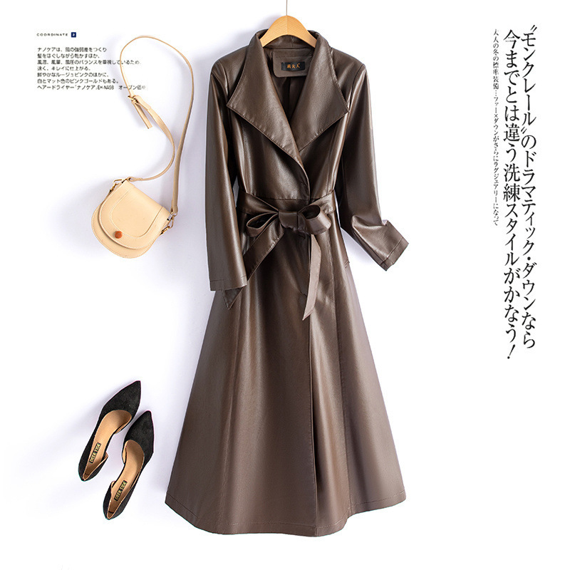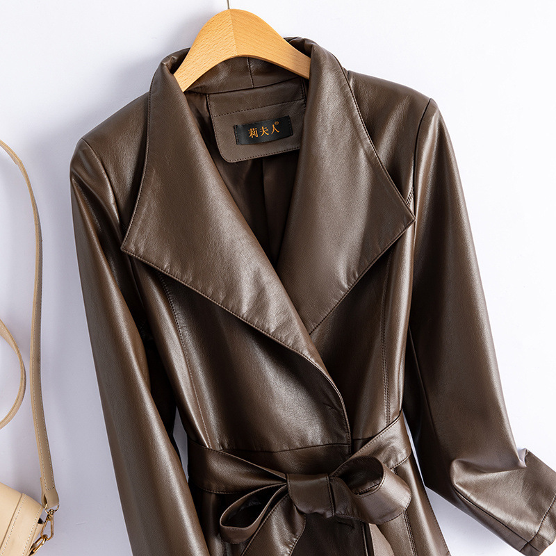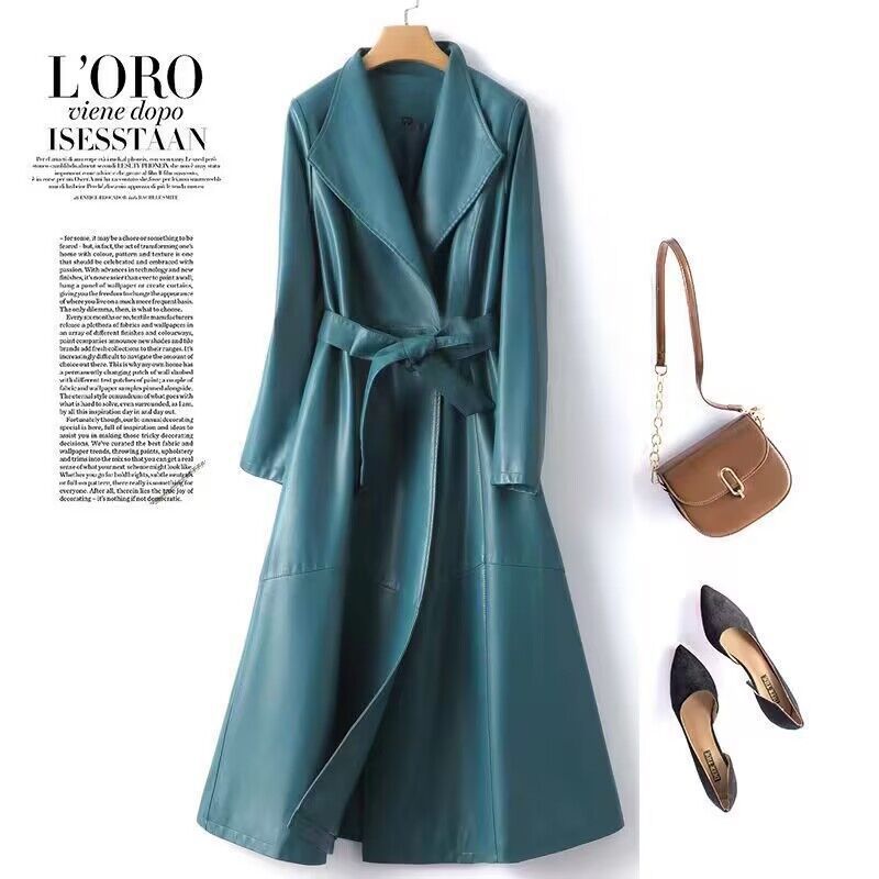 Haining кожаная кожаная женская длинная кожаная ветровка пальто весной и осенью овчинное пальто тонкая талия плюс размер лацкана