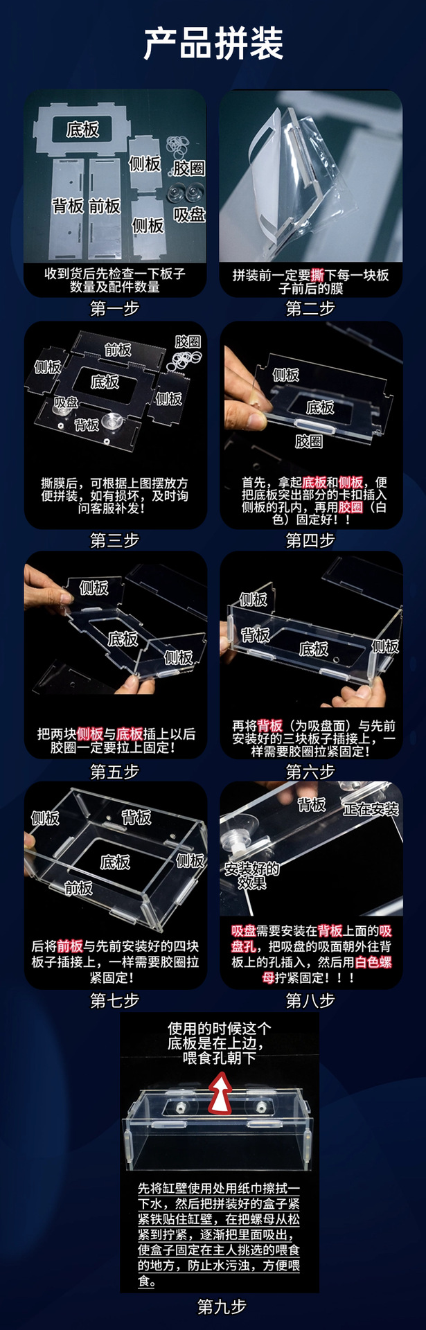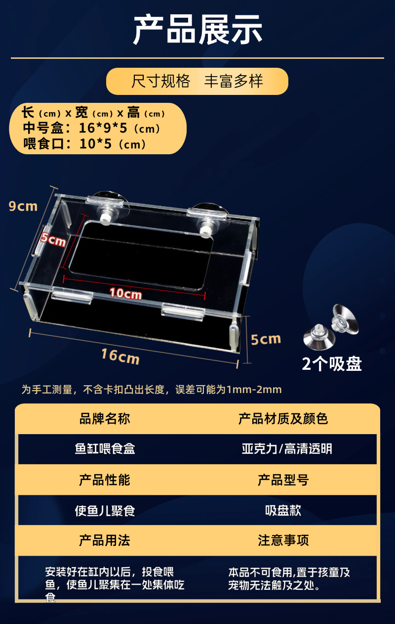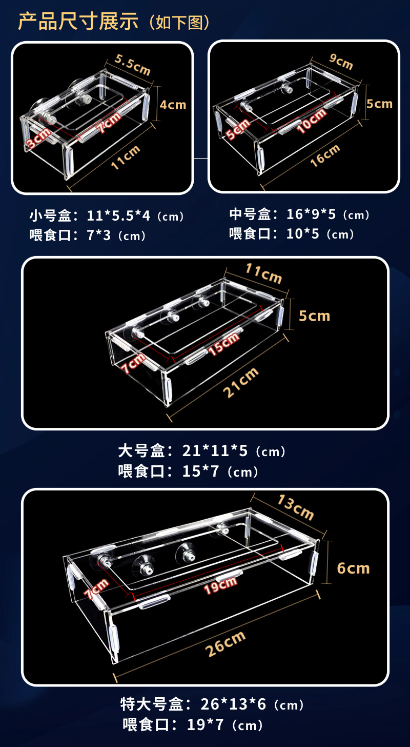Маленький ящик для кормления 11*5,5*4; Средний ящик для кормления 16*9*5; Большой ящик для кормления 21*11*5; Очень большой размер 26*13*6; Присоска*2