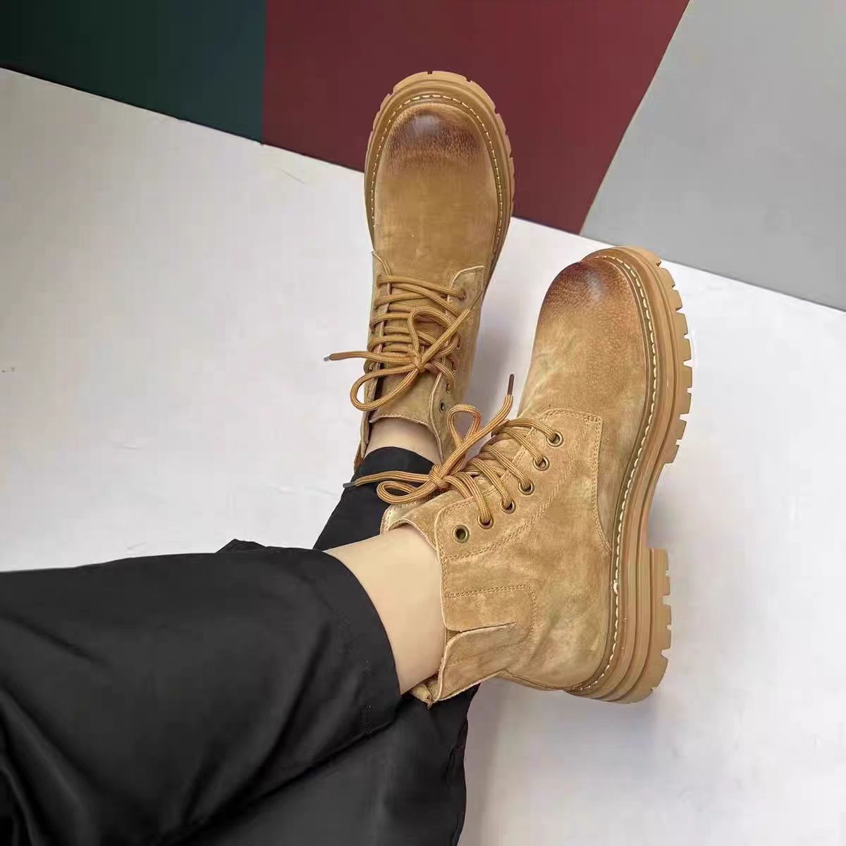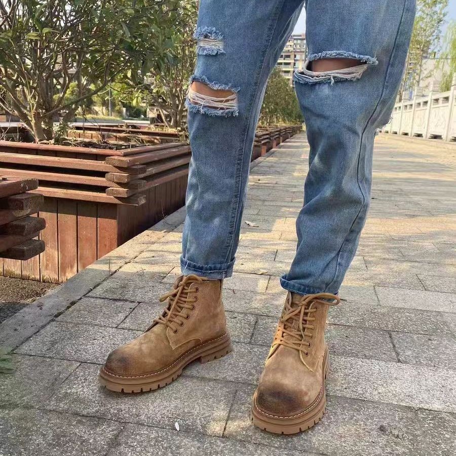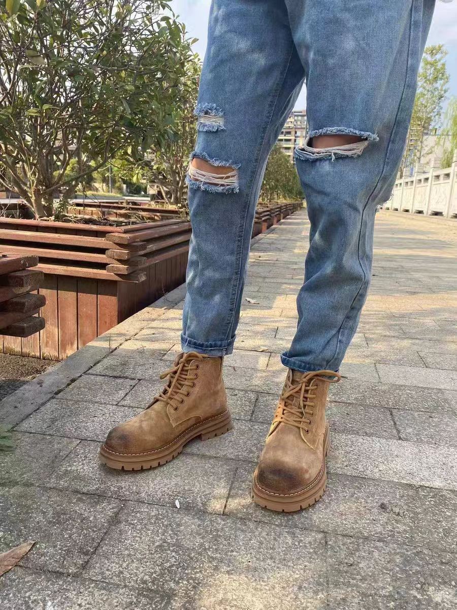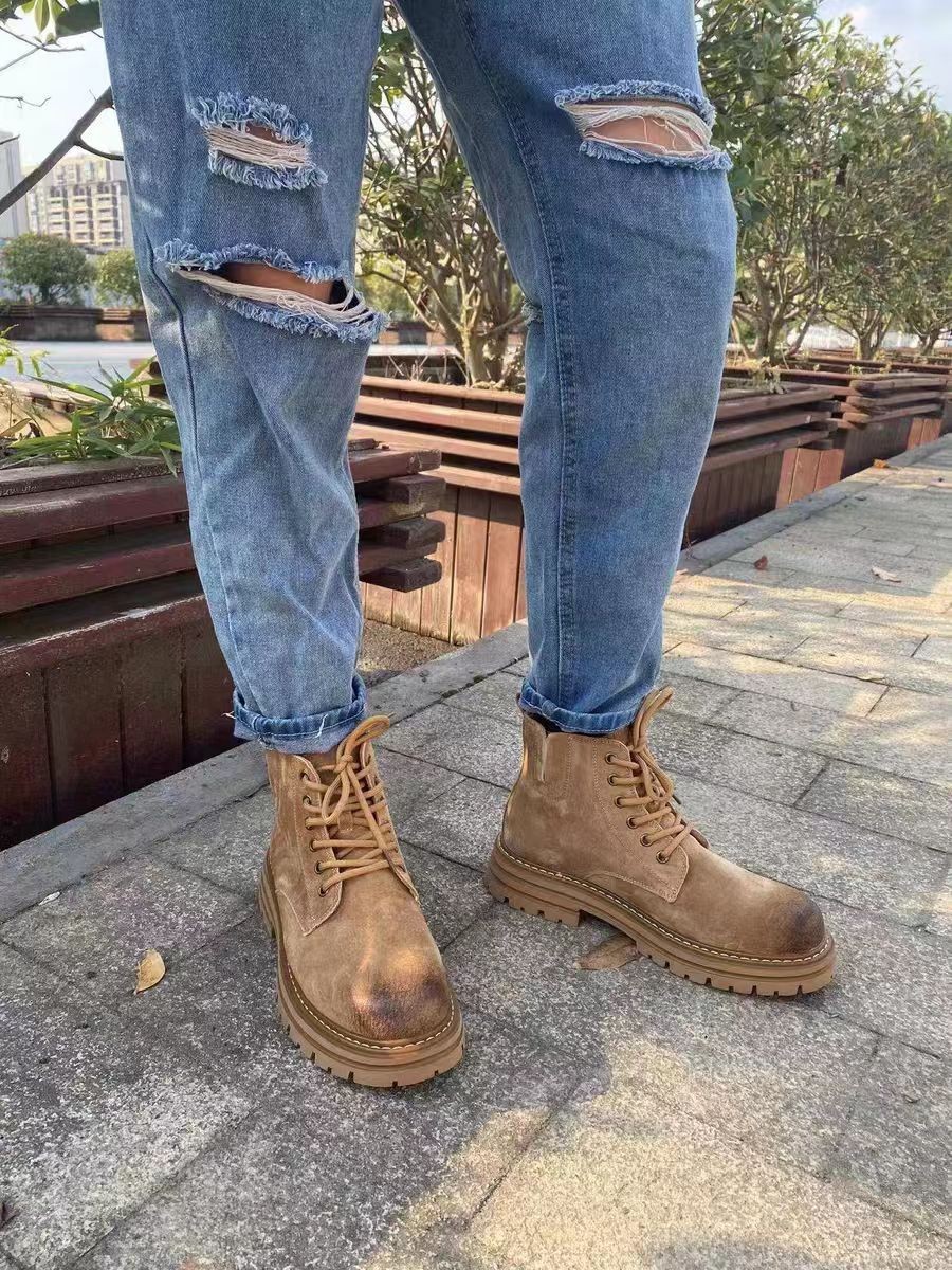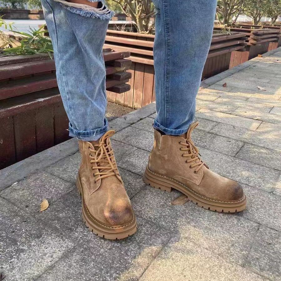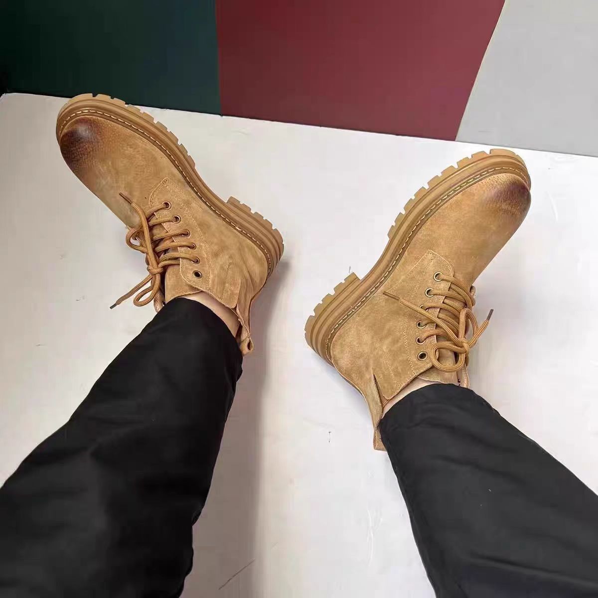 Увеличение плюшевого плюшевого мартина высокого цвета Британские ретро большие желтые короткие сапоги зимние кожаные повседневные сапоги мужчины новые