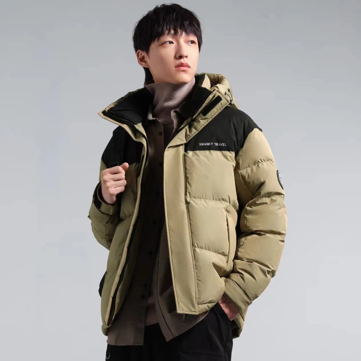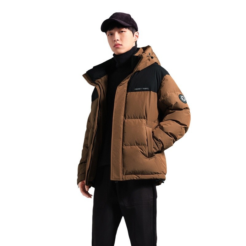 Мужской контратаный цвет анти-бриллиантовый бархатный пуховик с капюшоном зимний новый свободный профиль теплая утка куртка мужской